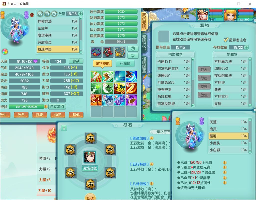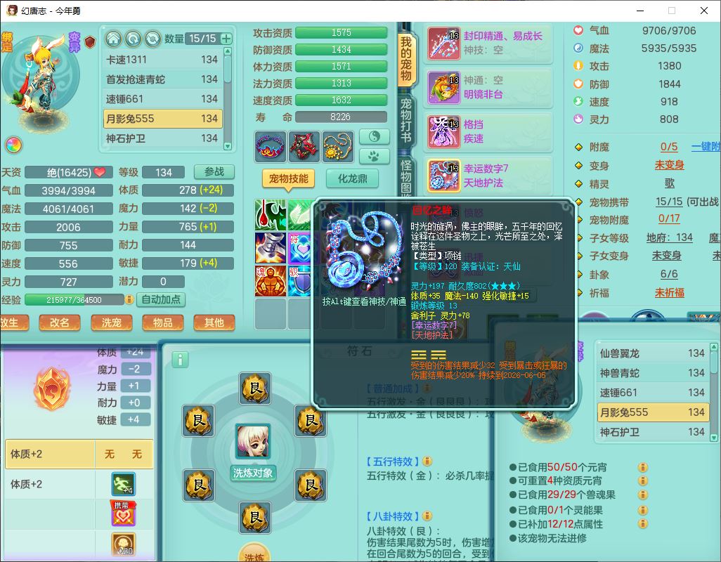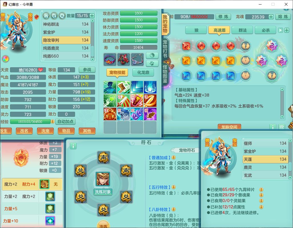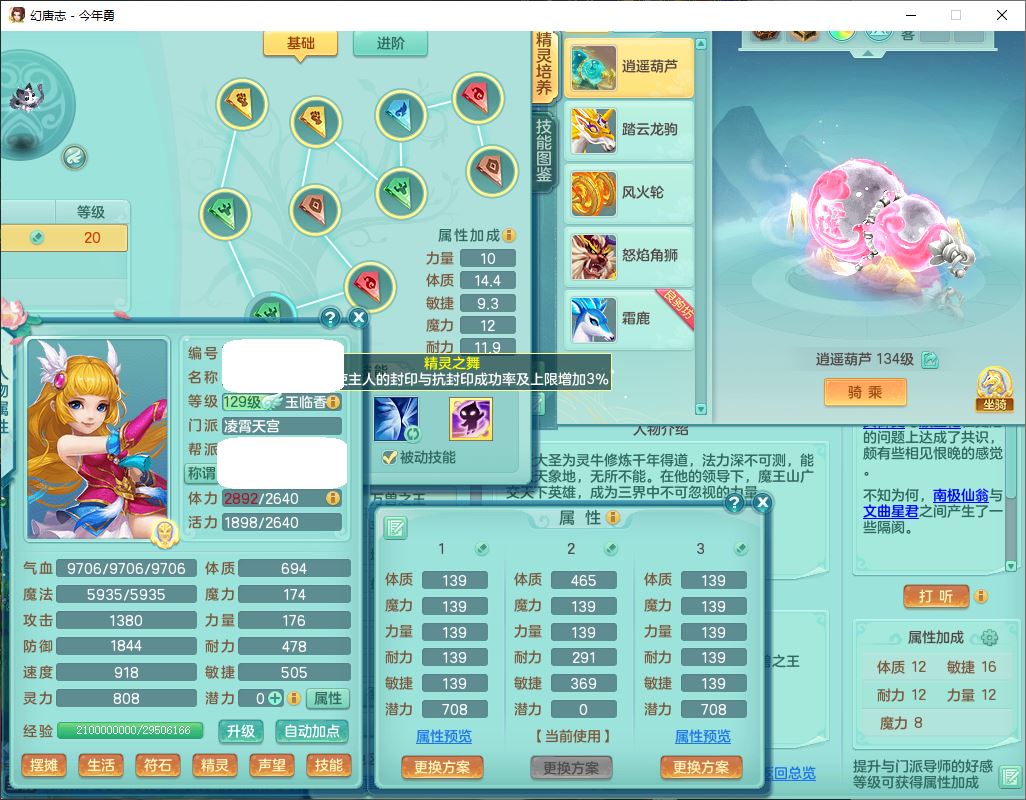 71483YB今年勇129女天宫【潜龙过半】精灵舞,2龙(1换、无内)1内丹青蛇1神石1金炉1羽袭1九幽,11觉醒13六字3五字8四字23只满果子,11红星辰之拥装备,封印精通Y帽子,格挡疾速衣服,幸运罗汉项链,愤怒水清腰带,迅捷激励鞋子,仓库多装备,可搭辅助星辰之拥,回春Y武器,鼎4.0+56+224,庭院177房屋169,永久外观、精灵皮肤,41个内丹碎片,近700W神武币,2双人坐骑(1飞行);带155奶粉,300多w神武币;带成品159男地府,装备宝宝齐全,4特殊(夺命,兽决禁锢、怒破、双星),46个内丹碎片