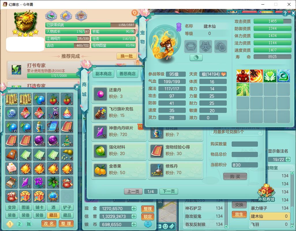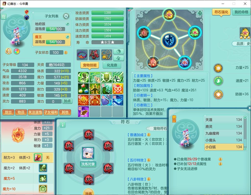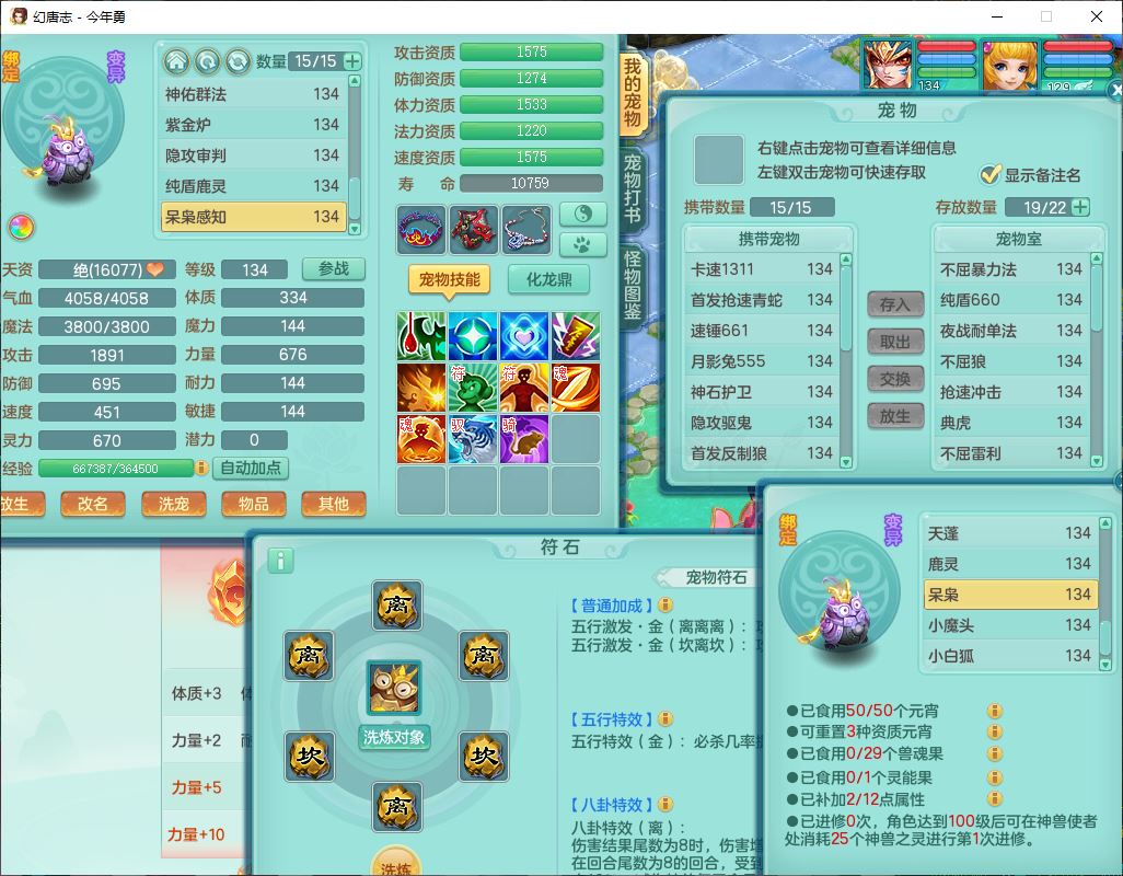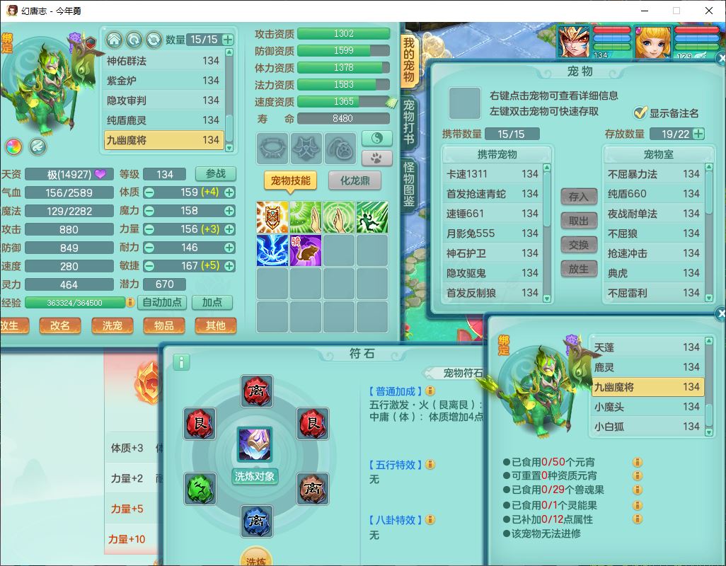 71483YB今年勇129女天宫【潜龙过半】精灵舞,2龙(1换、无内)1内丹青蛇1神石1金炉1羽袭1九幽,11觉醒13六字3五字8四字23只满果子,11红星辰之拥装备,封印精通Y帽子,格挡疾速衣服,幸运罗汉项链,愤怒水清腰带,迅捷激励鞋子,仓库多装备,可搭辅助星辰之拥,回春Y武器,鼎4.0+56+224,庭院177房屋169,永久外观、精灵皮肤,41个内丹碎片,近700W神武币,2双人坐骑(1飞行);带155奶粉,300多w神武币;带成品159男地府,装备宝宝齐全,4特殊(夺命,兽决禁锢、怒破、双星),46个内丹碎片