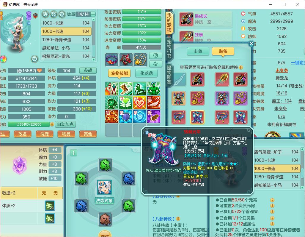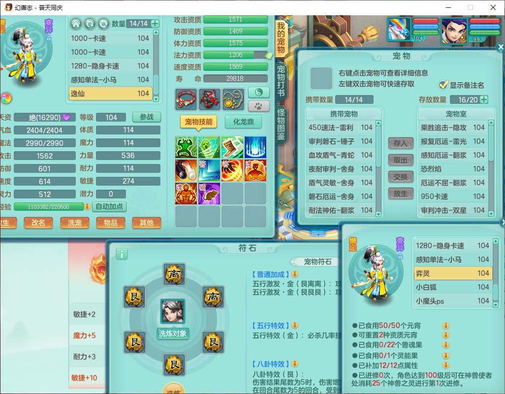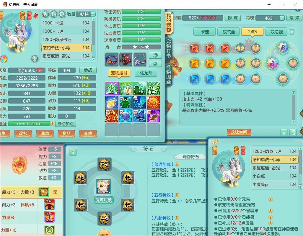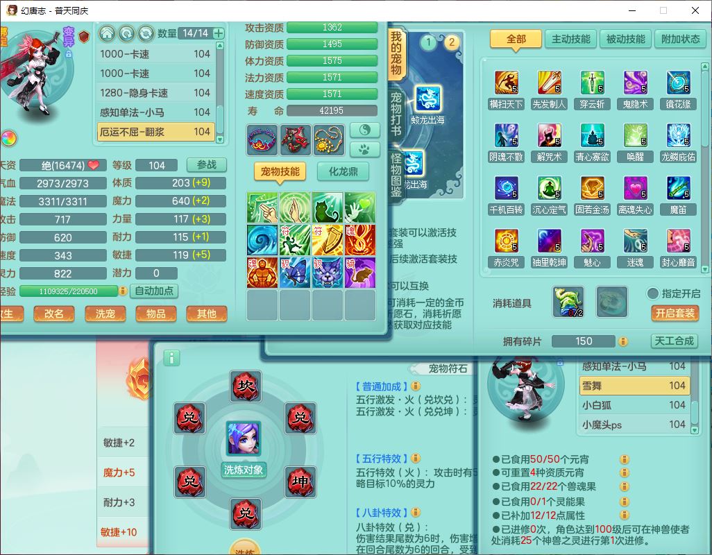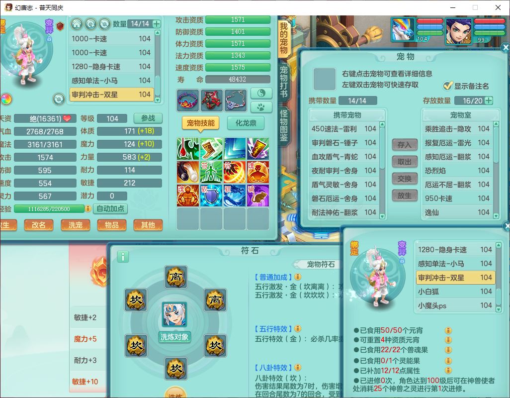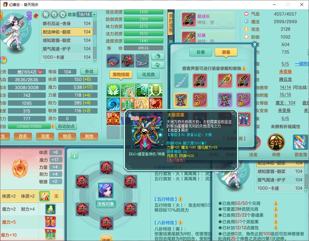 62441普天同庆99男天宫【潜龙号】力敏、全魔双精灵,1龙(换,破境)3内(1青蛇1龙马,1破境)4翻江3舍身1金炉1童子,8觉醒6宠皮7六字11四字19只满果子,8红装备,狂暴武器,崩山衣服,神佑乱刃项链,Y四海鞋子,Y笑里腰带,Y卸甲帽子,鼎2.5+42+168,3套符石,77天月卡,庭院157房屋153,永久外观、精灵皮肤,46个内丹碎片,2坐骑