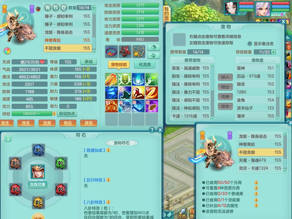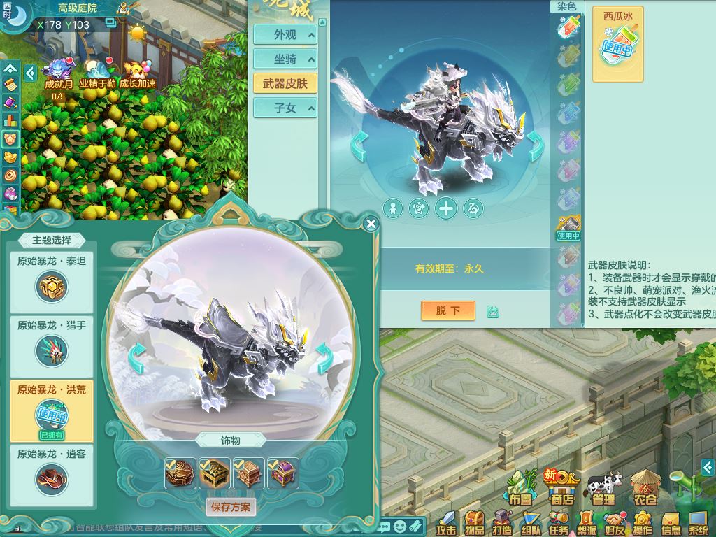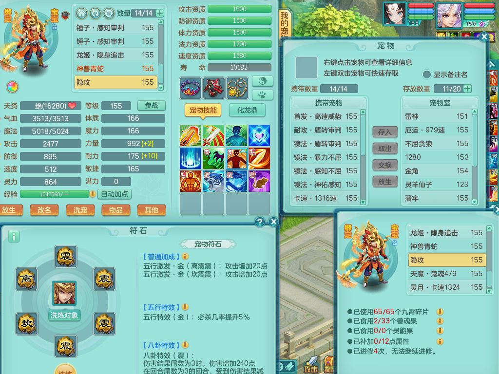 24-10443,2024区159男万兽【暴龙洪荒+西瓜冰】精灵舞,8字靓号,1内丹龙1青蛇无内1皮,4镜花1龙姬,7只满果子5觉醒3个5字(1洗练珠)1个6字,8红,932单加Y四海武器,Y头,崩山衣服,神佑流云项链,愤怒驭兽腰带,仓库封印头,格挡衣服,单加法缭鞋,鼎5.0,23天月卡,房屋151,永久外观精灵皮肤,1877金币,22仙兽灵44内丹碎片,两只双人坐骑,有双重