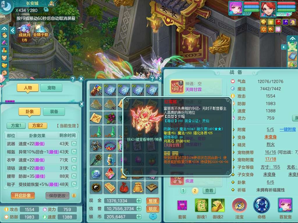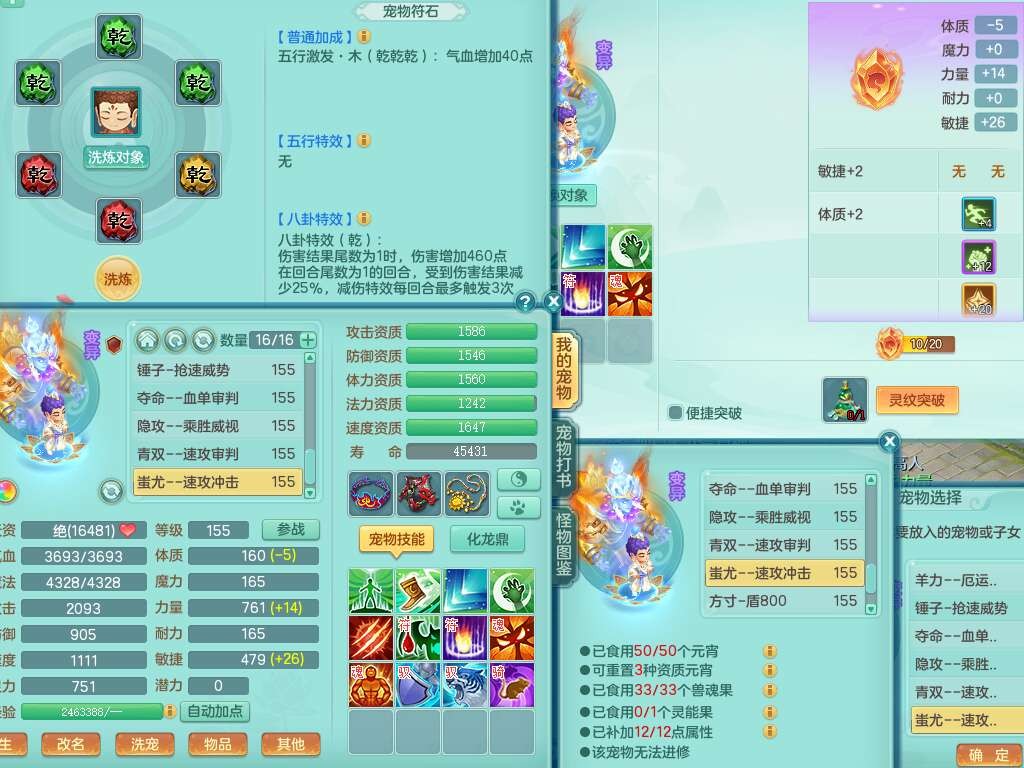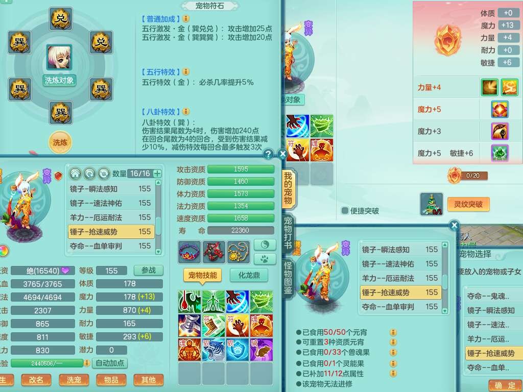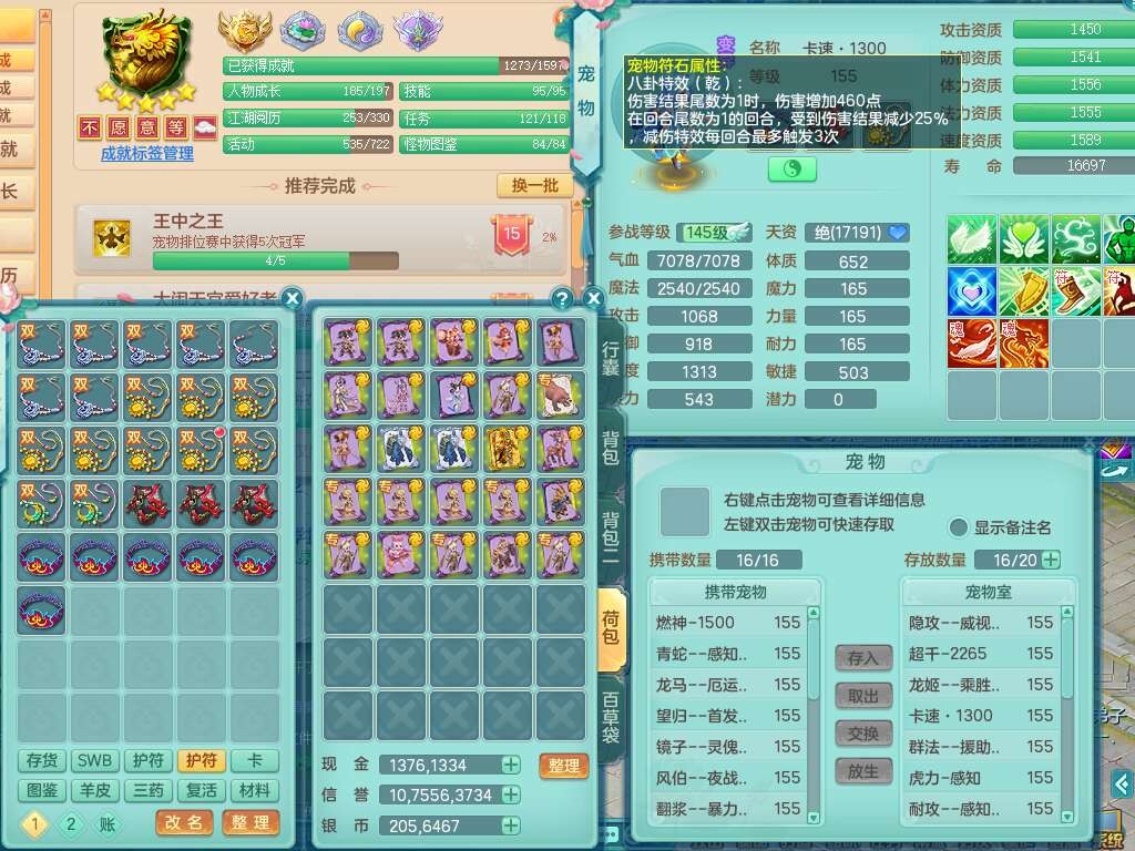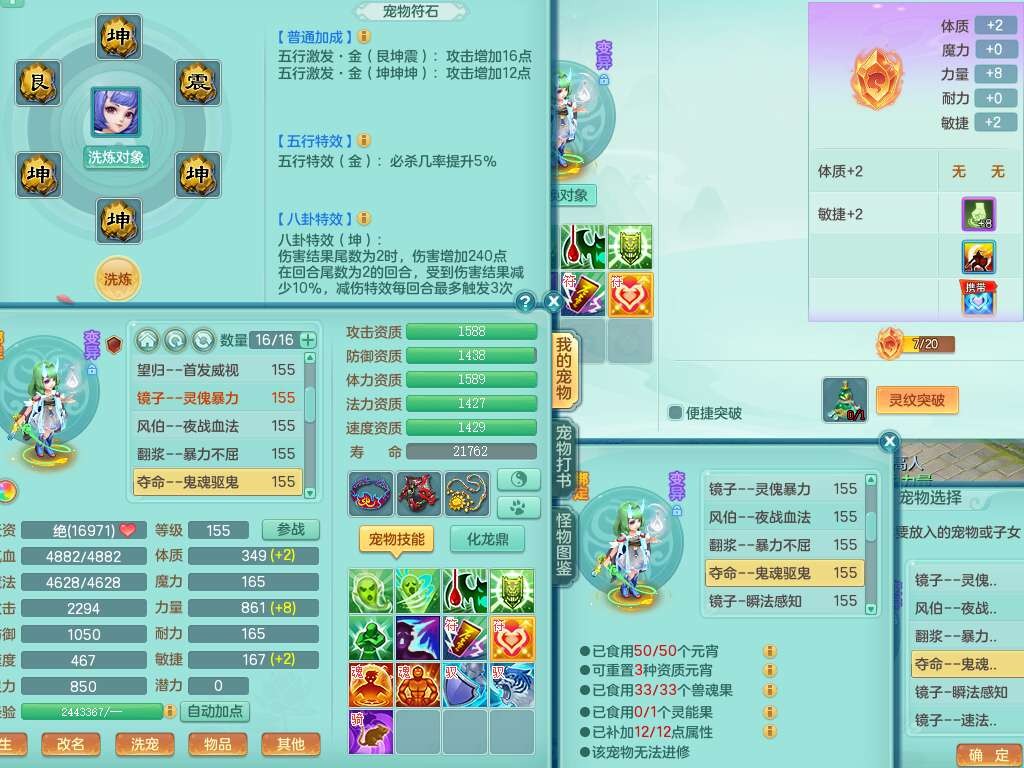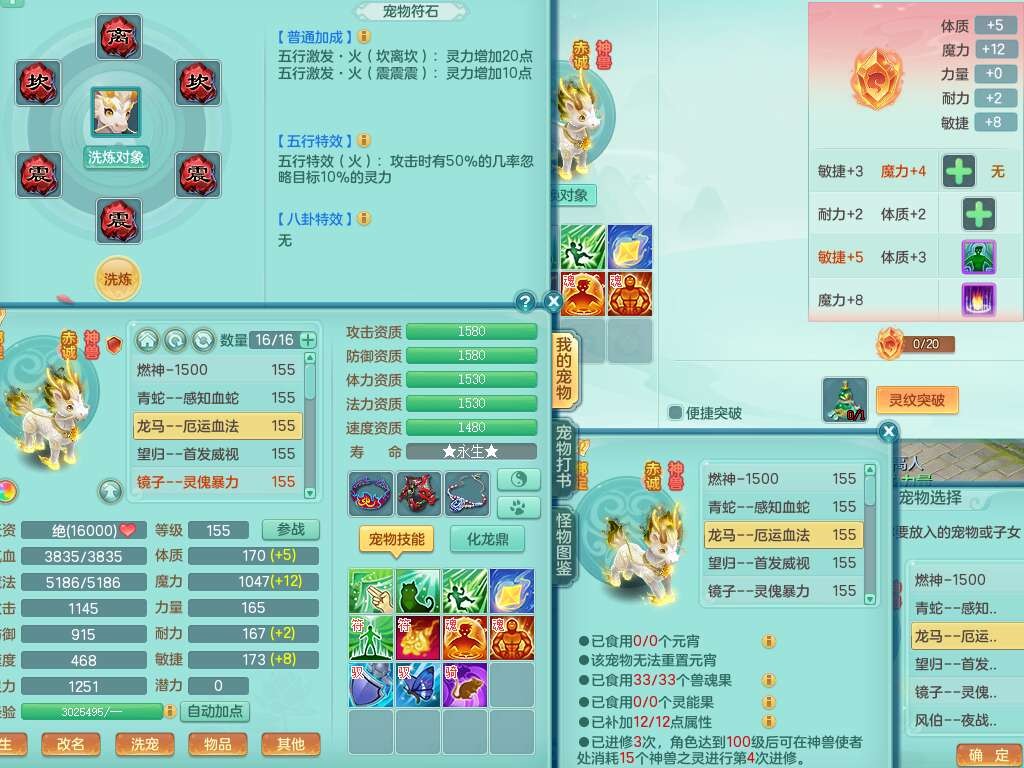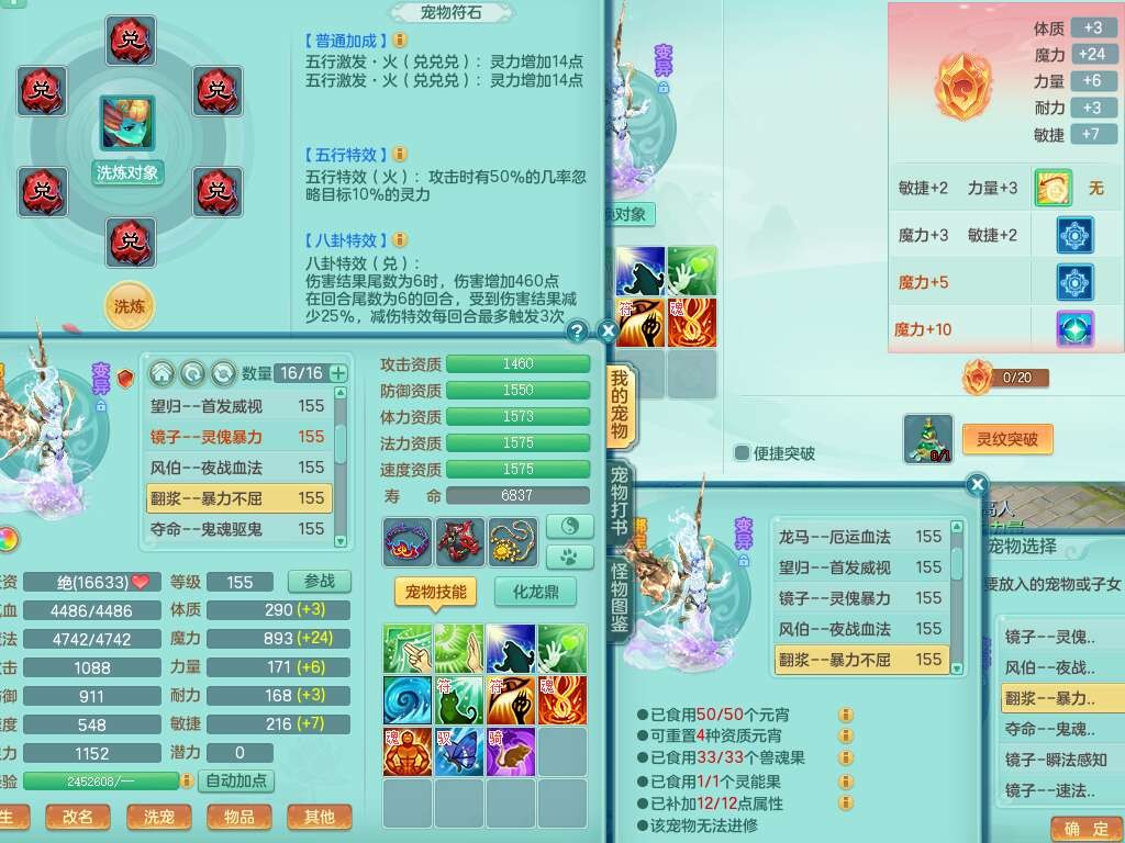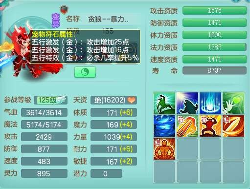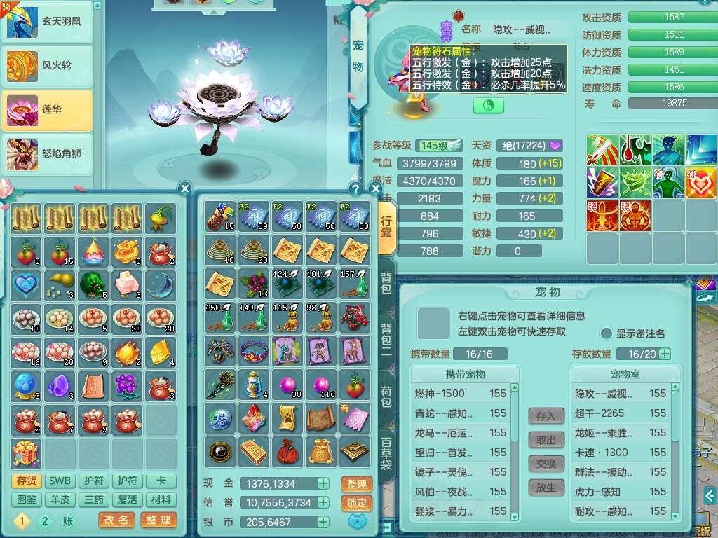 S22372风驰电掣159女方寸,精灵舞,1龙无内,1内胆神,【9只觉醒,已潜龙】,1宠皮,4特殊(青霜,夺命2,灵傀),3只六技能镜花灵,2只六技能龙姬,愤怒6特,可玩任何封辅,934易成长必杀单加武器,5.5基础鼎+70攻,280血,14个格子,8个纯六字,20只满果子,背包45神兽内丹碎片,经验成就在榜,火焰之力武器皮肤,双人飞行坐骑+火焰之力,带2272金币,205W银币,月卡还有53天。