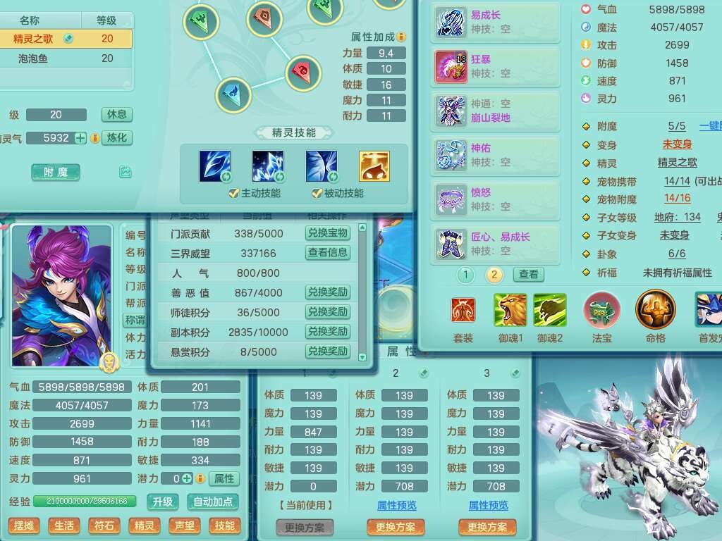 p22368风驰电掣129男万兽,精灵歌,2龙(1龙无内),1内胆神,1宠皮,6只觉醒,易成长单加40头,729狂暴武器,崩山衣服,神佑单加43项链,愤怒单加44腰带,匠心易鞋子,4.0基础鼎,15只满果子,宠排在榜,双人坐骑。