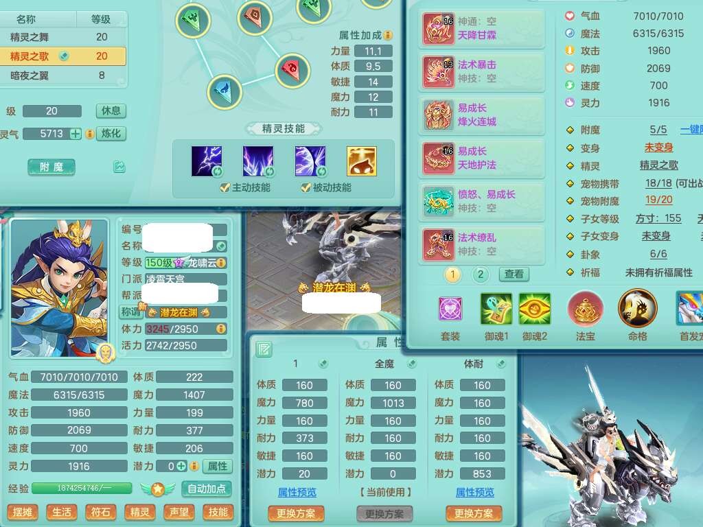 A22371今年勇159男天宫,精灵歌+舞,7龙3内(1龙马1蛇),8破镜,【11只觉醒,已潜龙】,8位靓号,4只六技能镜,7特殊,化龙鼎6.0,15个纯六字,暴龙泰坦+西瓜冰+神驹马到成功。