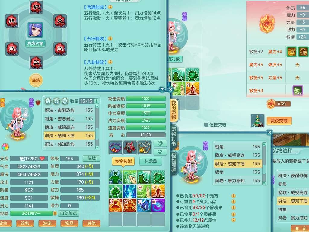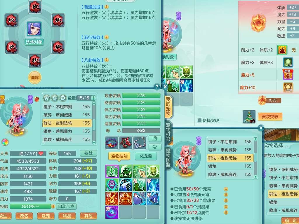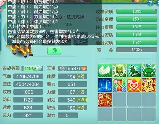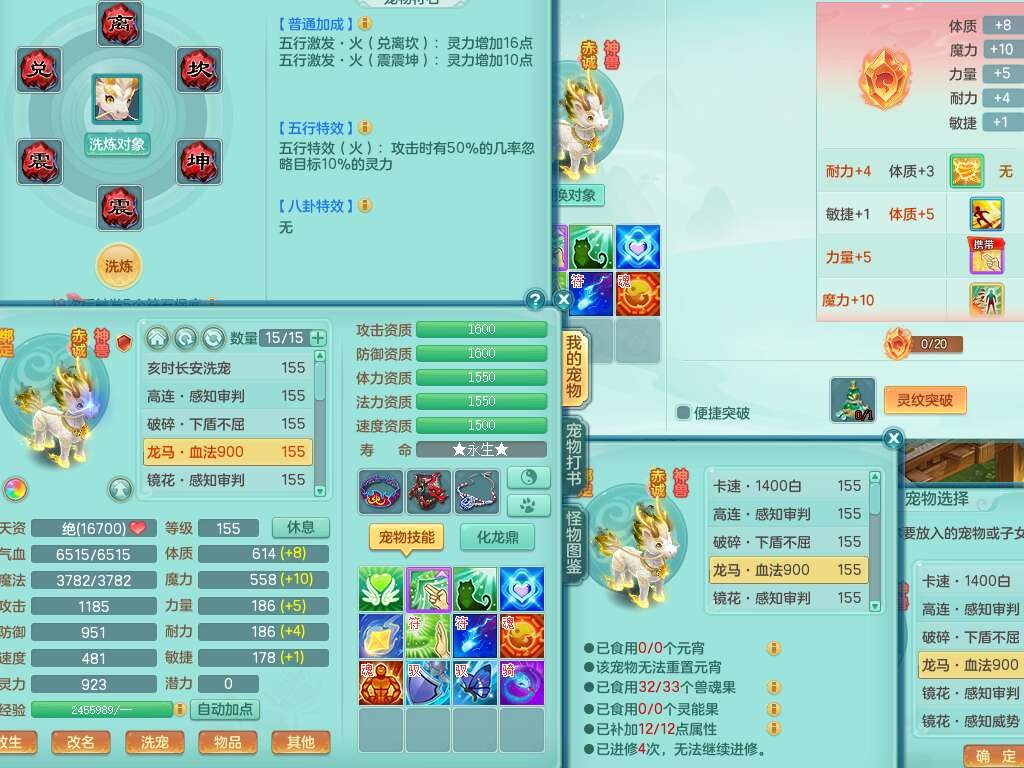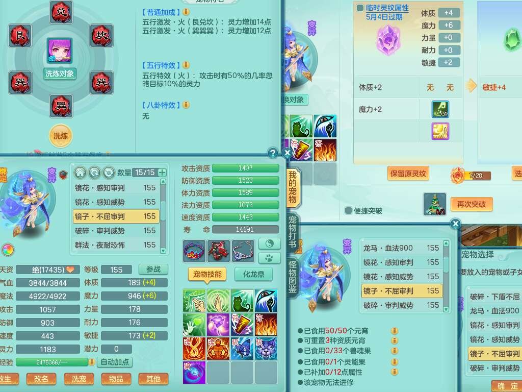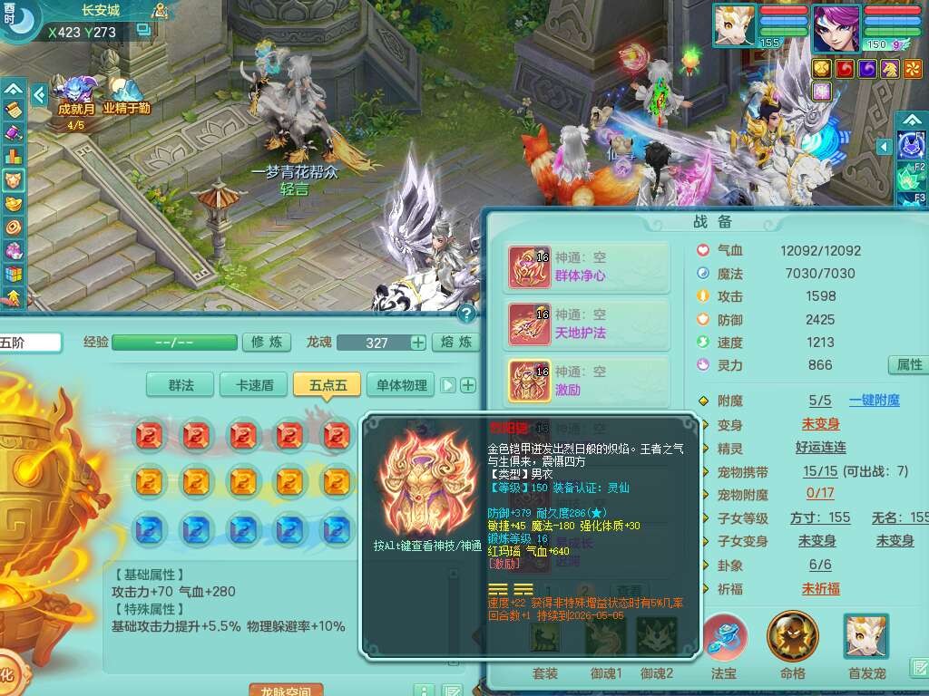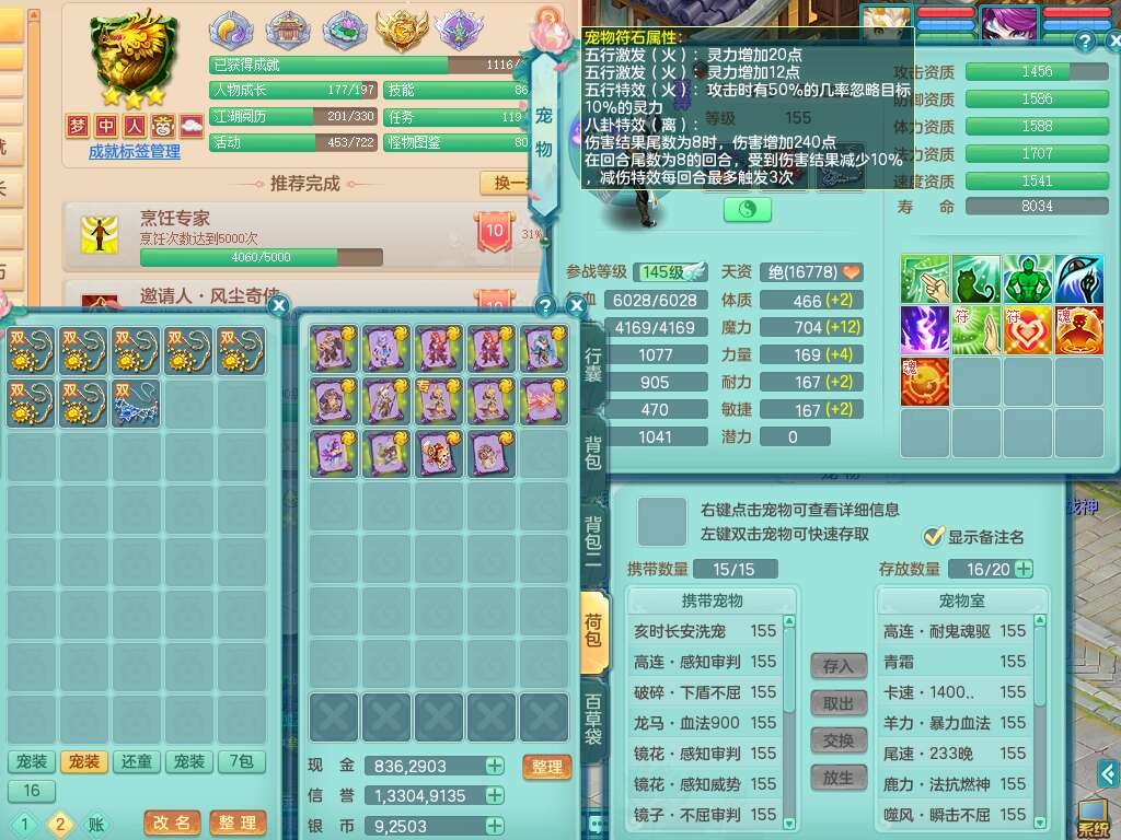 S22362风驰电掣159男灵月山,精灵舞,2龙2内胆神(1马),【10觉醒,已潜龙】,4位靓号不含4,3宠皮,3特殊(羽袭,善恶),4只六技能镜花灵,愤怒单加51腰带,易成长迟滞鞋子,五特,有愤怒单加57腰带,5.5基础鼎+70攻+280血,差174积分永久14个格子,7个纯六字,2个五字,18只满果子,双人坐骑,有40个神兽内丹碎片,87天月卡。