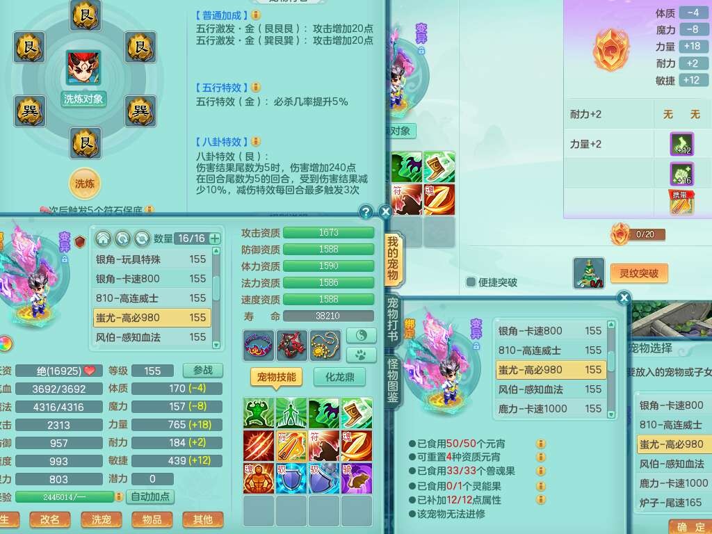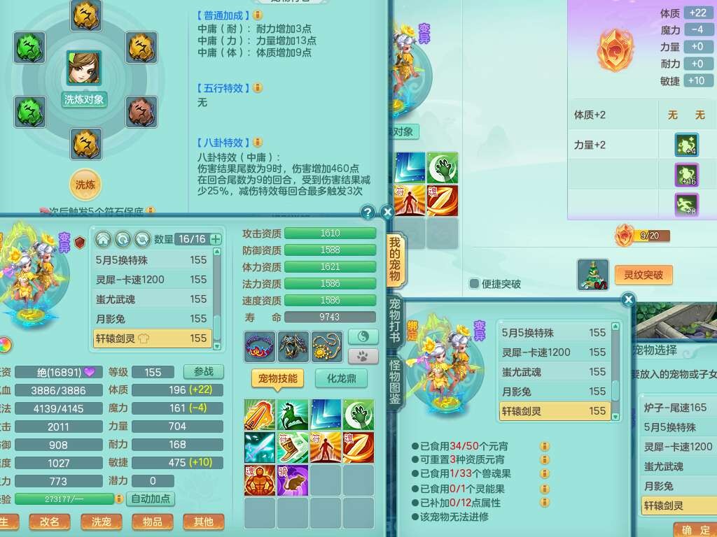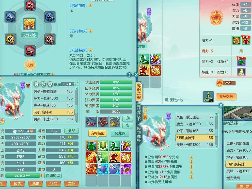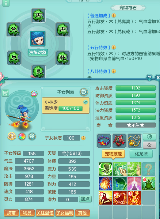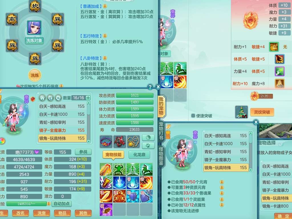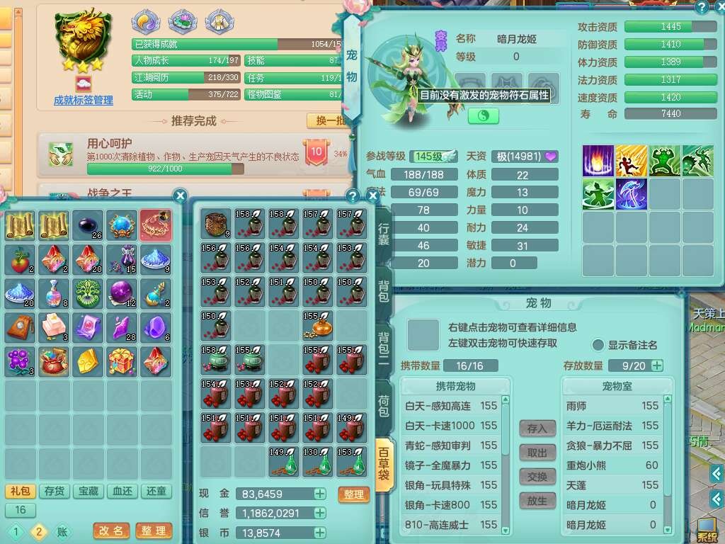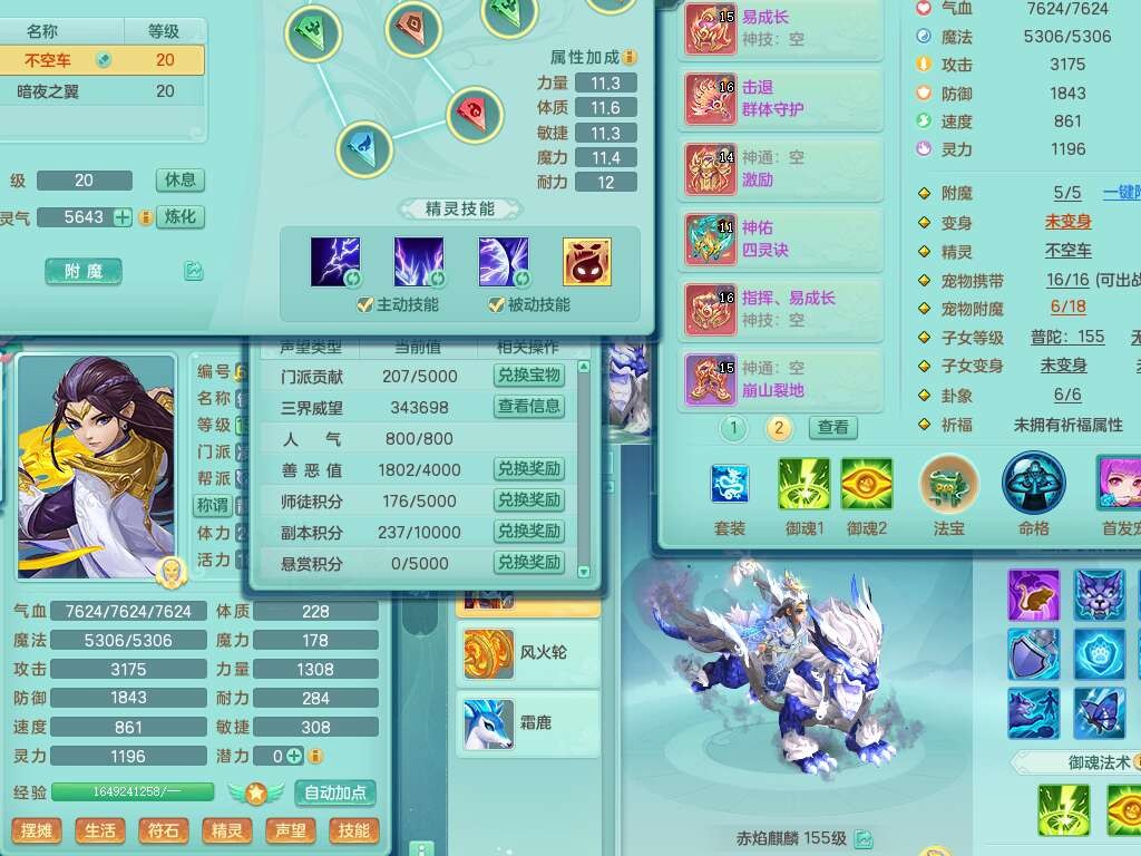 S22361龙腾九州159男天宫,精灵舞,2龙(1龙没内),1内丹蛇,2觉醒,4位靓号不含4,1特殊(枪出),1只六技能镜花灵,1只六技能龙姬,易成长单加50头,904击退群体守护武器,神佑四灵诀单加链子,指挥易成长单加53腰带,崩山鞋子,13个永久格子,6只满果子,双人坐骑,有28个神兽内丹碎片,107天月卡。