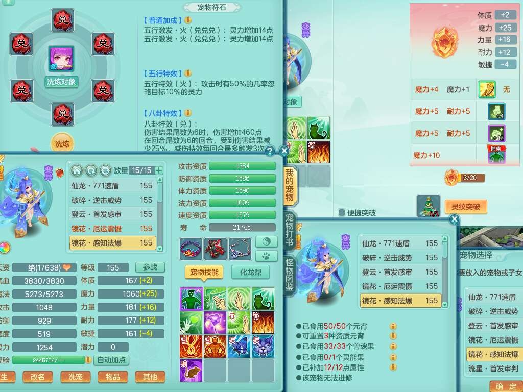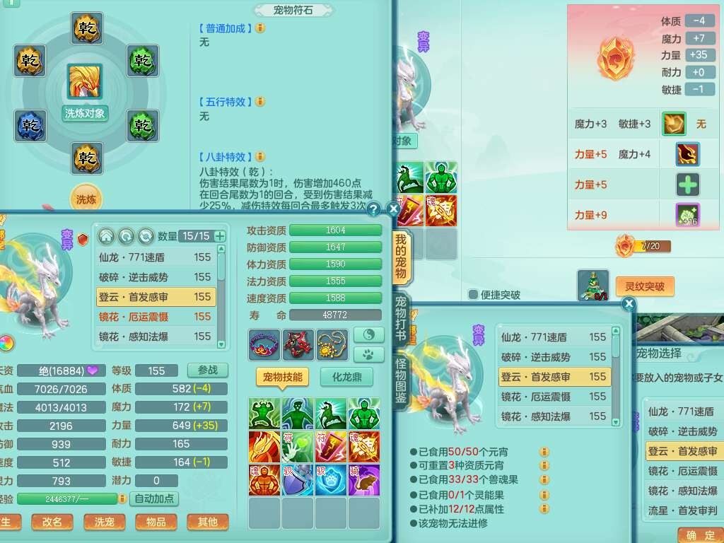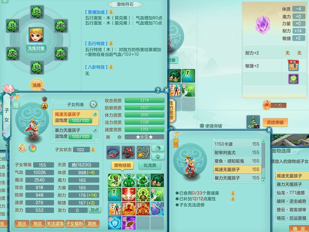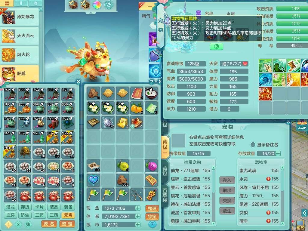 a22359普天同庆159男万兽,1龙没内,1内胆神,1神兽青蛇+32神兽内胆碎片,8只觉醒(准潜龙,化龙鼎满足,宠物只差1个觉醒,符石差3个26,2个附加),4宠皮,6特殊(流星,勇猛,噬风,雷厉,夺命,虎虎),3只六技能镜花灵,崩山单加55衣服,易成长晶清单加54鞋子,926易成长武器,易成长单加57腰带,5.5基础鼎+70攻+280血,物理躲避10%,13个格子,8个纯六字,16只满果子,仓库还有77个果子,2个双人坐骑,原始暴龙洪荒,带107天月卡。