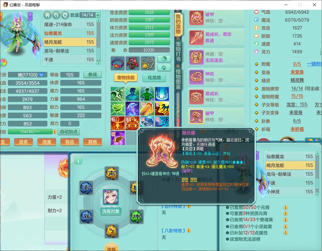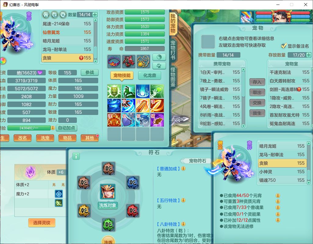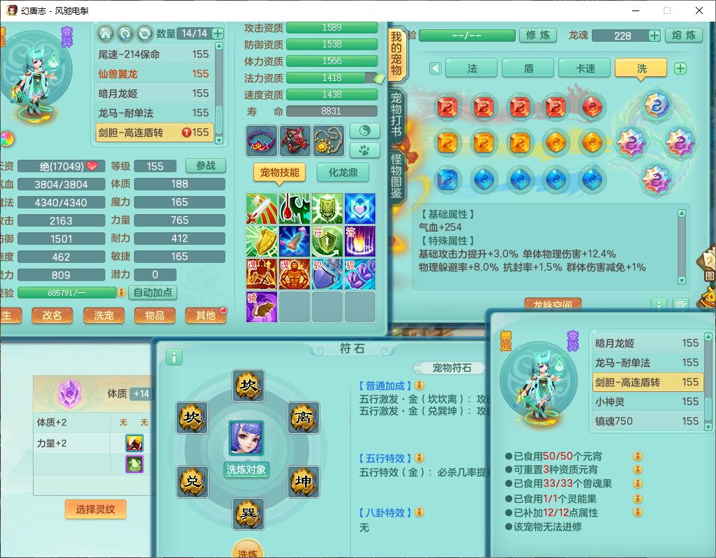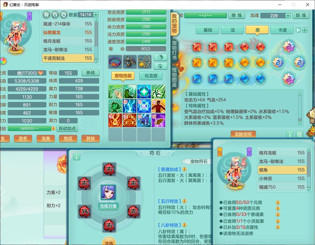 62443风驰电掣159男龙宫精灵舞,2龙(无内,1换)2内(1青蛇1龙马)1望归3镜花3特殊(风卷、破碎、剑胆)1龙姬,4觉醒2六字3五字11四字10只满果子,全单加9红星辰之拥装备,法爆Y武器,271Y项链,愤怒四灵腰带,法缭晶清鞋子,一套8红双破甲物理装备,破甲帽子、鞋子,Y疾速武器,神佑项链,鼎4.5,永久外观、精灵皮肤,15个内丹碎片,1飞行坐骑