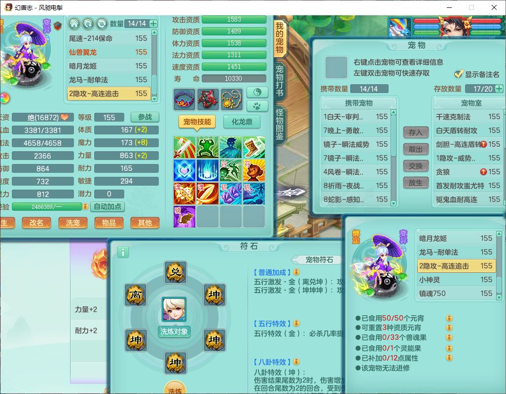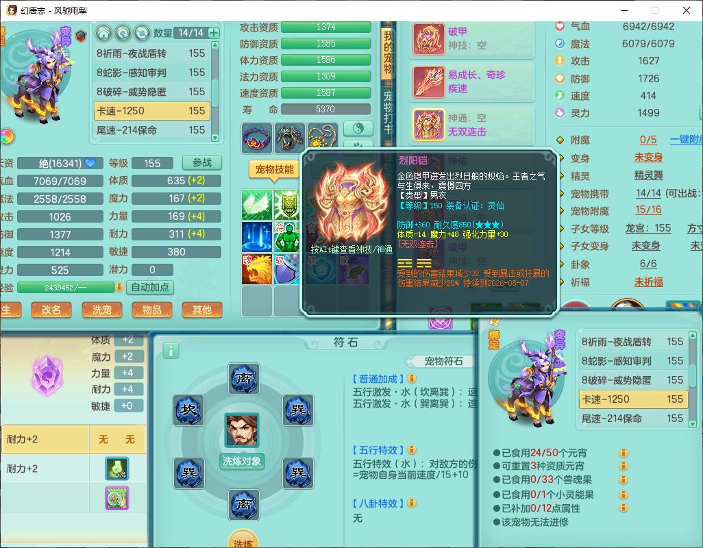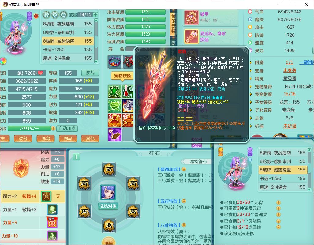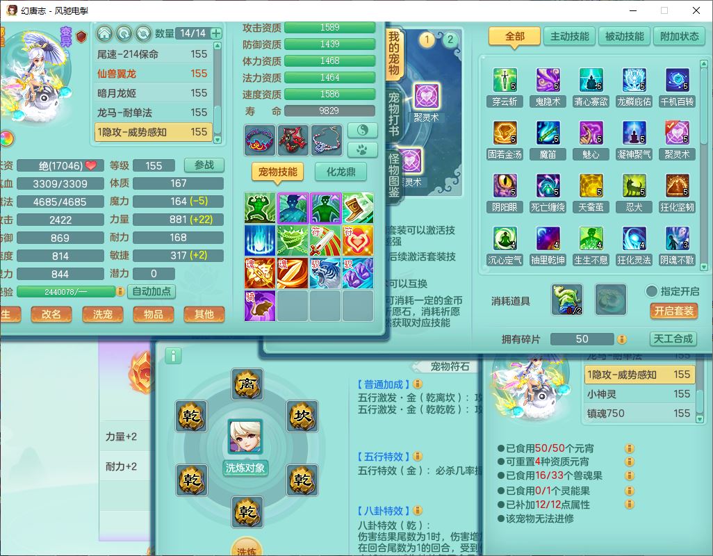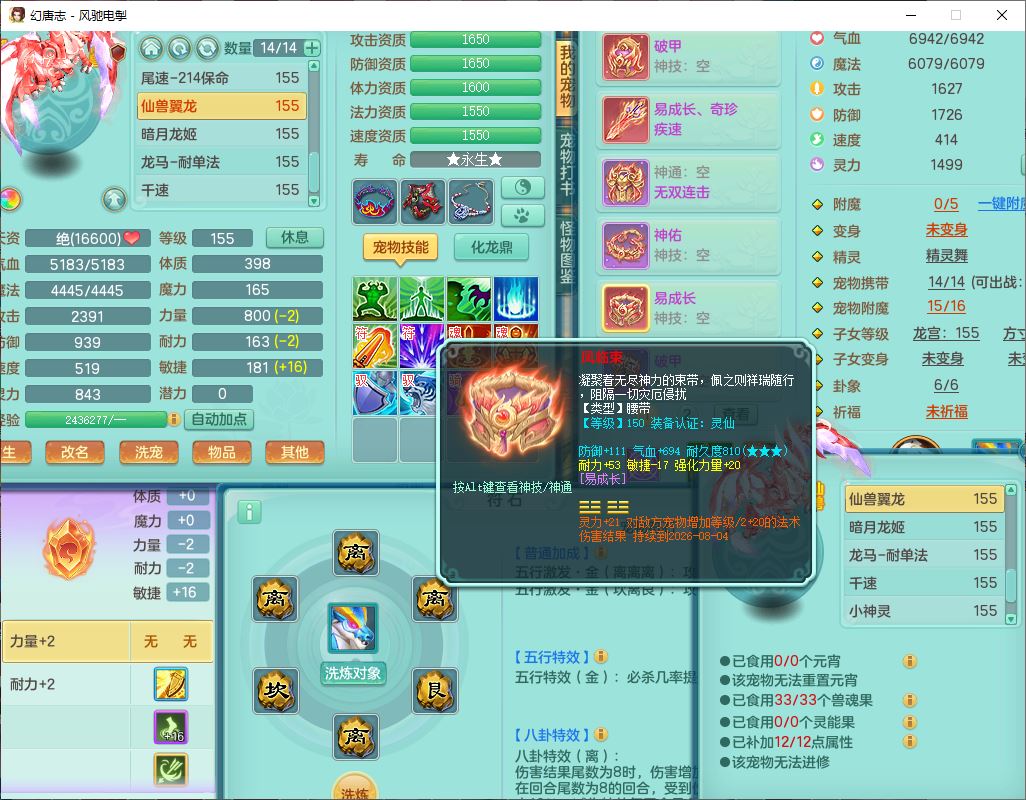 62443风驰电掣159男龙宫精灵舞,2龙(无内,1换)2内(1青蛇1龙马)1望归3镜花3特殊(风卷、破碎、剑胆)1龙姬,4觉醒2六字3五字11四字10只满果子,全单加9红星辰之拥装备,法爆Y武器,271Y项链,愤怒四灵腰带,法缭晶清鞋子,一套8红双破甲物理装备,破甲帽子、鞋子,Y疾速武器,神佑项链,鼎4.5,永久外观、精灵皮肤,15个内丹碎片,1飞行坐骑