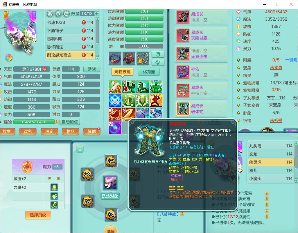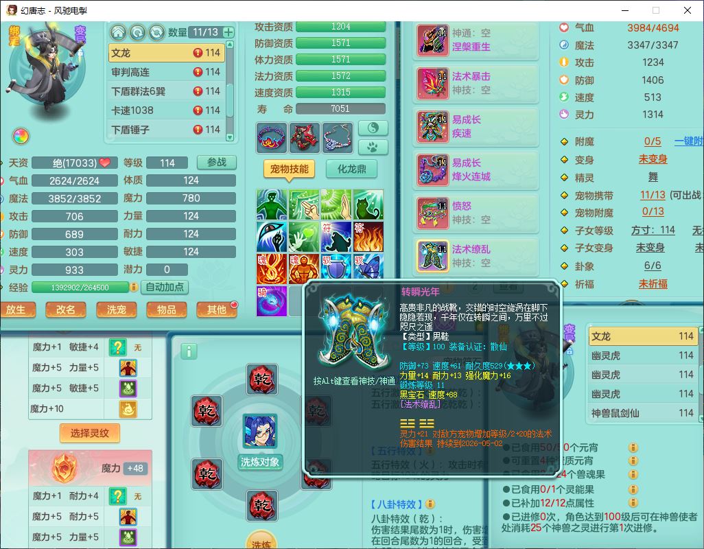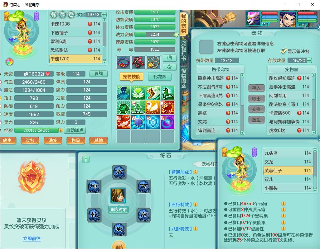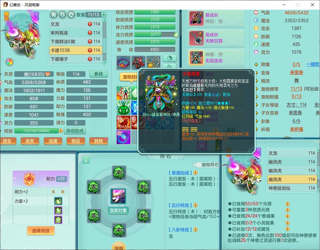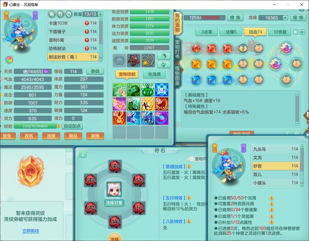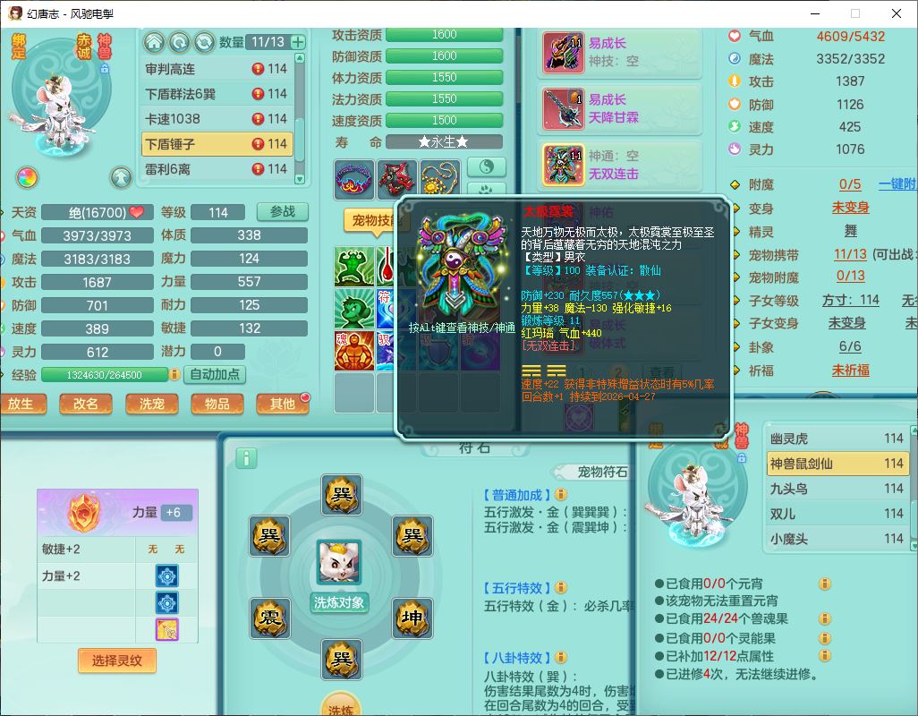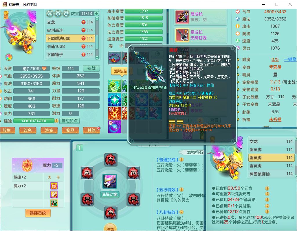 4380风驰电掣109男龙宫【潜龙号】精灵舞,1内2羽袭1翻江,宝宝种类齐全,7觉醒8六字8四字16只满果子,9红装备,法爆武器,Y疾速衣服,Y烽火项链,法缭鞋子,一套8红物理装,Y四海武器,神佑项链,Y破体鞋子,鼎3.0+42+168,2套符石,庭院161,永久外观、精灵皮肤,23个仙兽灵,3双人坐骑(2飞行)