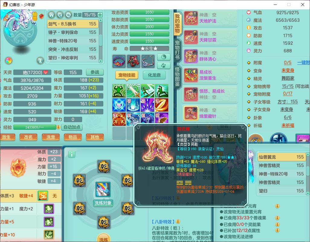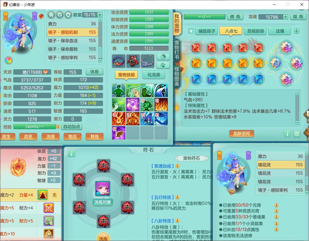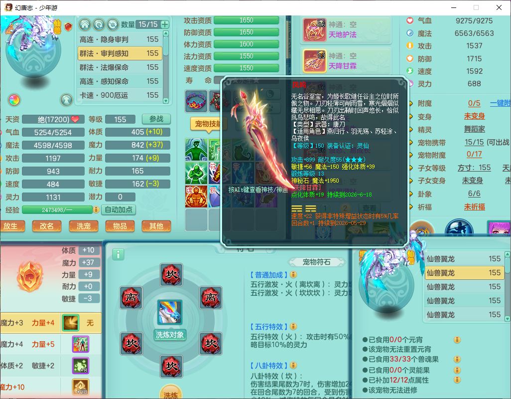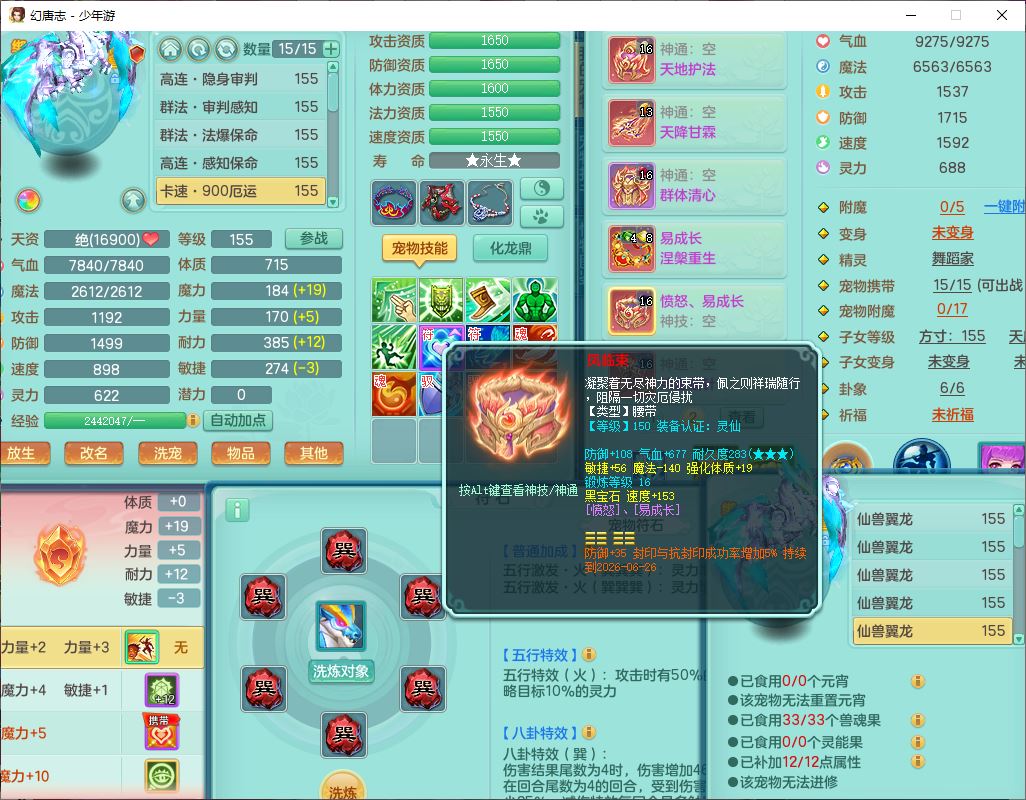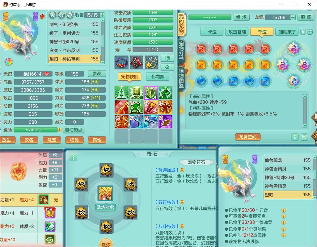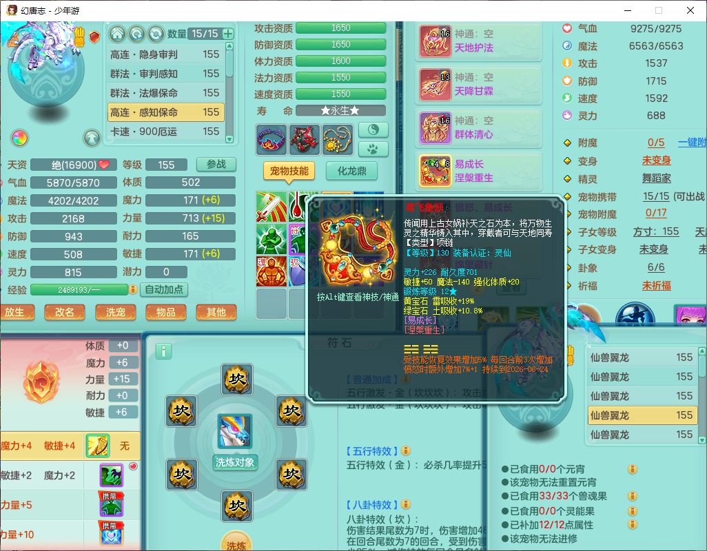 24340少年游159男方寸【潜龙号】8位靓号,精灵舞,6龙(1换,1破境)3内1望归4镜花2特殊(焚心,兽决祈雨),12觉醒1宠皮11六字1五字9四字综合20只满果子,8红全单加装备,愤怒Y腰带,鼎5.5+70+280,130多w神武币,1神兽内丹,5坐骑(3双人飞行)