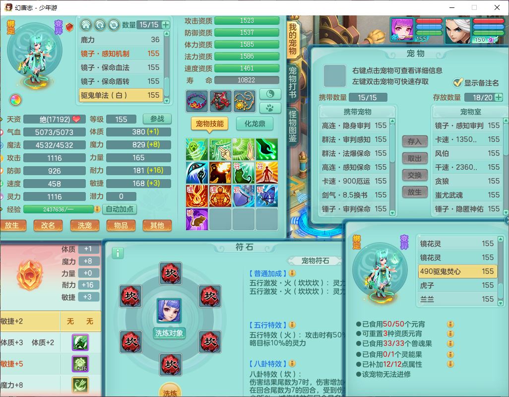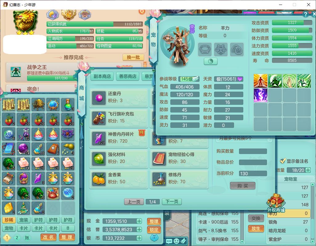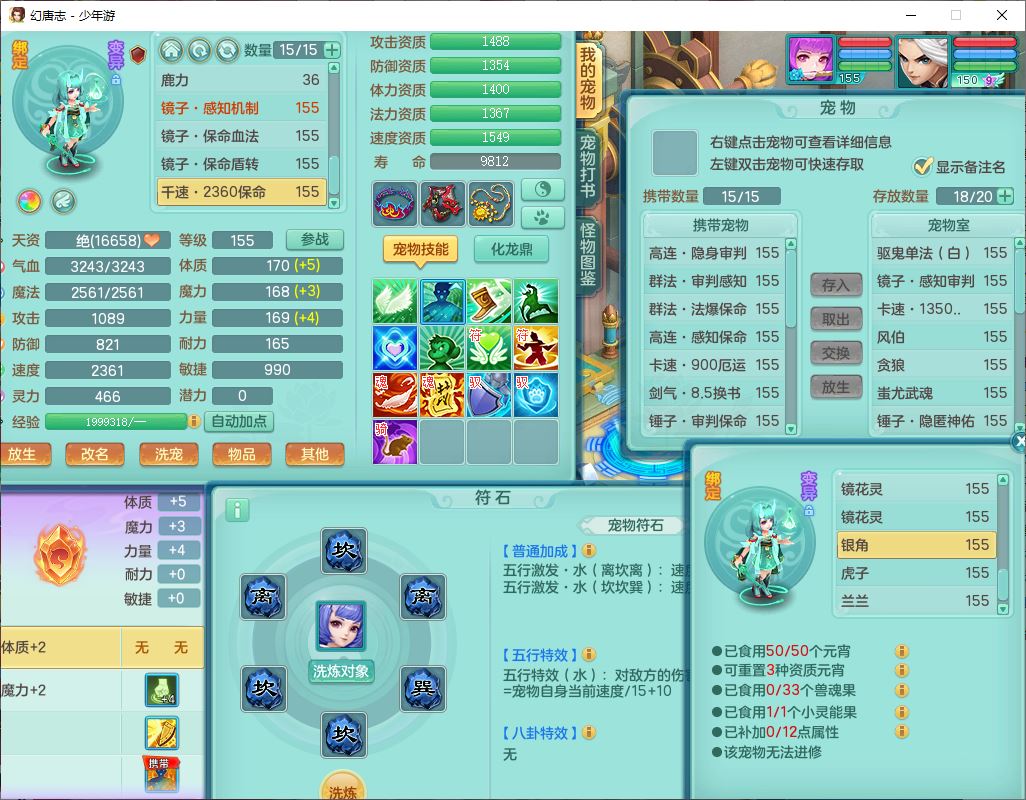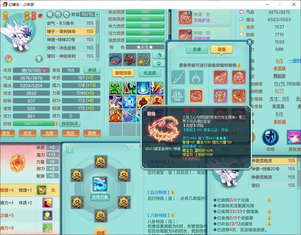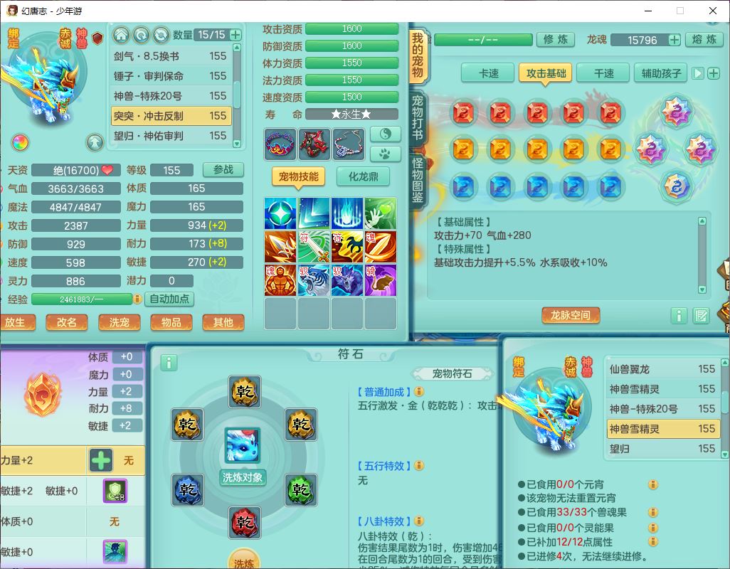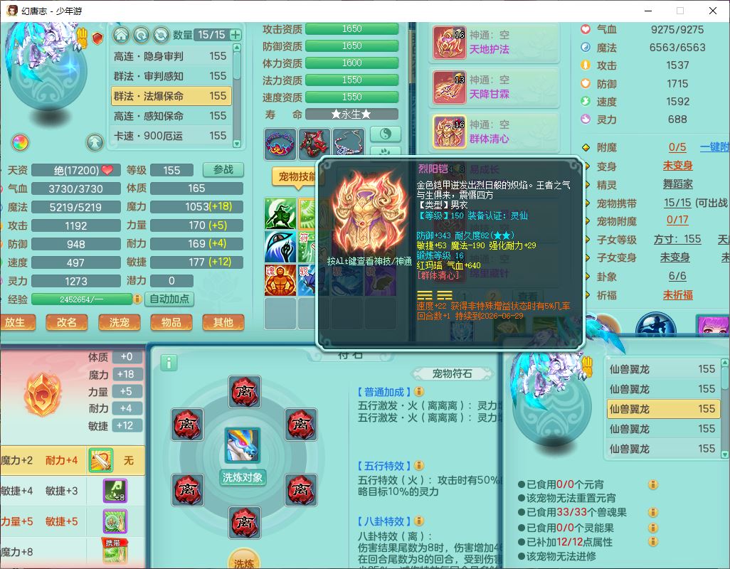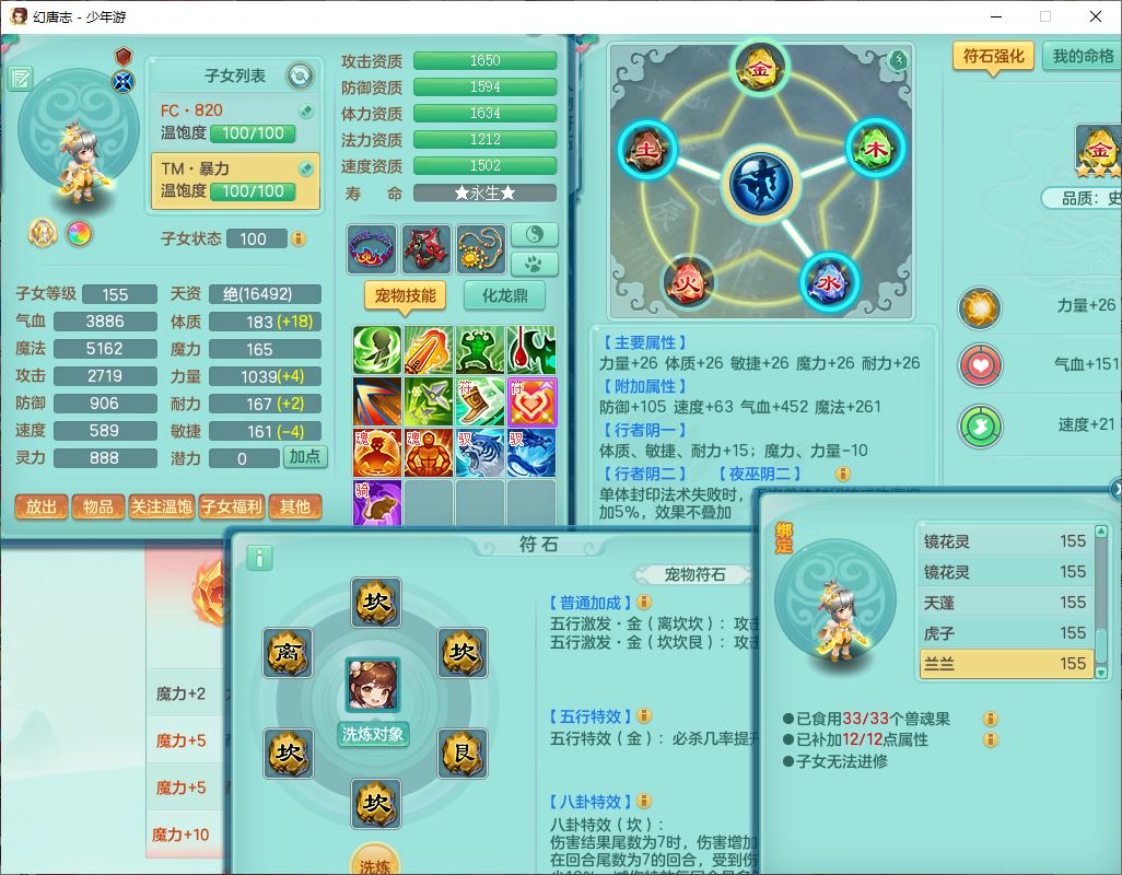 24340少年游159男方寸【潜龙号】8位靓号,精灵舞,6龙(1换,1破境)3内1望归4镜花2特殊(焚心,兽决祈雨),12觉醒1宠皮11六字1五字9四字综合20只满果子,8红全单加装备,愤怒Y腰带,鼎5.5+70+280,130多w神武币,1神兽内丹,5坐骑(3双人飞行)