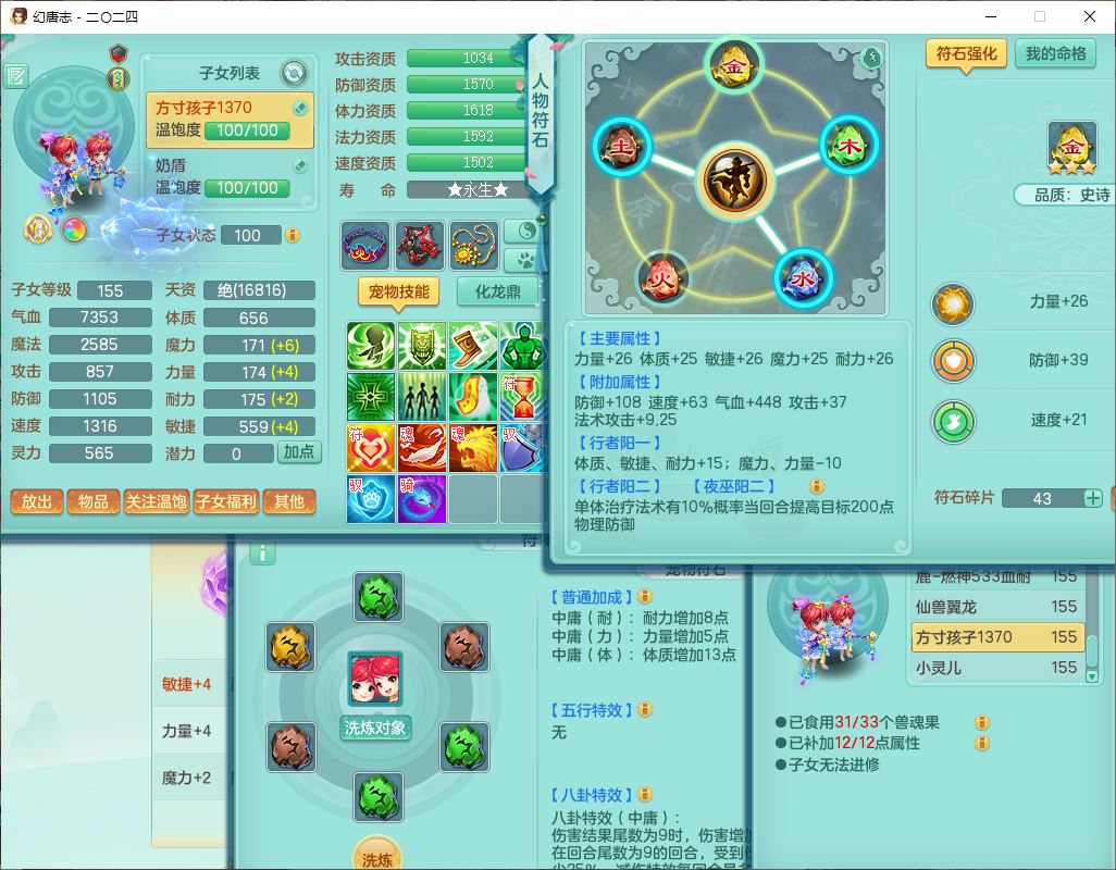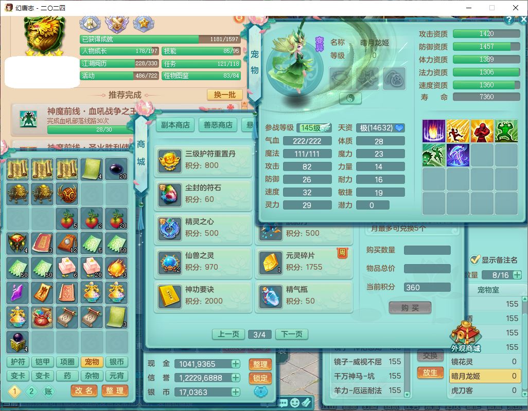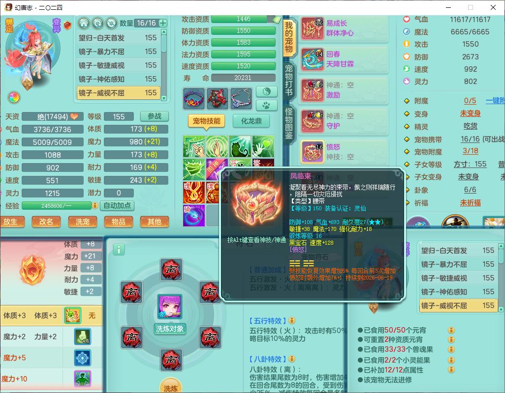 24-10456,2024区159女无量【马上发财+火焰之力+准潜龙号,差2条主符石1条附加】精灵舞,2龙(1无内)3内(1青蛇1龙马)1望归4镜花1龙姬1金炉,13觉醒2宠皮7六字1五字5四字综合18只满果子,全单加8红装备,Y晶清帽子,回春四海武器,愤怒腰带,仓库多装备,法缭真元衣服,破甲愈气鞋子,934单加Y武器,震怒四海腰带,鼎5.5+70+280,144天月卡,冰晶庭院146,永久外观、精灵皮肤,4000多金币,3坐骑