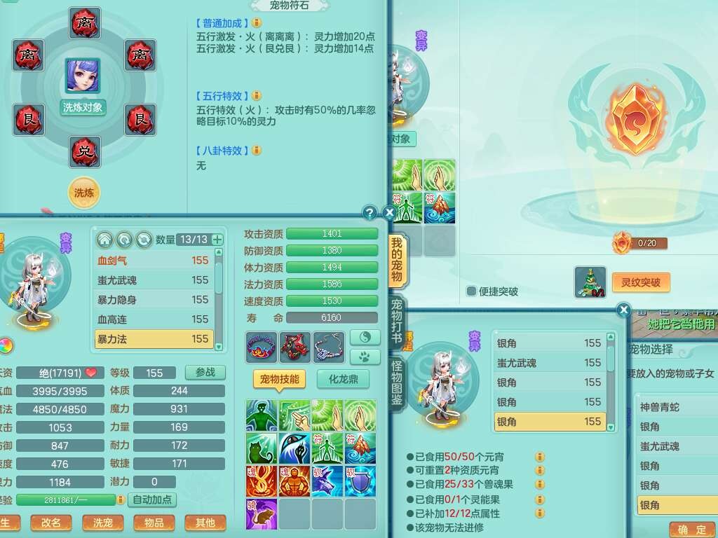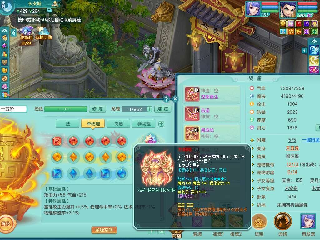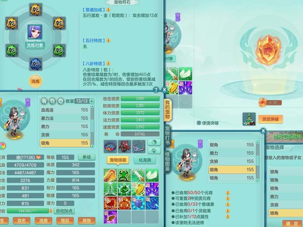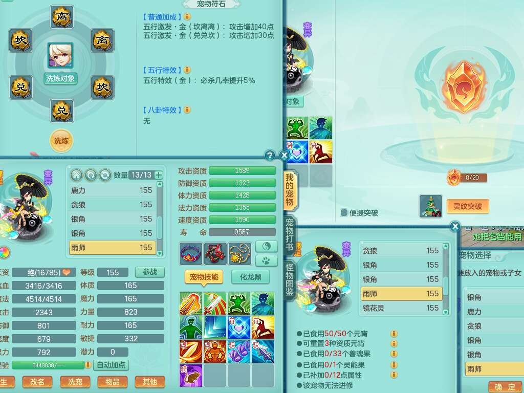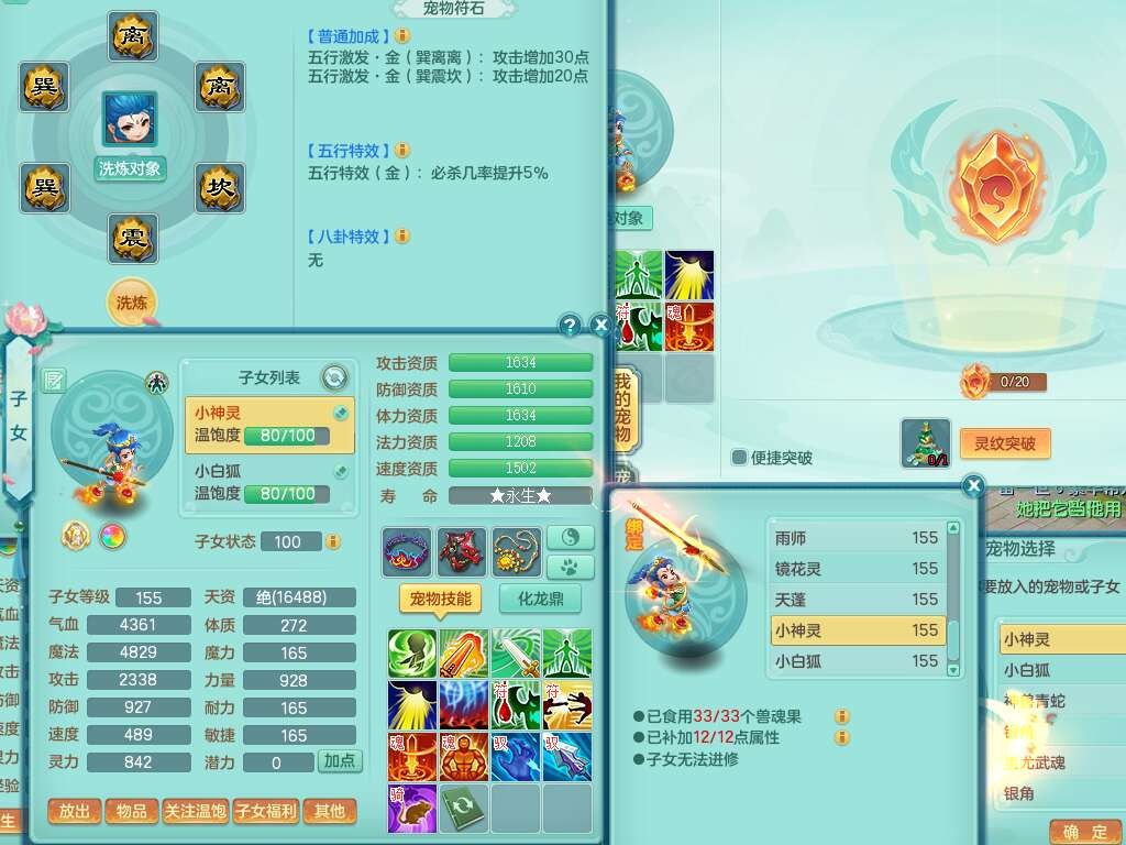 S22388风华绝代159男龙宫,精灵歌,1内胆神,1特殊(月光),击退单加56武器,有928法暴单加55武器,易成长单加56衣服,易成长激励单加52鞋子,4.5基础鼎,综合4只满果子。