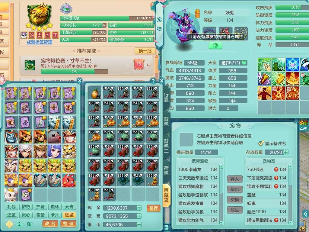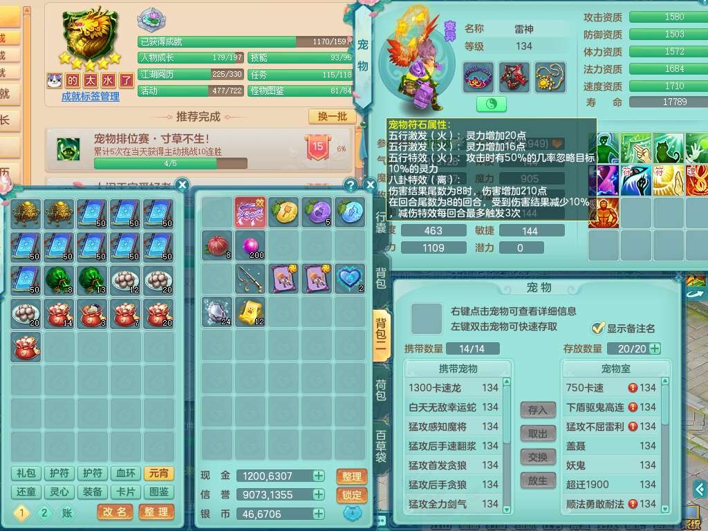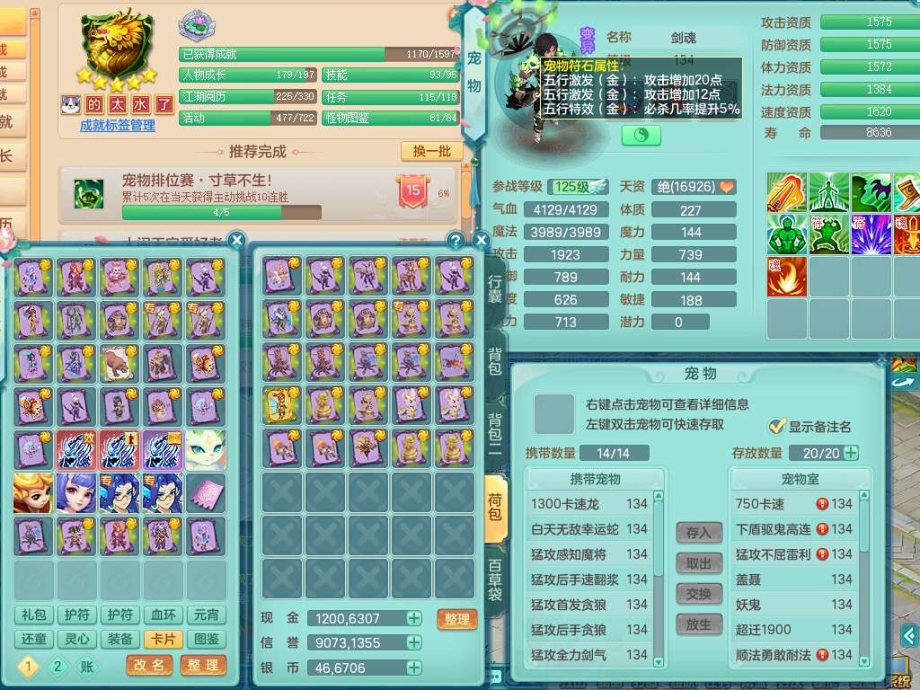 K22380普天同庆129男万兽,精灵歌+舞,1龙无内,1内胆神,5只觉醒(潜龙条件化龙鼎满足,符石差4个主要属性,2个附加属性,宠物3只满足),星辰之拥,物理双破甲,破甲崩山头,破甲单加鞋子,三红必杀易成长魔音武器,破血单加45衣服,神佑罗汉单加45链子,愤怒易腰带,有209易成长单加链子,五雷单加头,4.5基础鼎,6个纯六字,3个5字,19只满果子,仓库48神兽内丹碎片,宠排在榜,成就在榜,沙洲羊驼坐骑,带1763金币,月卡还有37天。