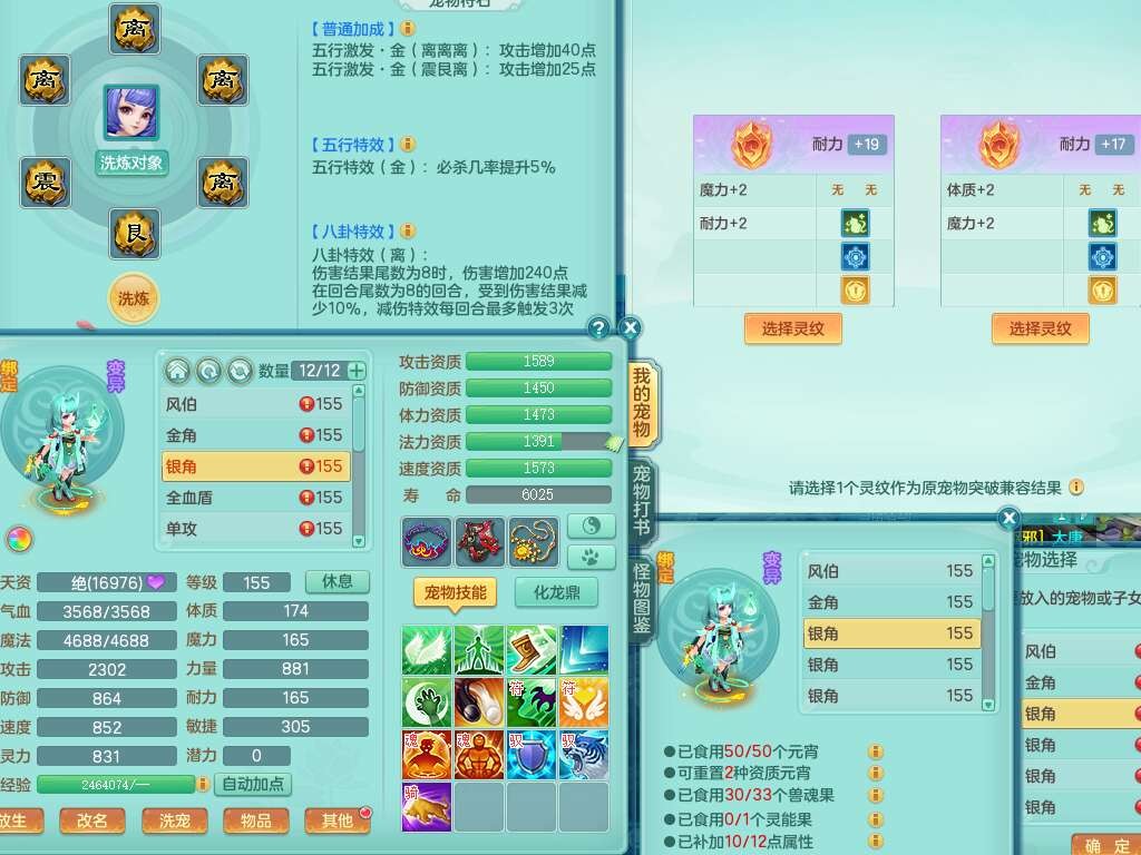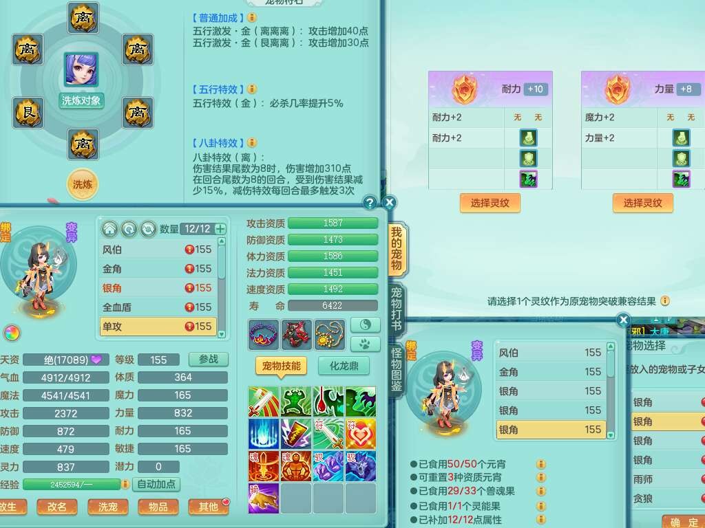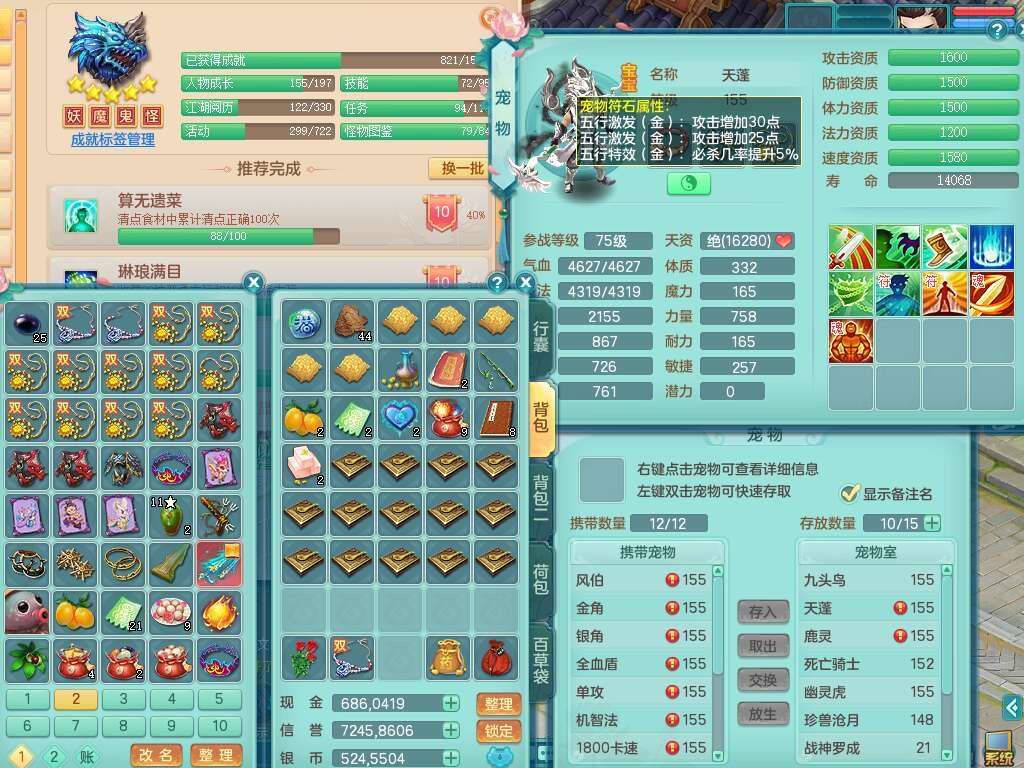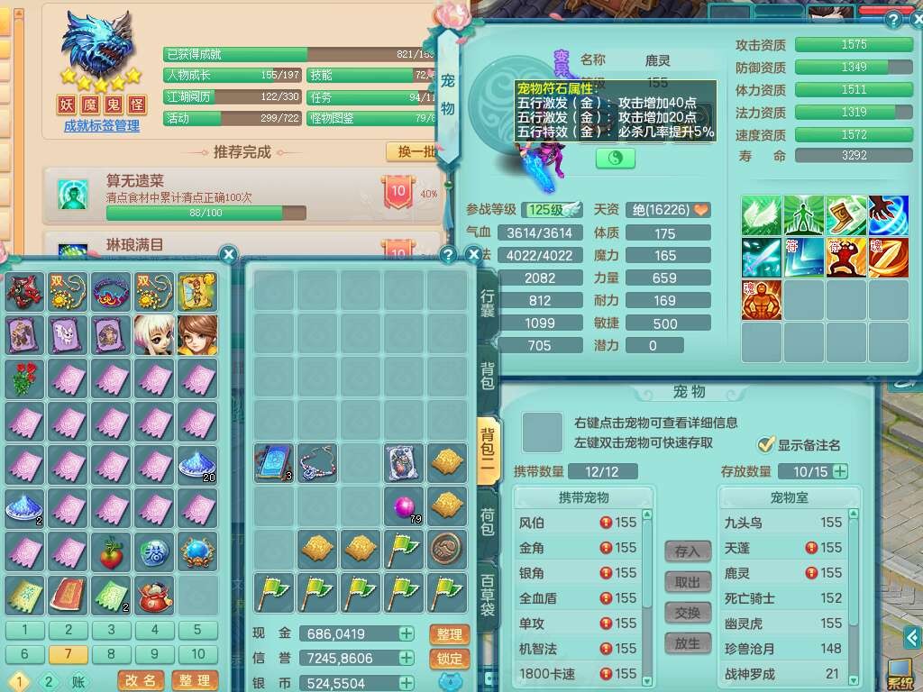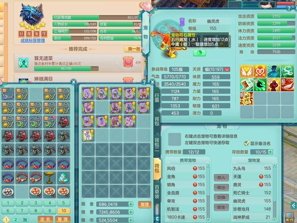 K22375浪淘沙159男方寸,精灵舞,3觉醒,2特殊(双星,以战),易成长封印精通单加头,易成长玉清链子,愤怒单加53腰带,迅捷单加50鞋子,4.5基础鼎,1个五字,综合4只满果子,带524w神武币。➕159女五庄,精灵歌,1神兽,1只六技能镜花灵,912狂暴易成长单加武器,神佑链子,易成长单加腰带,易成长单加53鞋子,4.5基础鼎。➕159女万兽,精灵歌,2觉醒,1特殊(剑气),易成长单加54头,934狂暴武器,神佑单加51链子,易成长单加50腰带,4.5基础鼎,1个五字,2只满果子,带169w神武币。