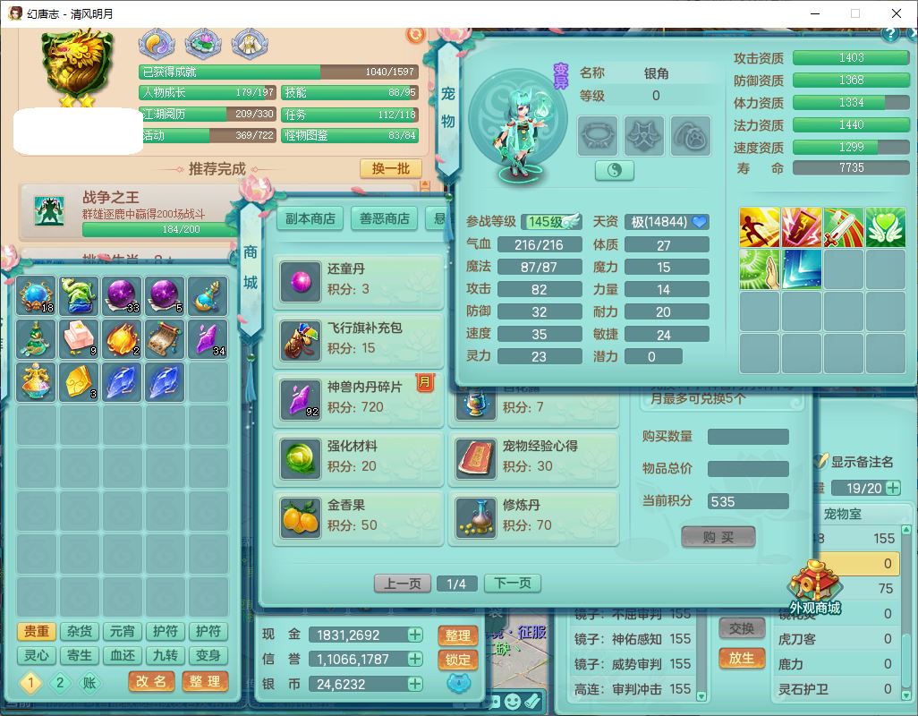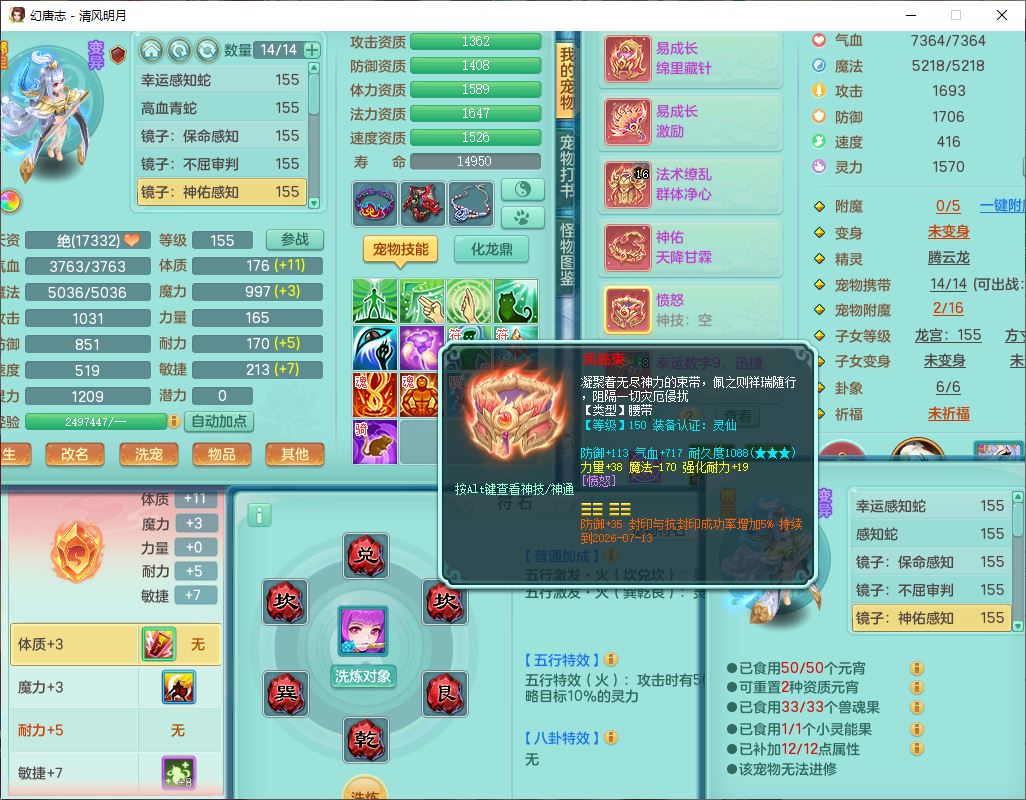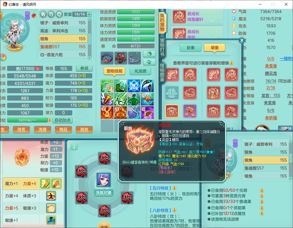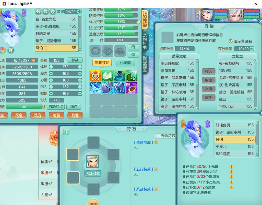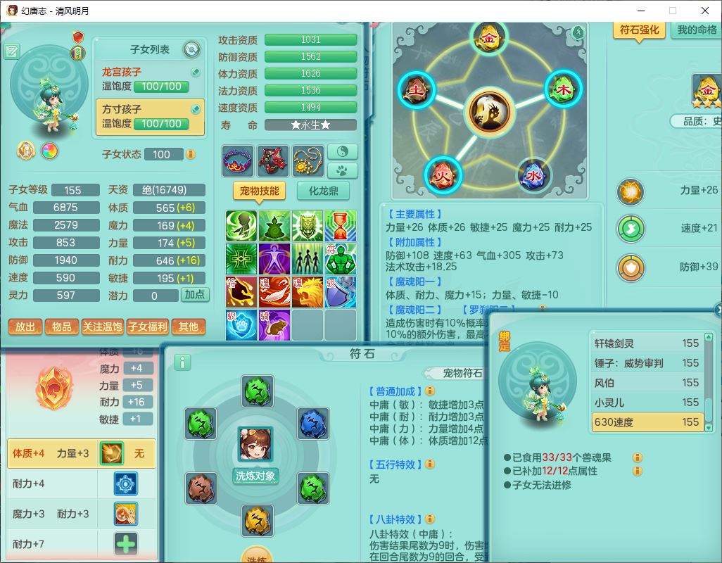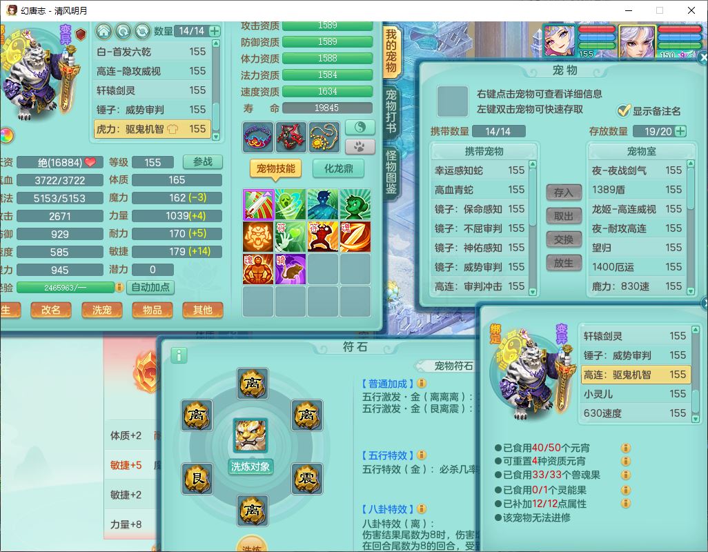 62444清风明月159男魔王【准潜龙号,差3条主符石1条附加1颗赤炎】精灵舞,2内丹青蛇1望归4镜花1龙姬1金炉,12觉醒5宠皮11六字3五字7四字20只满果子,10红双法缭星辰之拥装备,五雷帽子,法爆魔音武器,法缭晶清衣服,266单加Y四灵项链,Y烽火腰带,法缭鞋子,一套12红辅助装,Y笑里衣服,Y激励武器,幸运迅捷守护鞋子,鼎5.5+280,185天月卡,冰晶庭院157,永久外观、精灵皮肤,18个仙兽灵,34个内丹碎片,2双人坐骑(1飞行),带两个156奶粉,装备宝宝齐全