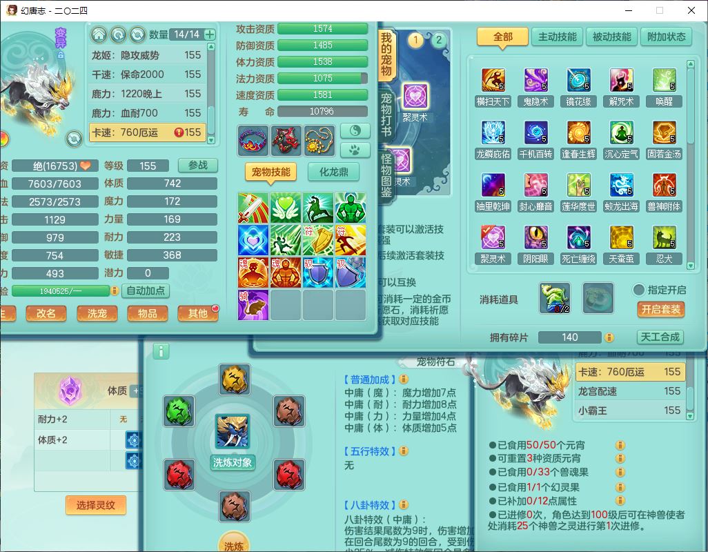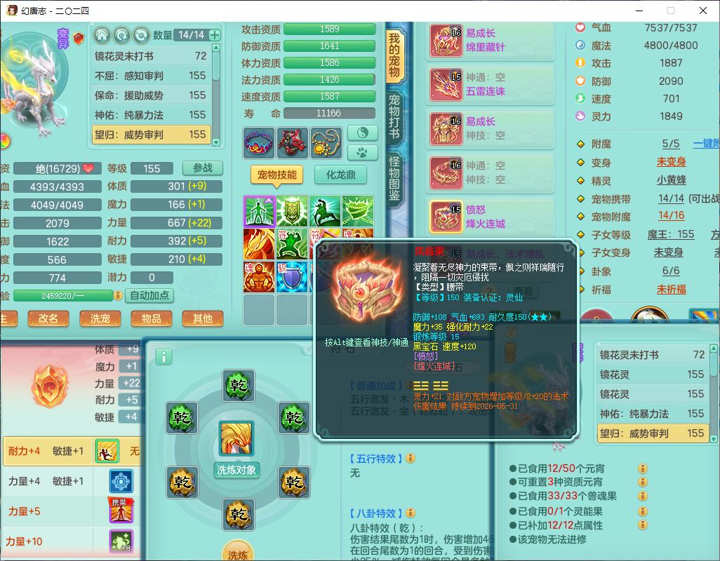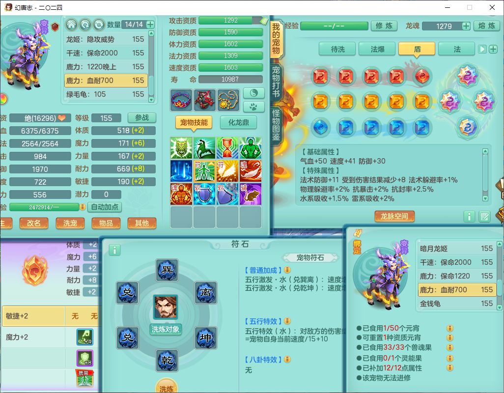 24355,2024区159男龙宫【暴龙洪荒+西瓜冰】精灵舞,2龙2内(1龙马)1望归4镜花1龙姬,1觉醒4宠皮1六字2五字3四字11只满果子,8红装备,Y笑里帽子,五雷武器,愤怒烽火腰带,Y法缭鞋子,有物理装备,狂暴守护武器,崩山项链,破甲鞋子,鼎4.5,122天月卡,冰晶庭院183房屋186,永久外观、精灵皮肤,60个仙兽灵,17个内丹碎片,3双人坐骑(1双人)