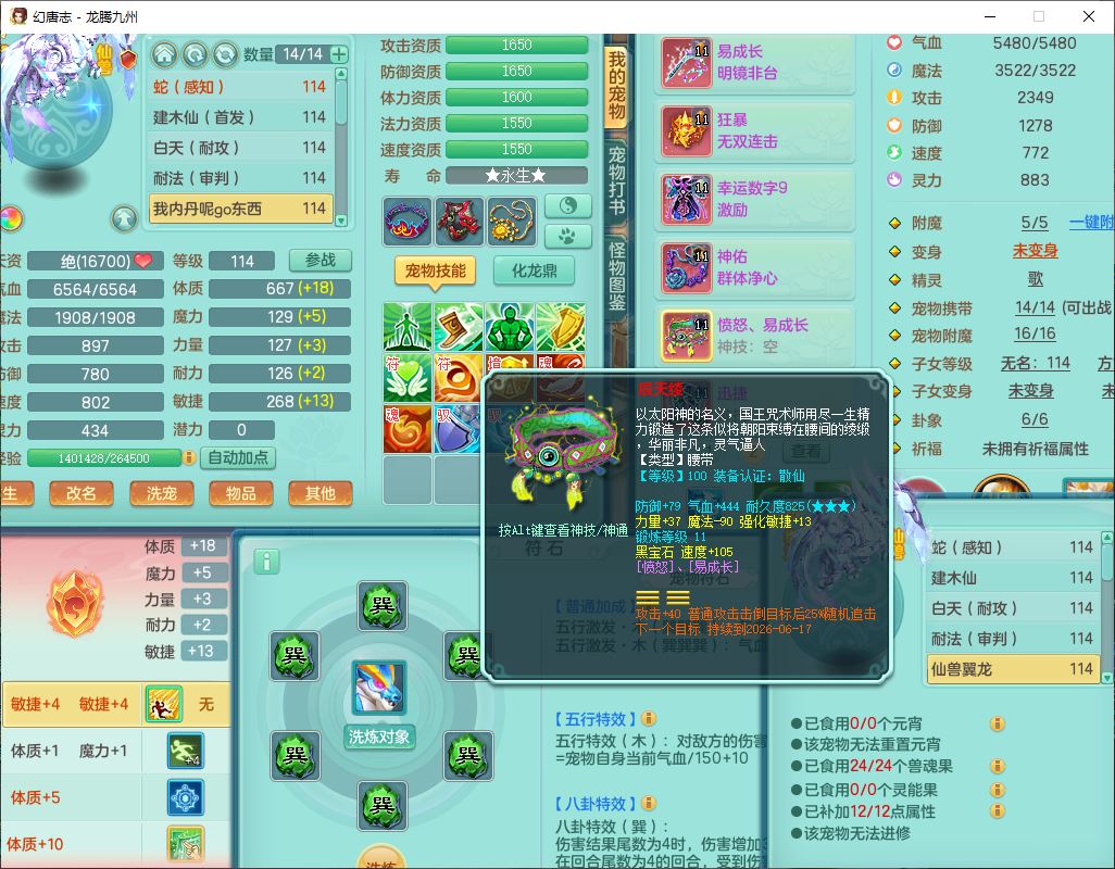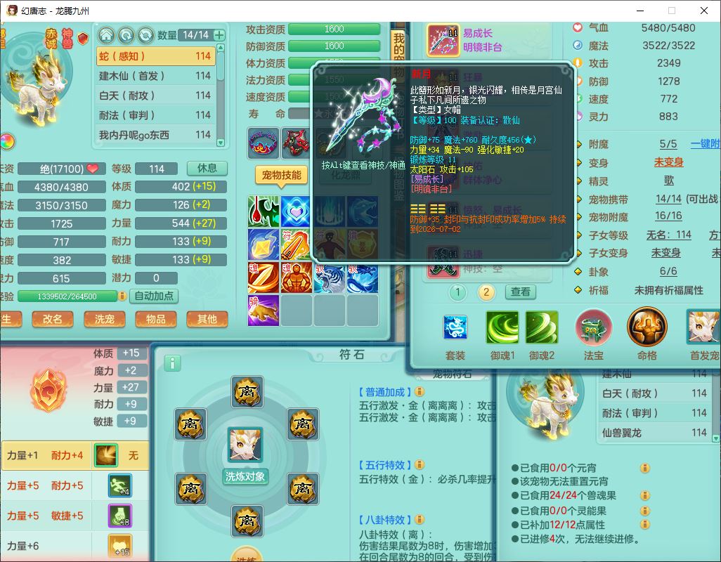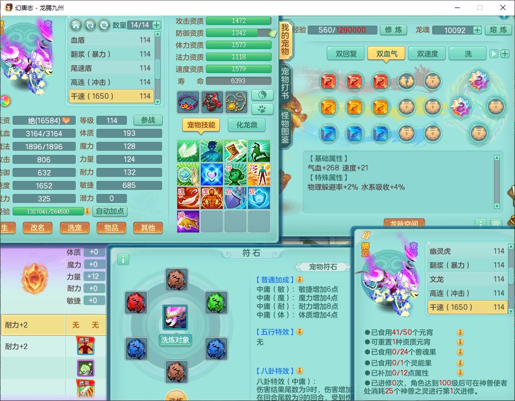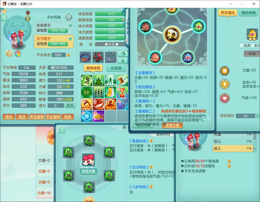 24354龙腾九州109女无名【潜龙号+暴龙洪荒】精灵歌,1龙(换、无内)1内丹龙马(破境)1建木1飞羽2羽袭,8觉醒1宠皮7六字9四字18只满果子,11红装备,Y明镜帽子,狂暴破血武器,幸运9激励衣服,神佑晶清项链,愤怒Y腰带,幸运4四海鞋子,鼎3.0+42+168,2套符石,57天月卡,永久头饰、精灵皮肤,31个内丹碎片,1双人坐骑