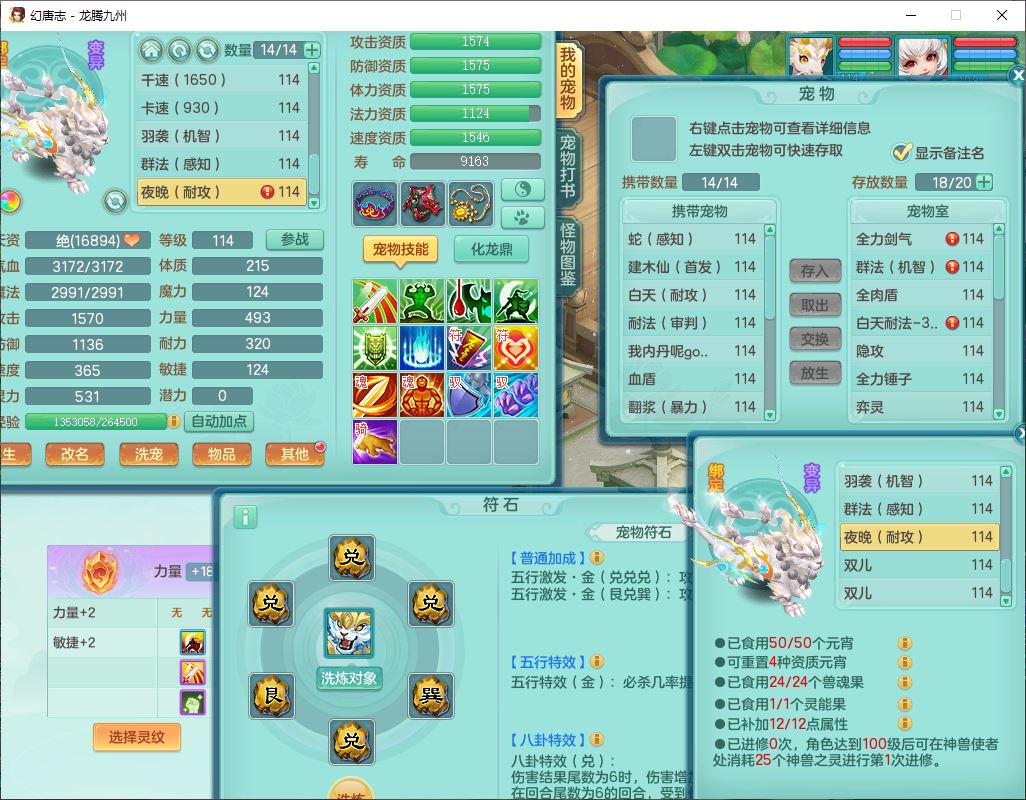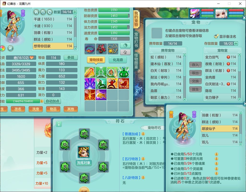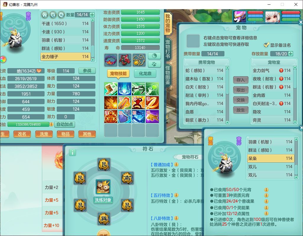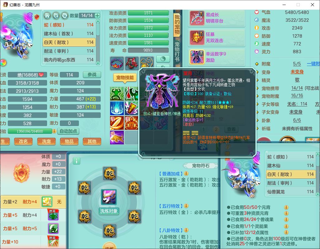 24354龙腾九州109女无名【潜龙号+暴龙洪荒】精灵歌,1龙(换、无内)1内丹龙马(破境)1建木1飞羽2羽袭,8觉醒1宠皮7六字9四字18只满果子,11红装备,Y明镜帽子,狂暴破血武器,幸运9激励衣服,神佑晶清项链,愤怒Y腰带,幸运4四海鞋子,鼎3.0+42+168,2套符石,57天月卡,永久头饰、精灵皮肤,31个内丹碎片,1双人坐骑