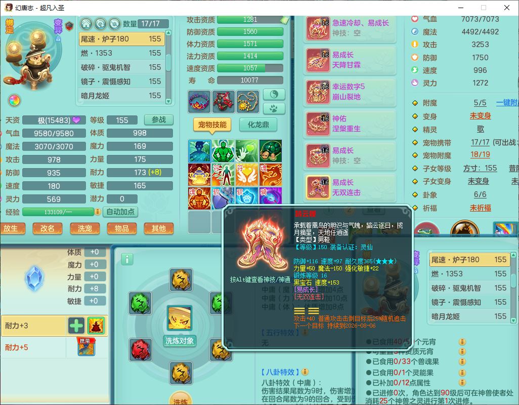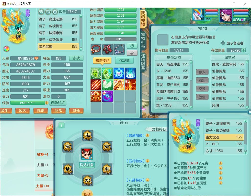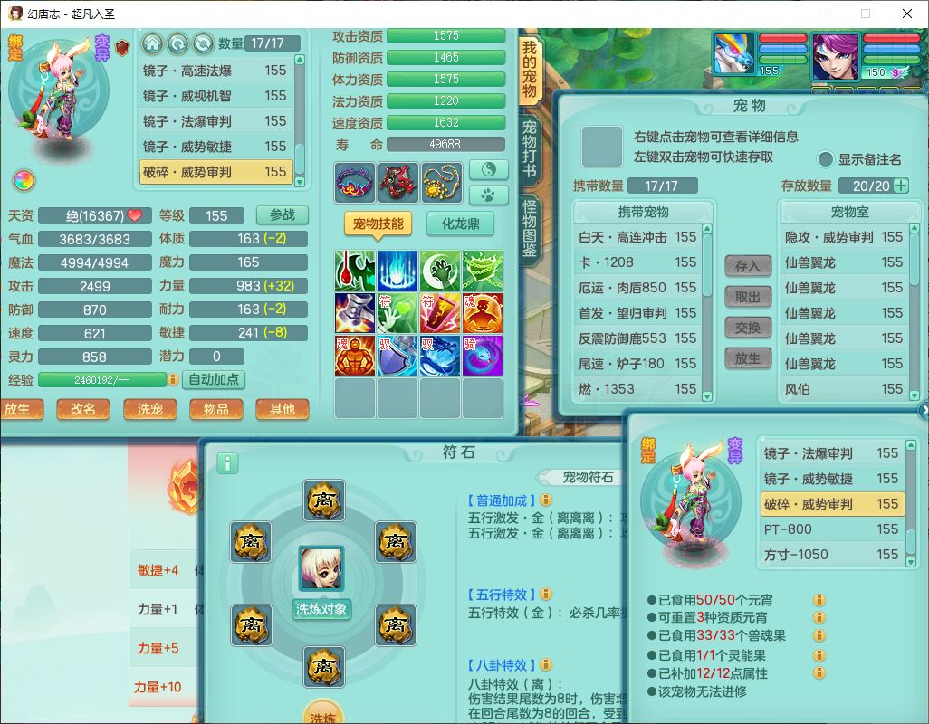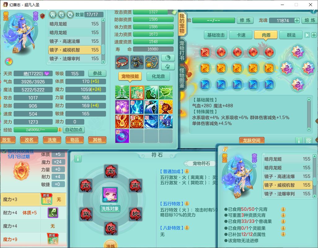 62443超凡入圣159男万兽【潜龙在渊】精灵歌,4位靓号,7龙(1换)2内5镜花3龙姬1望归1金炉,8觉醒3宠皮(1幻灵果)13六字3五字7四字26只满果子,17格子,11红装备,急速冷却Y帽子,Y四海武器,幸运崩山衣服,神佑慈航项链,Y破血鞋子,一套法系装备,法爆武器,Y明镜衣服,五雷帽子,272Y项链,法缭鞋子,鼎5.5+70+280,145天月卡,房屋159,永久外观、精灵皮肤。13个内丹碎片,6坐骑(2双人飞行)