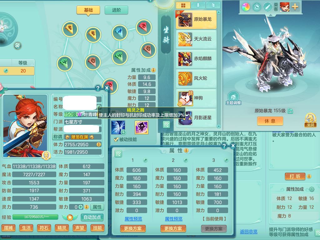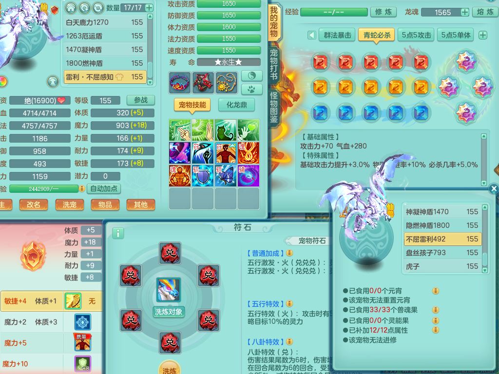 24348花好月圆159男方寸【潜龙号+暴龙泰坦+神驹心想事成+火焰之力、西瓜冰】精灵舞,4字靓号,7龙(换)5内丹神(2蛇3马)6破境7皮,3特殊(登云/月光/飞花)3镜花1龙姬,17格子30只满果子21觉醒17个纯6字,全身单加愤怒6特,物理8红,单加狂暴破血武器,破甲鞋,2套鼎5.5+70+280,165天月卡,庭院149房屋162,永久外观精灵皮肤,72内丹碎片,宠排在榜,5坐骑(3只双人)
