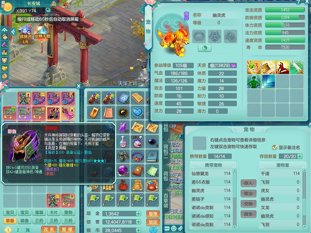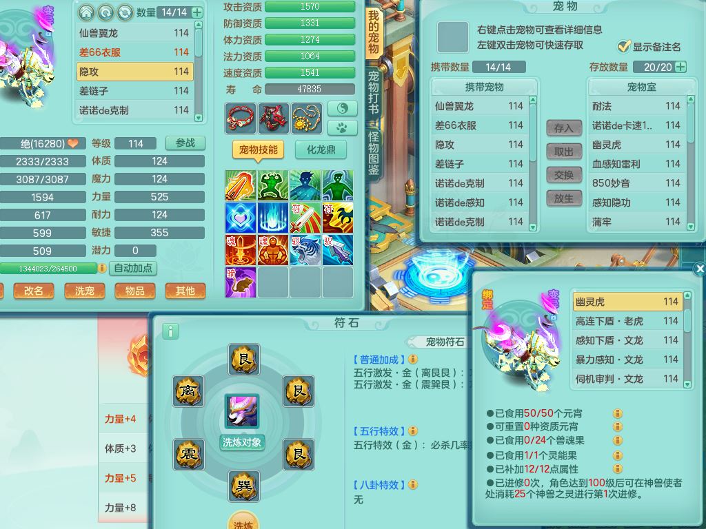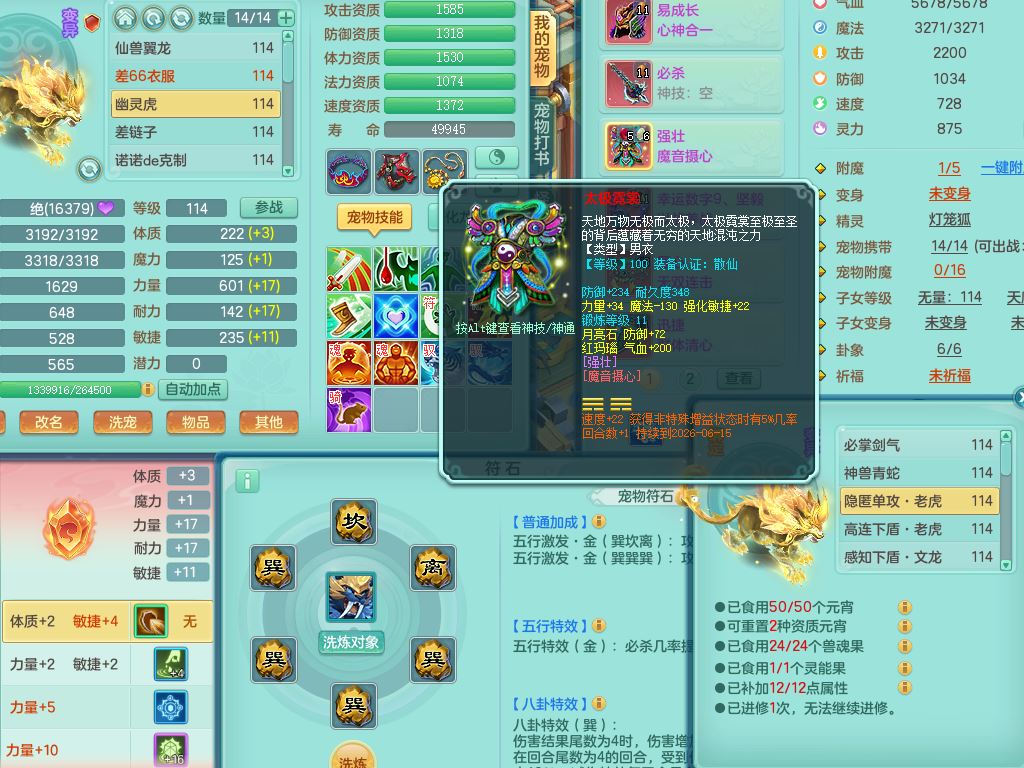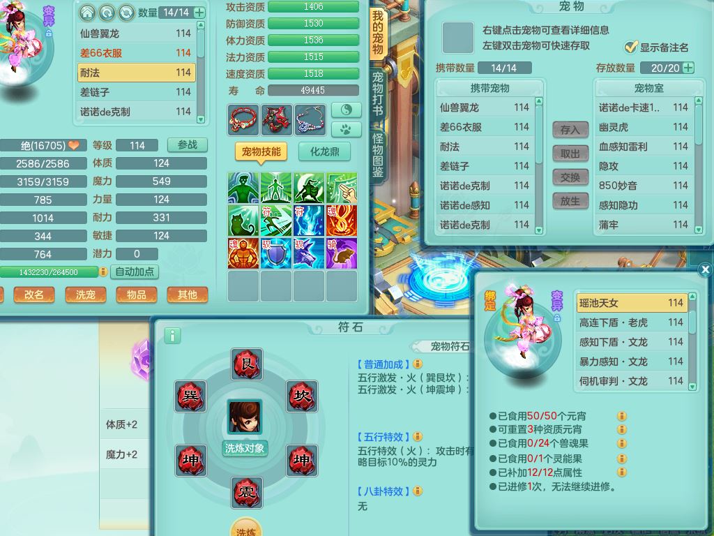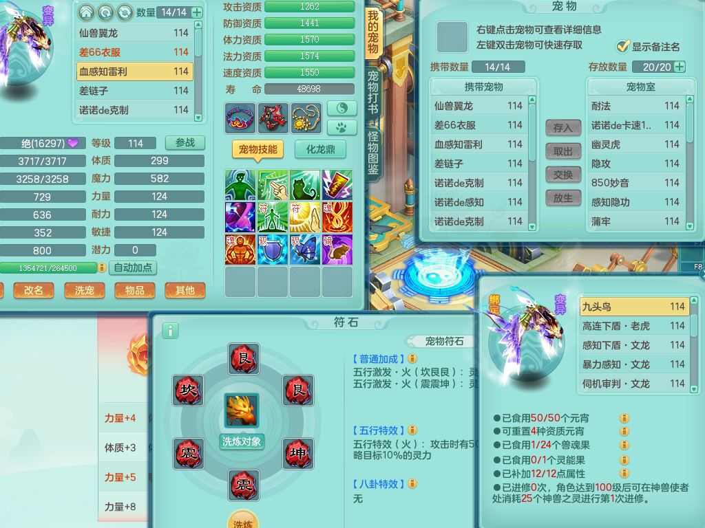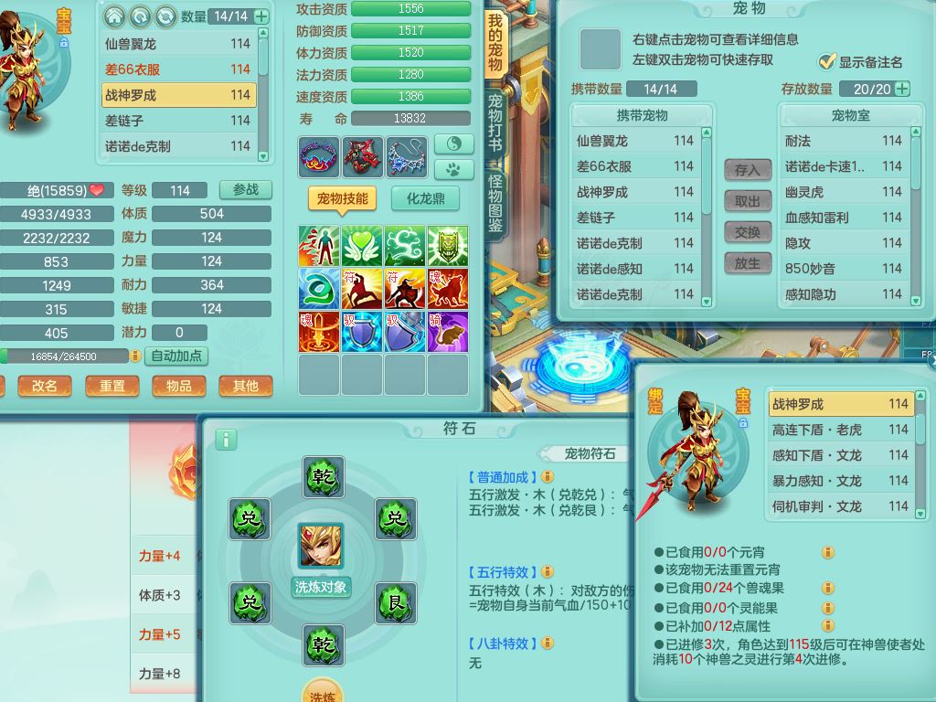 24344风驰电掣109男天宫【潜龙过半】准精灵怒,1龙(换,破境)1内(青蛇)1飞羽1炉子4宠皮,9觉醒3六字1五字11四字16只满果子,12红装备,Y心神帽子,必杀武器,强壮魔音衣服,幸运9坚毅以战项链,匠心破血腰带,迅捷玉清鞋子,鼎2.5+42+168,2套符石,60天月卡,庭院155,永久头饰、背饰、精灵皮肤,38个内丹碎片,2双人坐骑(1飞行)