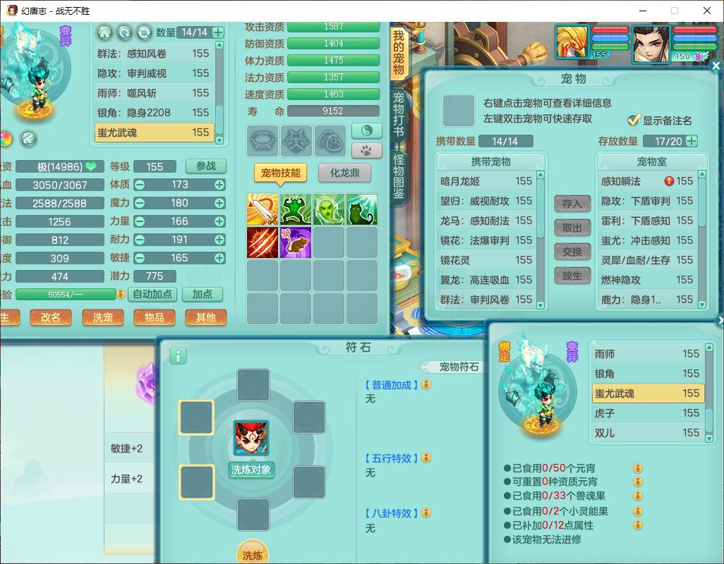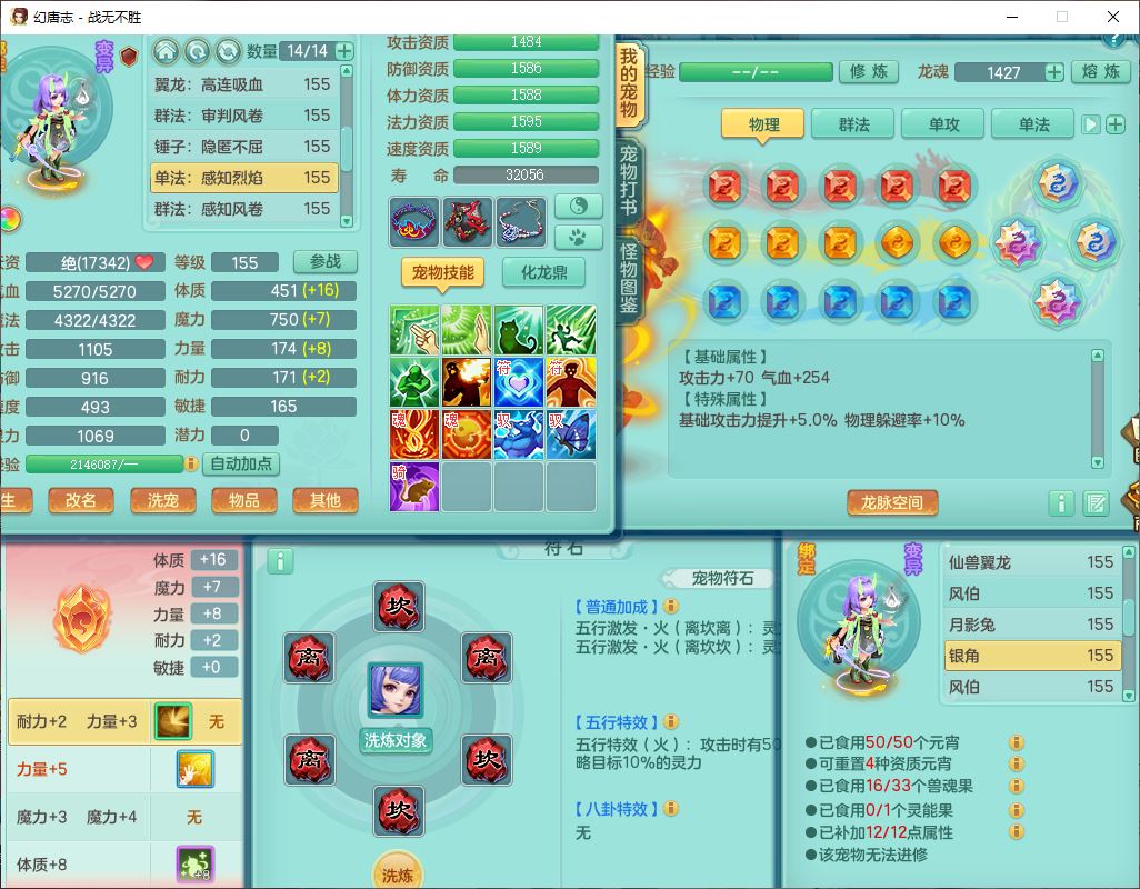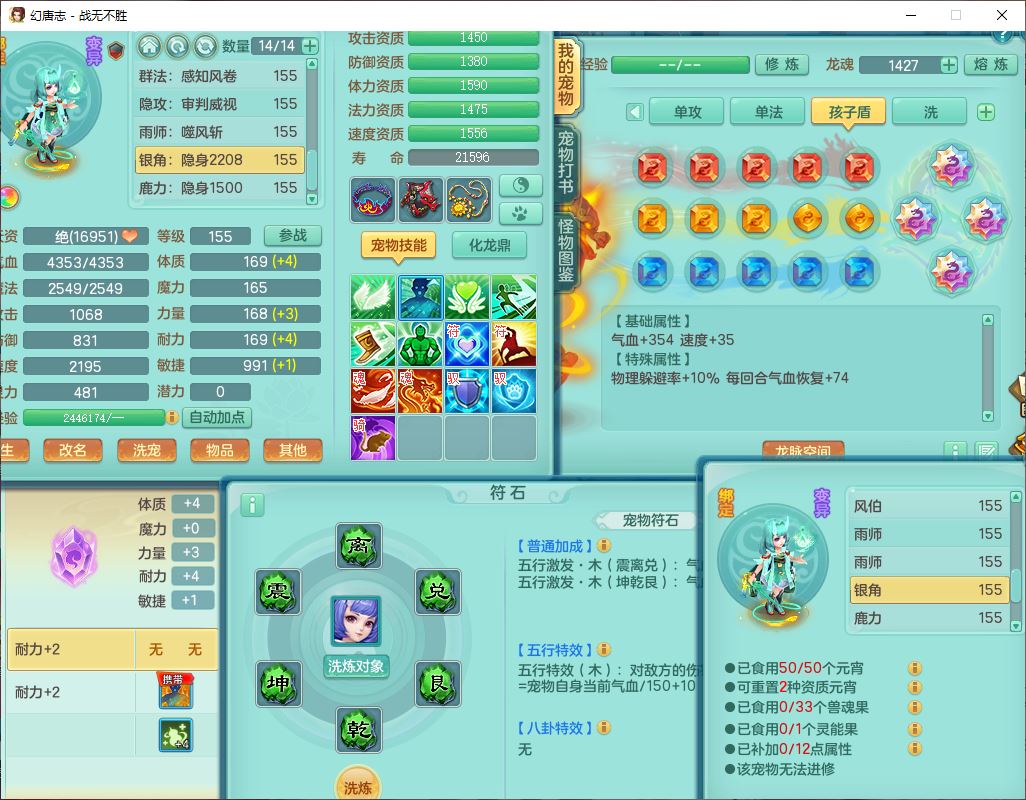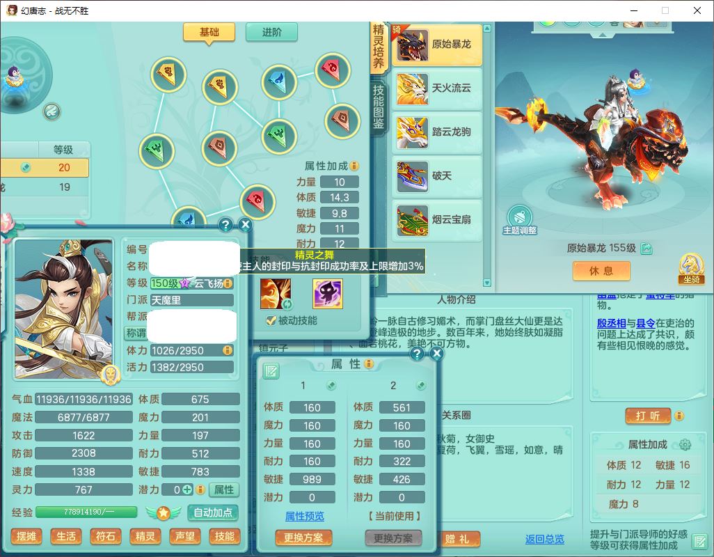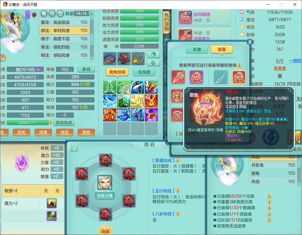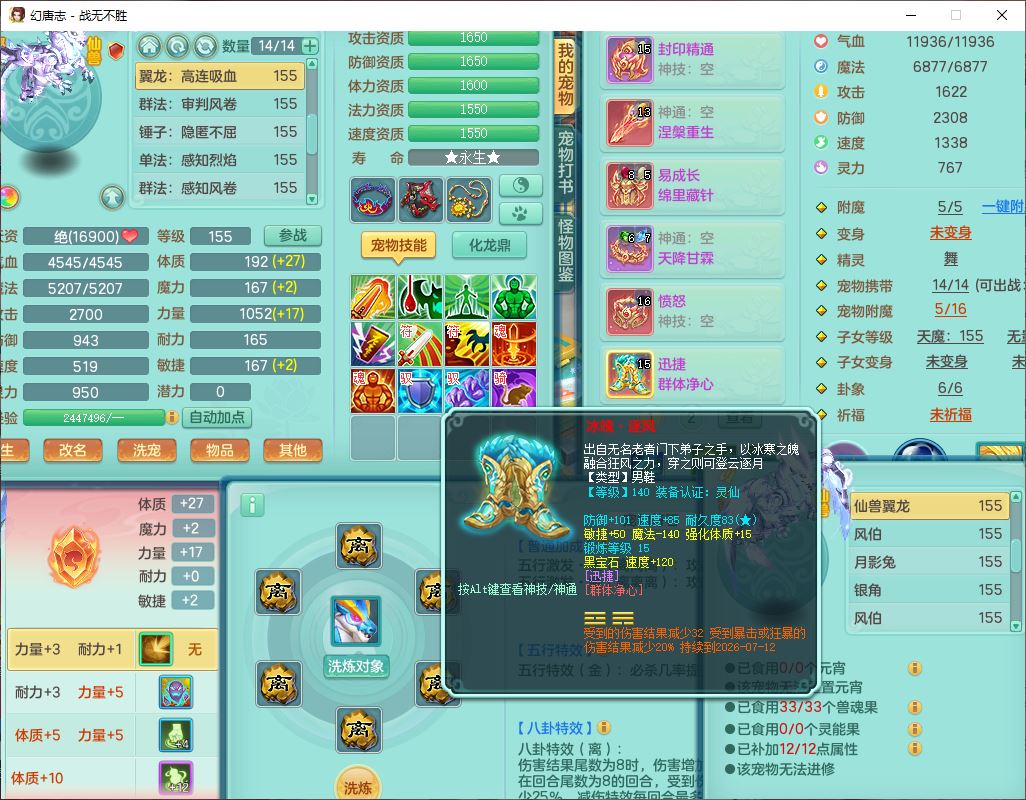 24338战无不胜159男天魔【暴龙逍客+西瓜冰】精灵舞,2龙(1换、无内)1望归1内丹龙马1龙姬2镜花2特殊(焚心、噬风),2觉醒3宠皮1六字1五字3四字,8红装备,封印精通帽子,Y笑里衣服,迅捷晶清鞋子,Y罗汉帽子,鼎5.0+70,永久外观、精灵皮肤,3双人坐骑