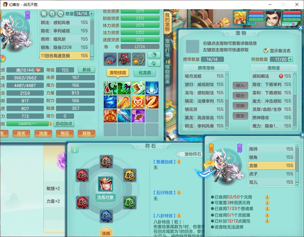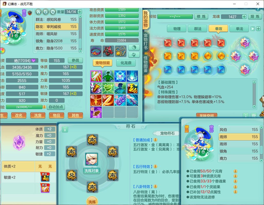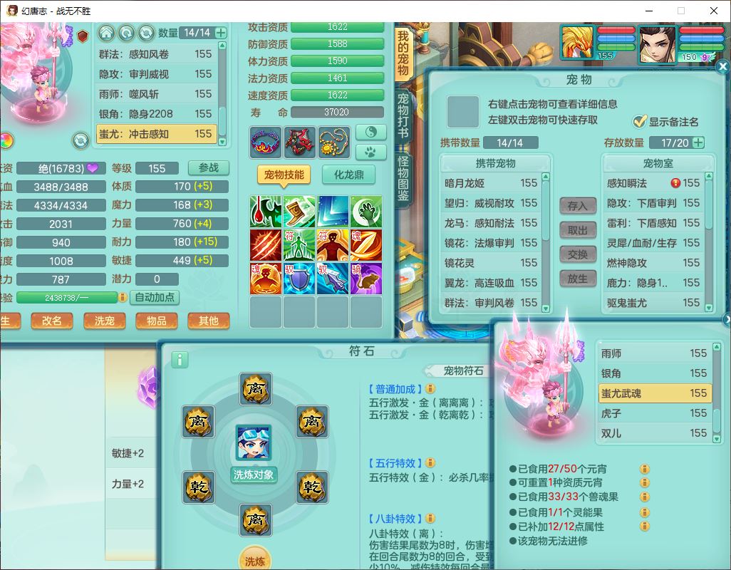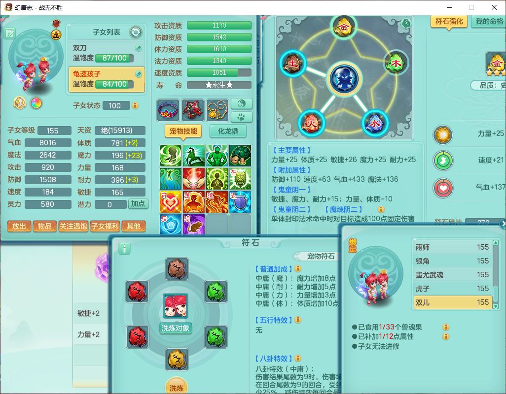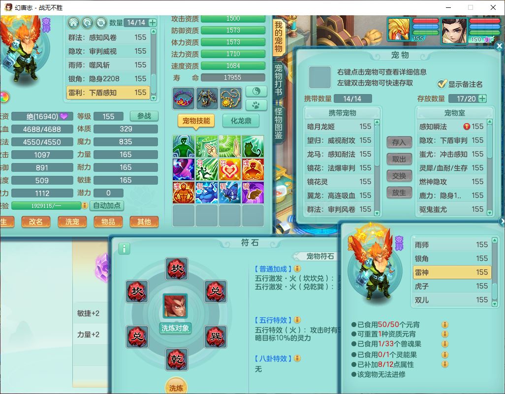 24338战无不胜159男天魔【暴龙逍客+西瓜冰】精灵舞,2龙(1换、无内)1望归1内丹龙马1龙姬2镜花2特殊(焚心、噬风),2觉醒3宠皮1六字1五字3四字,8红装备,封印精通帽子,Y笑里衣服,迅捷晶清鞋子,Y罗汉帽子,鼎5.0+70,永久外观、精灵皮肤,3双人坐骑
