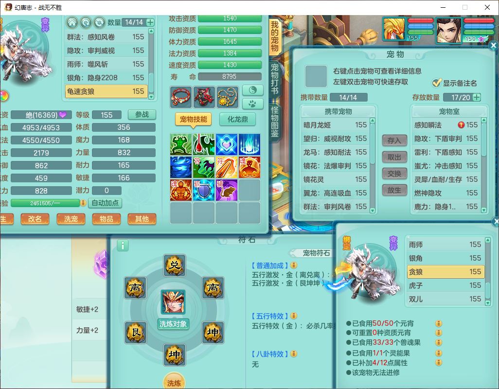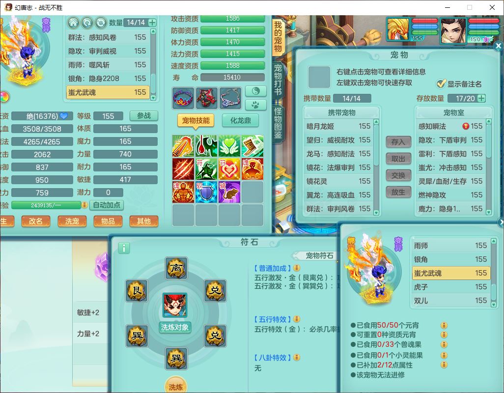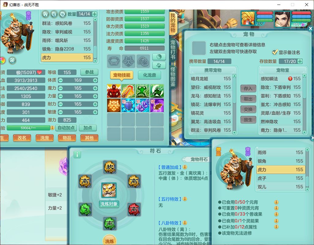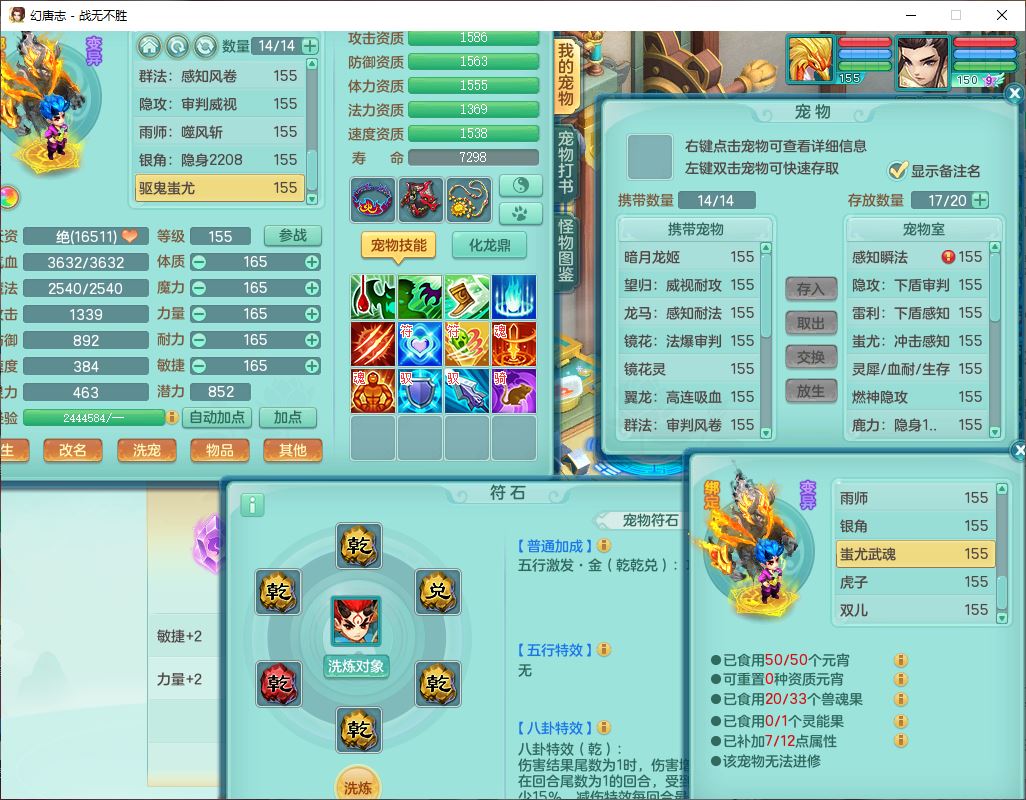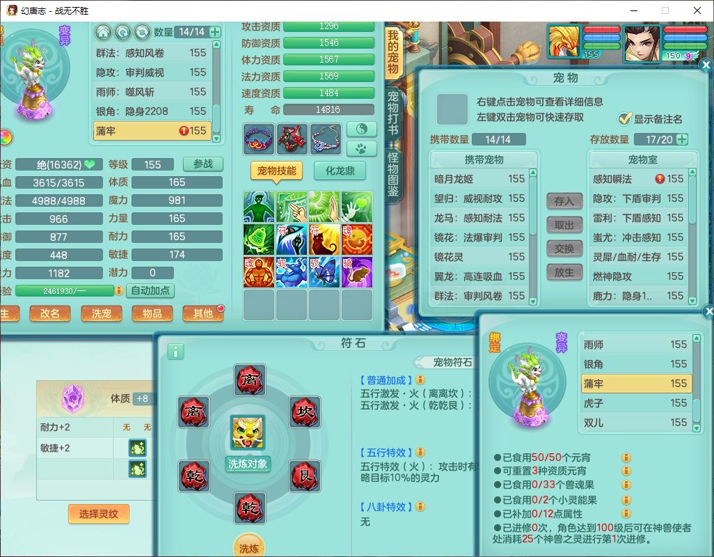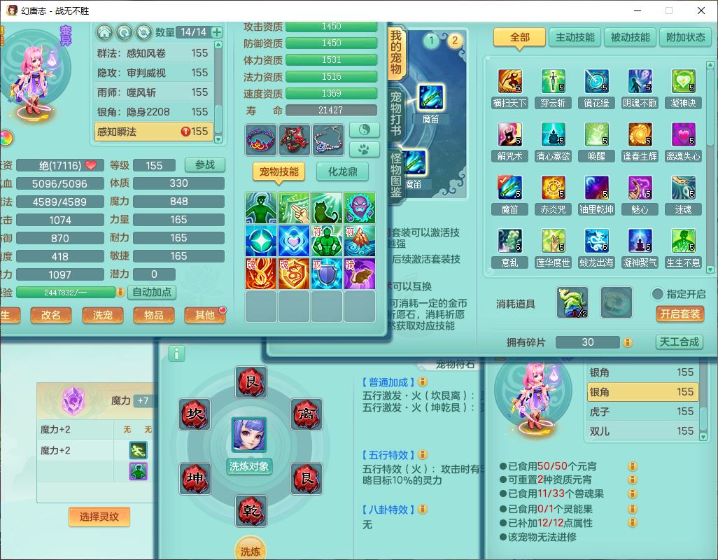 24338战无不胜159男天魔【暴龙逍客+西瓜冰】精灵舞,2龙(1换、无内)1望归1内丹龙马1龙姬2镜花2特殊(焚心、噬风),2觉醒3宠皮1六字1五字3四字,8红装备,封印精通帽子,Y笑里衣服,迅捷晶清鞋子,Y罗汉帽子,鼎5.0+70,永久外观、精灵皮肤,3双人坐骑