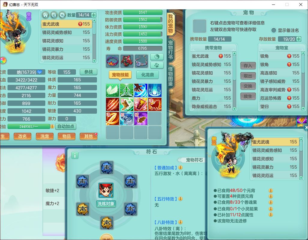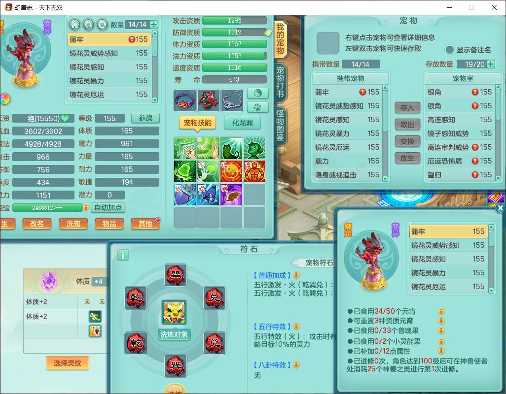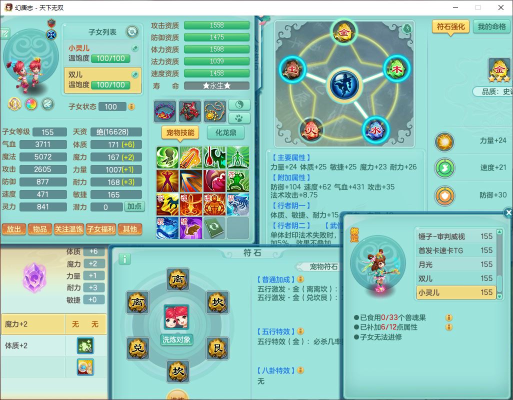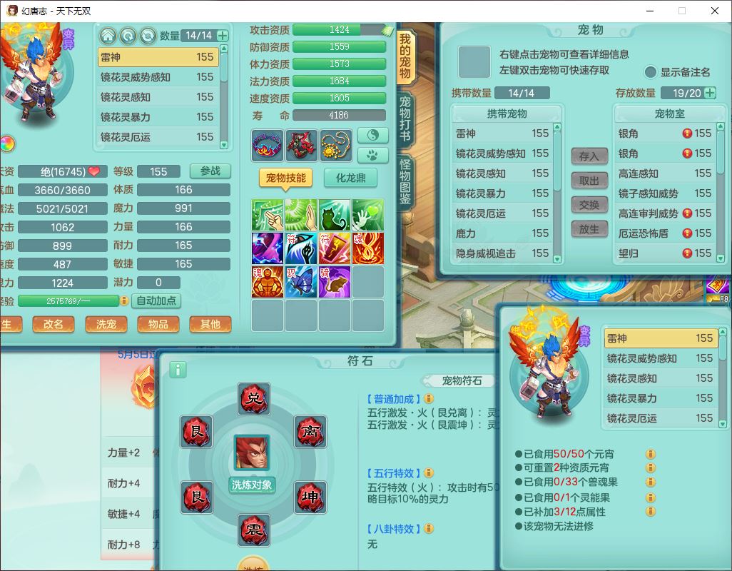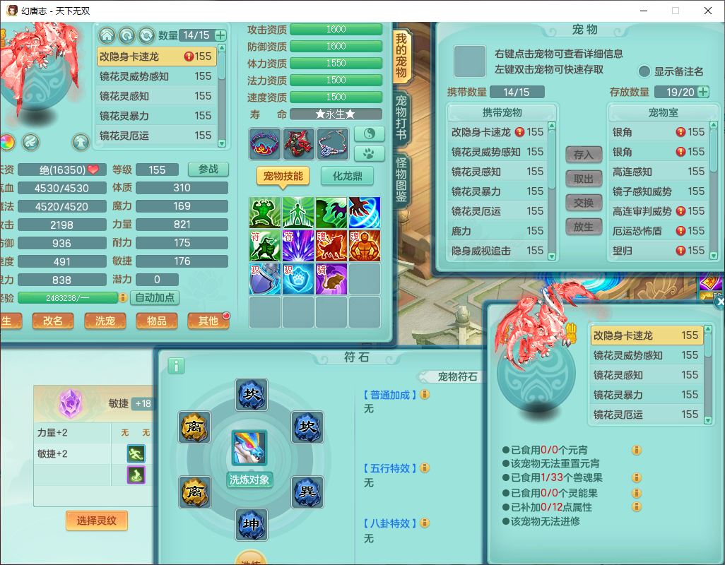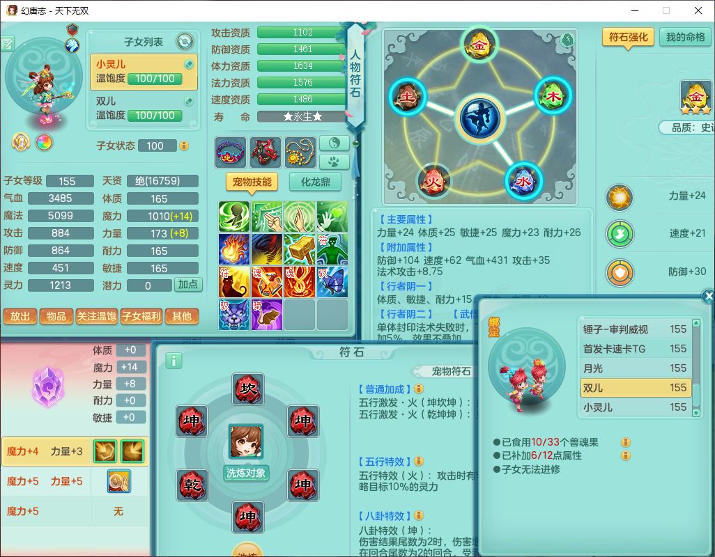 tx10460天下无双159男方寸精灵舞,1龙(无内)1内丹神(龙马)1龙马(无内)5镜花1望归1龙姬1建木2特殊(禁锢,兽决登云),5觉醒5六字1五字4四字综合7只满果子,11红星辰之拥装备,封印精通慈航帽子,封锁魔音武器,Y激励衣服,愤怒四海腰带,迅捷群体守备鞋子,鼎5.5+70,167天月卡,54内丹碎片,半页还童丹,172W神武币,1双人飞行坐骑