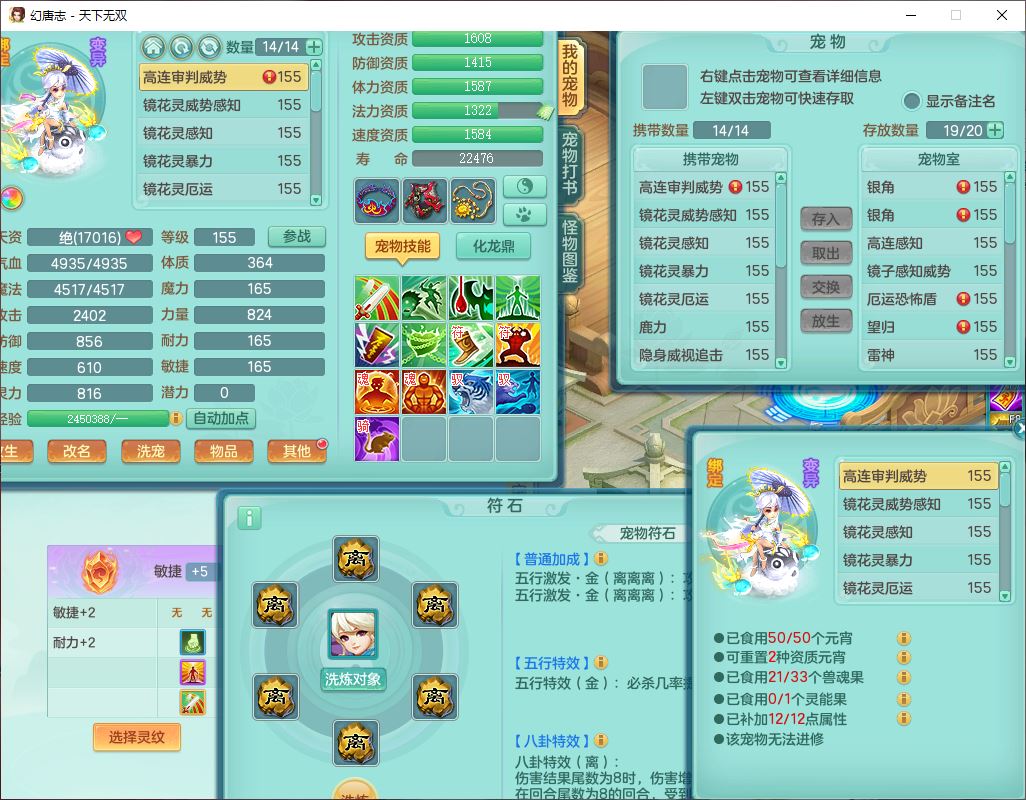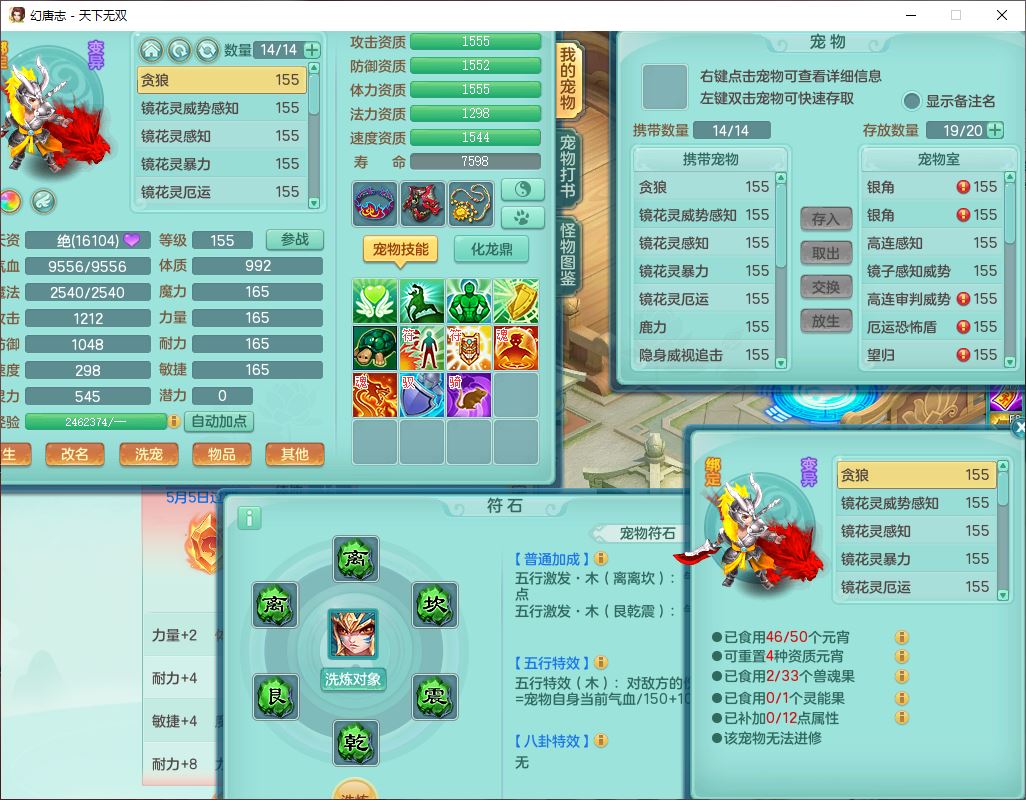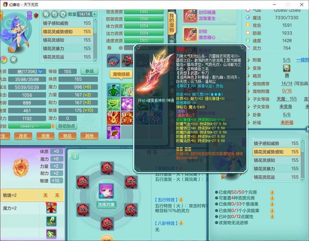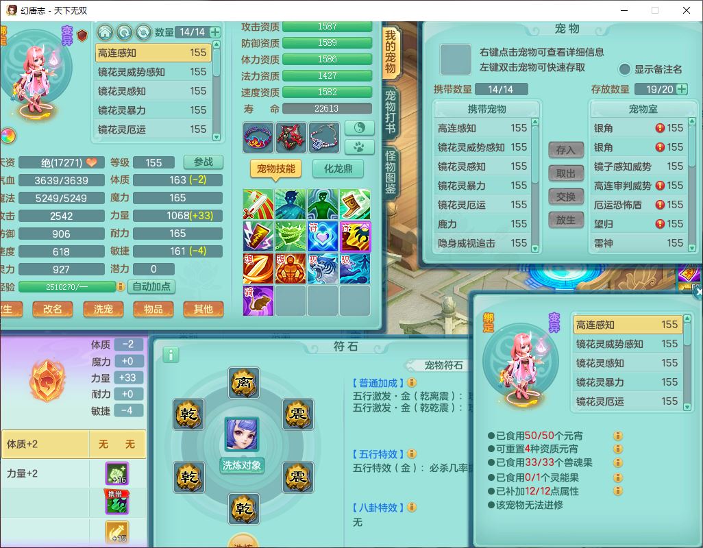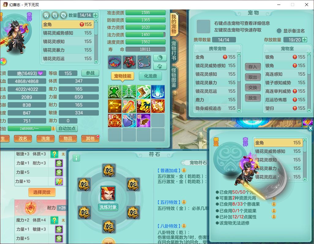 tx10460天下无双159男方寸精灵舞,1龙(无内)1内丹神(龙马)1龙马(无内)5镜花1望归1龙姬1建木2特殊(禁锢,兽决登云),5觉醒5六字1五字4四字综合7只满果子,11红星辰之拥装备,封印精通慈航帽子,封锁魔音武器,Y激励衣服,愤怒四海腰带,迅捷群体守备鞋子,鼎5.5+70,167天月卡,54内丹碎片,半页还童丹,172W神武币,1双人飞行坐骑