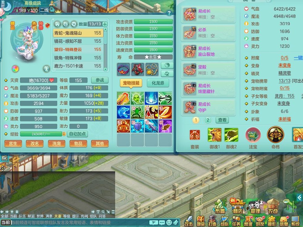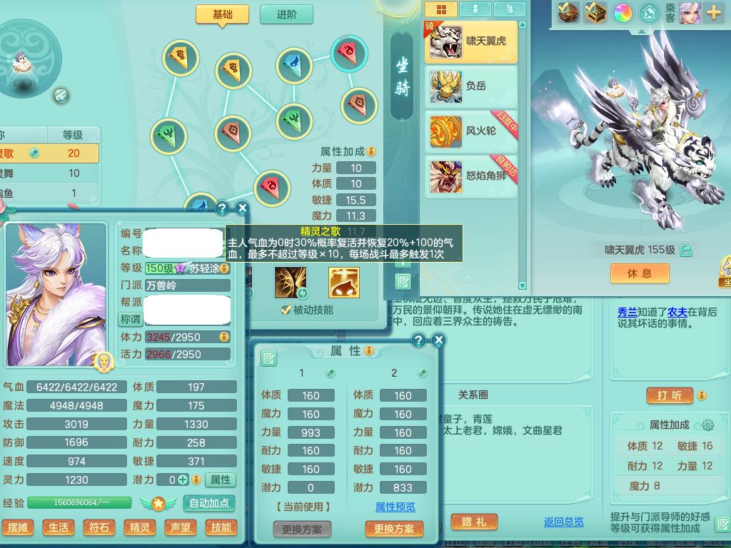 tx10462天下无双159男万兽精灵歌,满级共鸣,1内丹青蛇1龙马无内,1特殊(冲锋)3只满果子2觉醒,9红,916单加必杀武器,Y崩山衣服,Y笑里腰带,坚毅项链,Y守护鞋,仓库回春武器,封锁武器,鼎5.0,法爆7.5,43天月卡,庭院150,永久外观精灵皮肤,25仙兽灵22内丹碎片,飞行双人坐骑