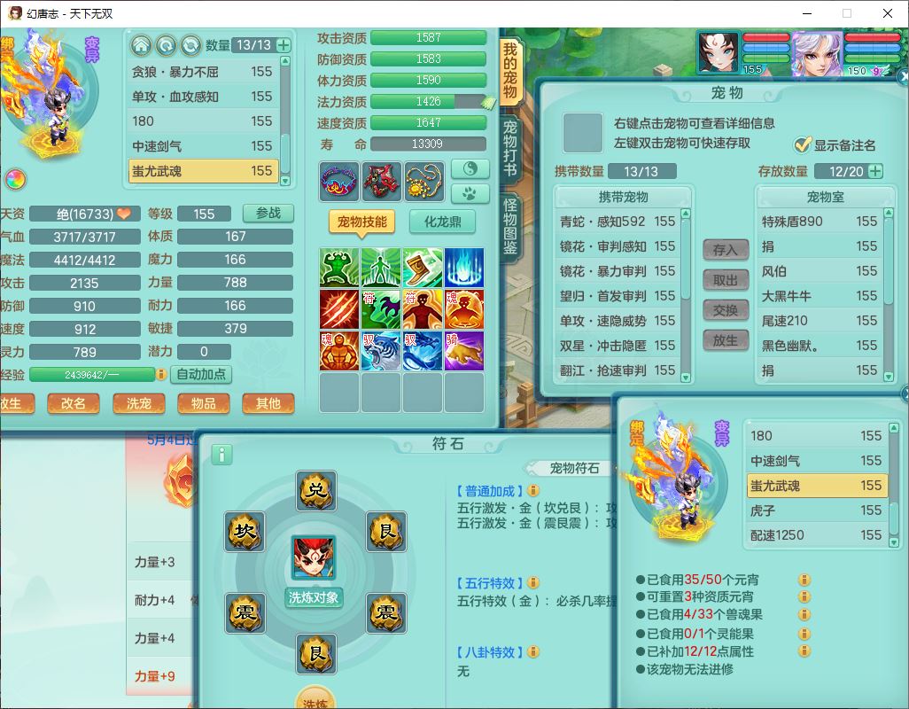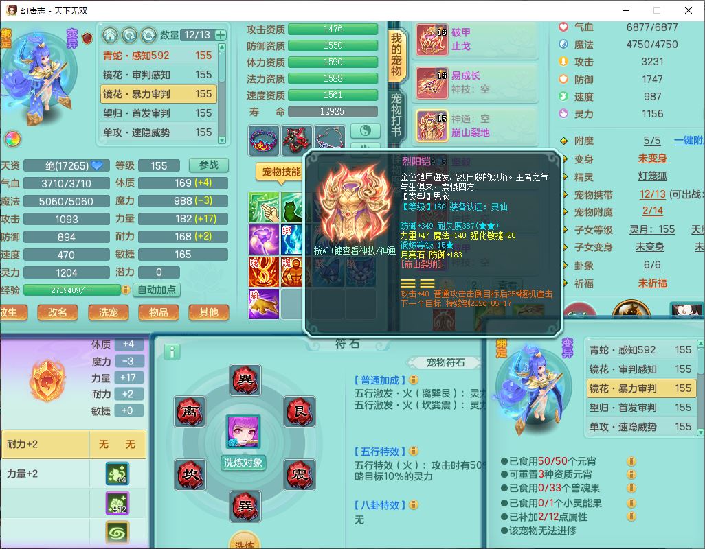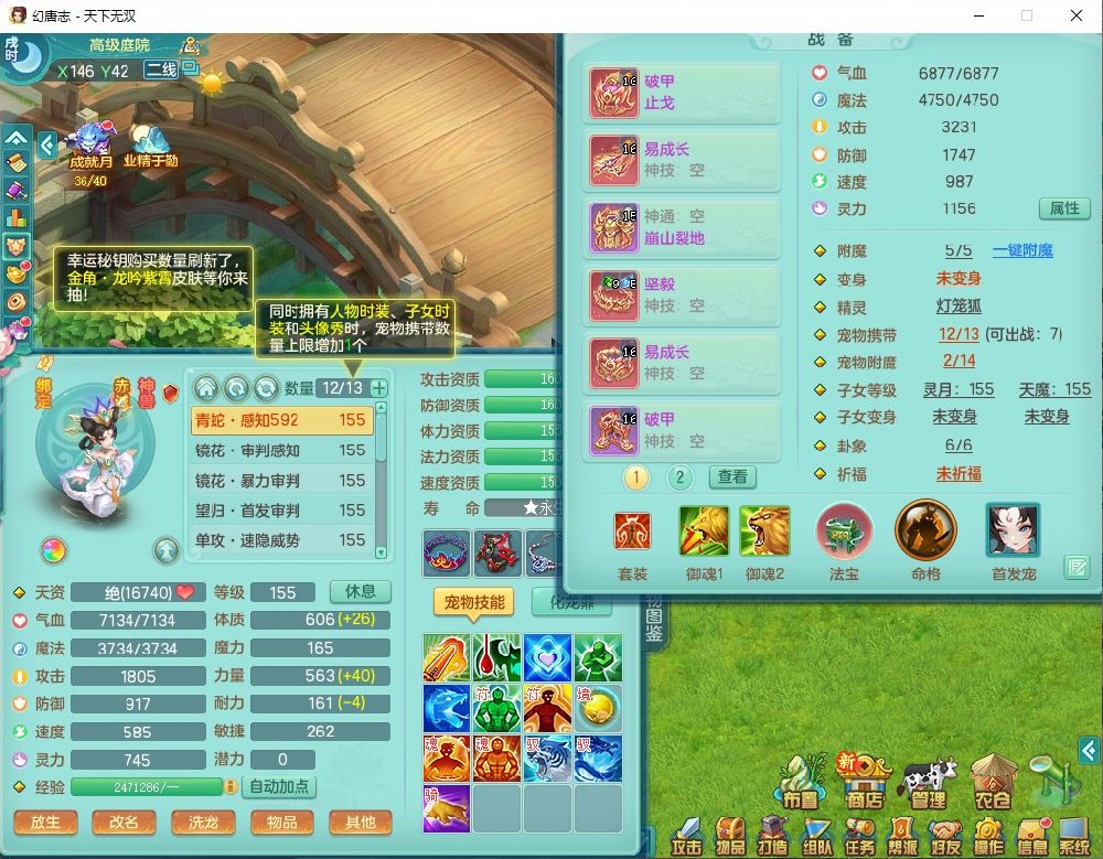 tx10471天下无双159男万兽【潜龙号+西瓜冰】精灵悟,1内丹青蛇2镜花1望归4特殊(双星、翻江、墨守,兽决焚心)1龙姬1金炉,9觉醒8六字2四字综合6只满果子,7红双破甲装备,破甲止戈帽子,928单加Y武器,崩山衣服,坚毅项链,破甲鞋子,鼎5.5+70+280,68天月卡,庭院157房屋166,永久背饰、精灵皮肤,52个仙兽灵,20个内丹碎片,1双人飞行坐骑,qq不给可改密