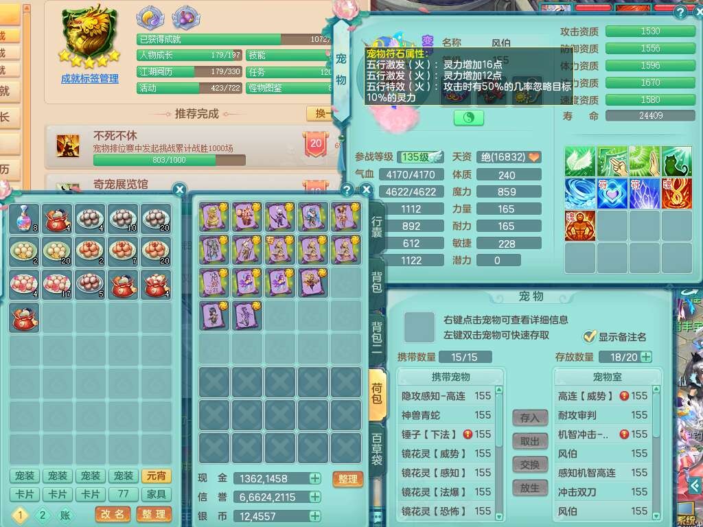 K22407阳春白雪159男无量,精灵舞,1龙2神兽(1蛇),5觉醒,2宠皮,3特殊(雷厉,登云,荒古),4只六技能镜花灵,1只六技能龙姬,三红愤怒易成长野兽单加腰带,易成长晶清单加57鞋子,六特,有三红躲避奇珍笑里衣服,物理有破甲单加56头,911狂暴单加武器,崩山衣服,神佑链子,易成长单加55鞋子,迅捷破血鞋子,4.5基础鼎,差309积分换14个永久格子,2个纯六字,3个五字,10只满果子,经验修炼在榜,双人坐骑。