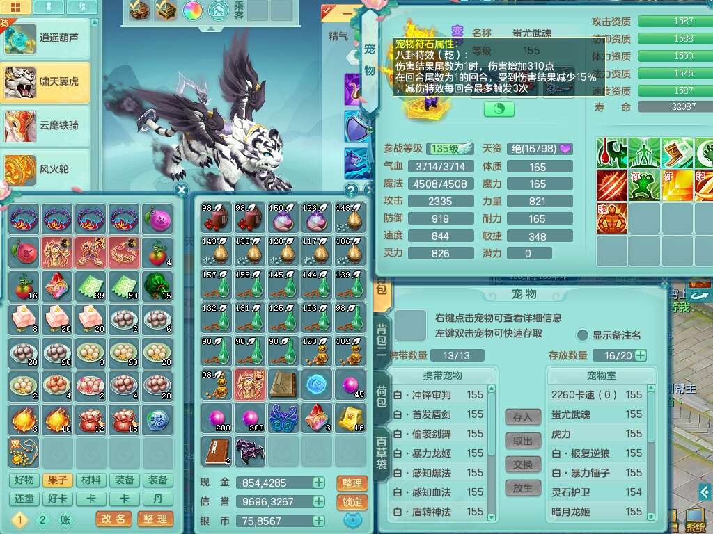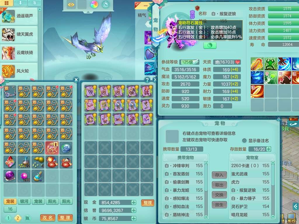 a22406扬名立万159男万兽,精灵舞,1内胆神青蛇,3只觉醒,3特殊(号角,青霜,烈焰),1只六技能龙姬,2只六技能镜花灵,934狂暴武器,崩山衣服,易成长破血单加腰带,易成长单加56头,易成长单加57鞋子,可玩法系封系,全部满宝石,封系封印四海头,封印慈航头,愤怒慈航腰带,回春群体止戈武器,封锁武器,5.5基础鼎+70攻+280血,2个纯六字,17只满果子,宠排在榜,3个双人坐骑,带133天月卡。