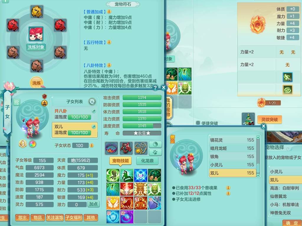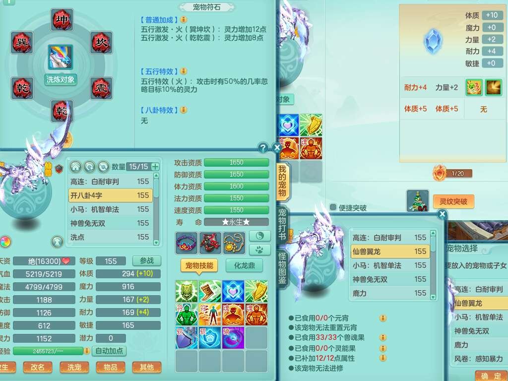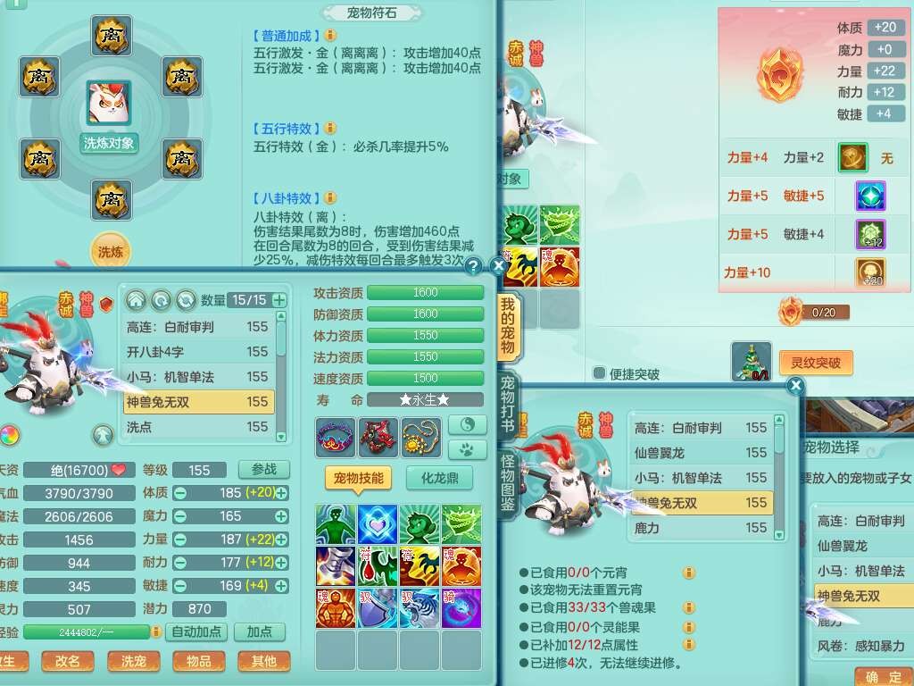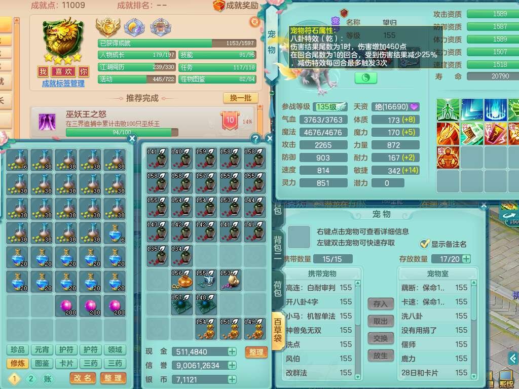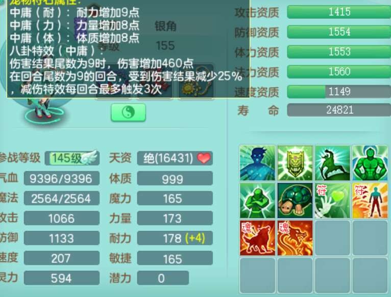 J22401今年勇159男龙宫,精灵歌+舞,2龙(1龙无内),准3内胆神(仓库47神兽内胆碎片),【8只觉醒,已潜龙】,4位靓号不含4,2宠皮+1幻灵果,2特殊(藕断,怒破),3只六技能镜花灵,1只六技能龙姬,五雷单加头,法爆单加57衣服,18段匠心易成长衣服,275易成长项链,四海单加52鞋子,有法缭鞋子,5.5基础鼎+70攻+280血,7个纯六字,1个五字,24只满果子,宠排在榜,4个孩子,4个坐骑,神驹马上发财+暴龙洪荒+西瓜冰武器,带86天月卡。