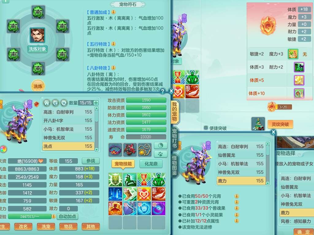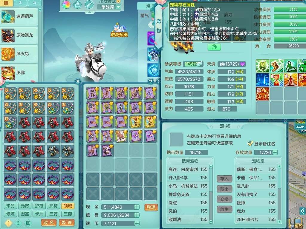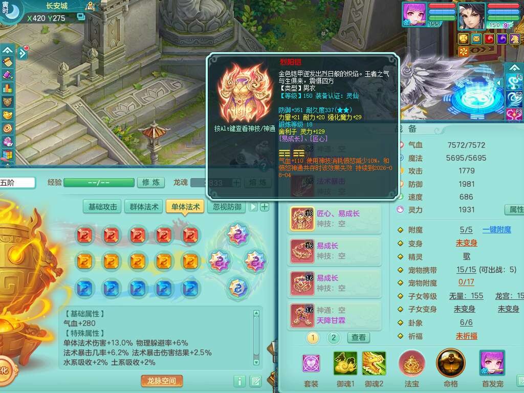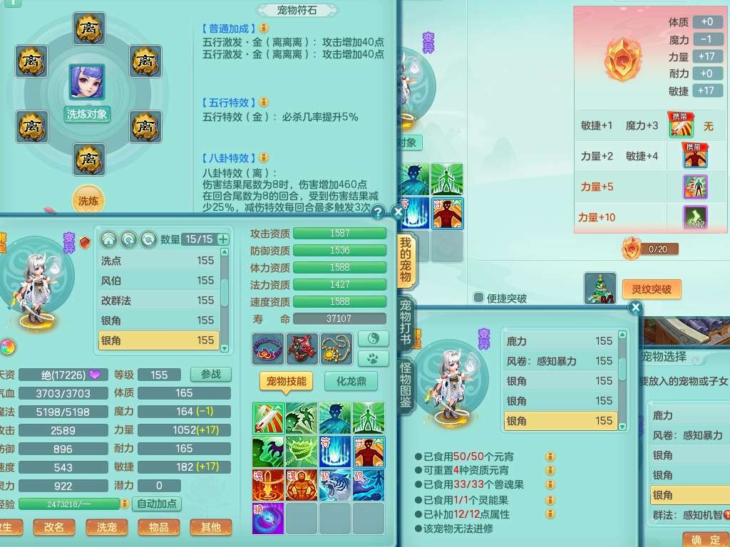 J22401今年勇159男龙宫,精灵歌+舞,2龙(1龙无内),准3内胆神(仓库47神兽内胆碎片),【8只觉醒,已潜龙】,4位靓号不含4,2宠皮+1幻灵果,2特殊(藕断,怒破),3只六技能镜花灵,1只六技能龙姬,五雷单加头,法爆单加57衣服,18段匠心易成长衣服,275易成长项链,四海单加52鞋子,有法缭鞋子,5.5基础鼎+70攻+280血,7个纯六字,1个五字,24只满果子,宠排在榜,4个孩子,4个坐骑,神驹马上发财+暴龙洪荒+西瓜冰武器,带86天月卡。