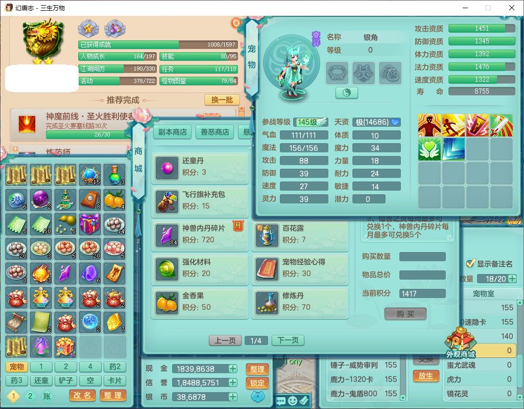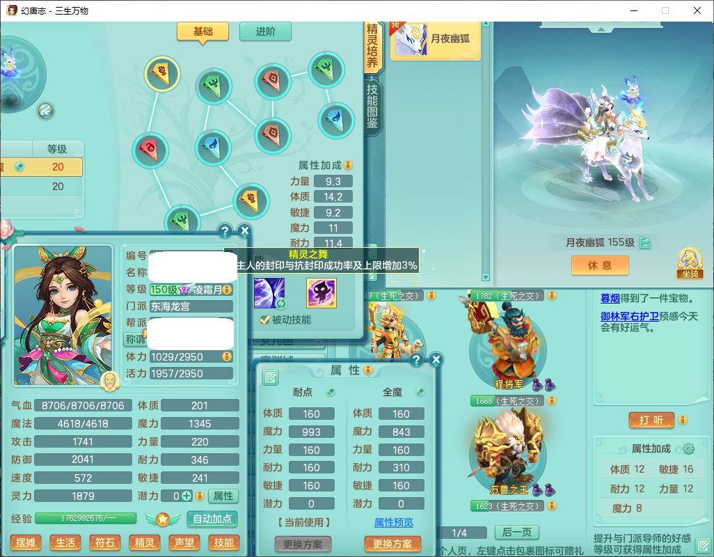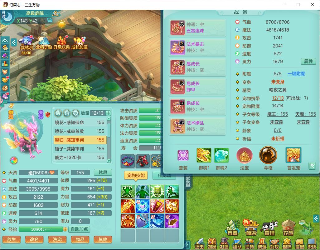 99806三生万物159女龙宫精灵舞,1内1望归3镜花1龙姬1金炉1虎刀客,3觉醒综合13只满果子,7红装备,五雷帽子,法爆武器,Y卸甲项链,法缭鞋子,仓库多装备,可搭星辰之拥物理装,狂暴罗汉武器,破甲激励鞋子,鼎5.5,15个仙兽灵,1月夜幽狐坐骑