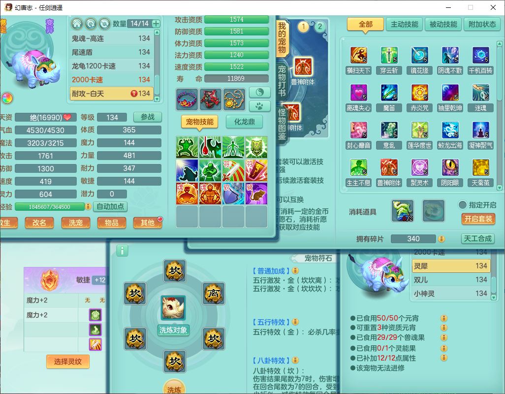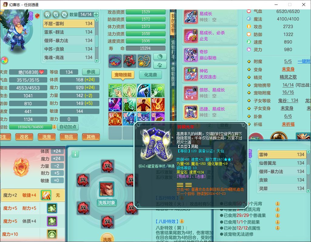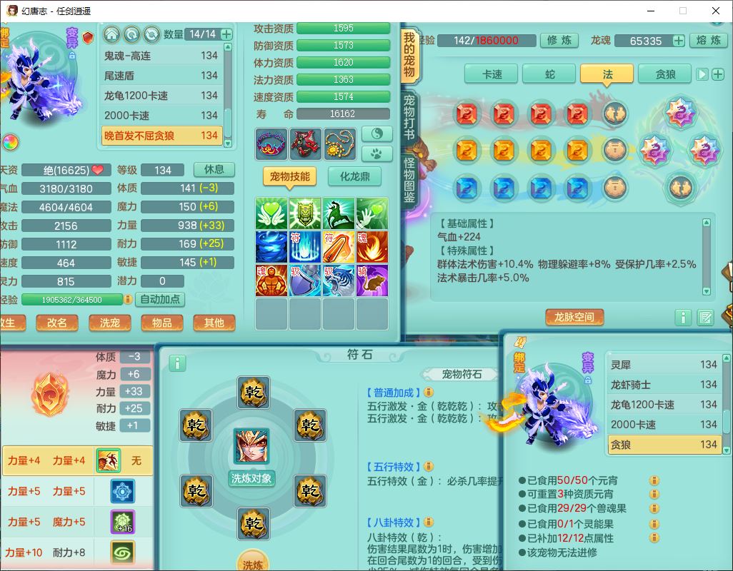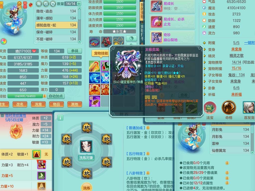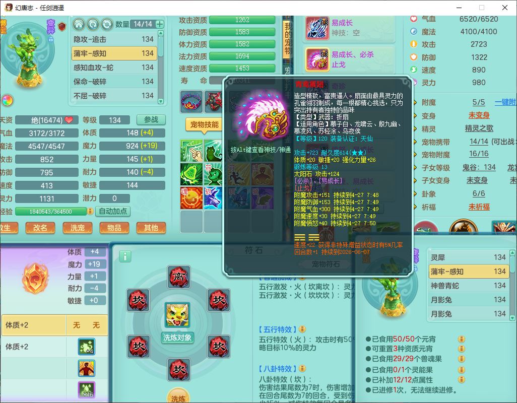 71490WH任剑逍遥129男万兽【潜龙号+火焰之力】精灵歌、舞,1龙(换、破境)1内丹青蛇(破境)3贪狼,15觉醒3宠皮(1幻灵果)10六字5五字12四字26只满果子,12红装备,Y必杀止戈武器,崩山衣服,神佑破血项链,愤怒Y腰带,迅捷Y鞋子,击退玉清武器,Y破魔帽子,鼎4.0+56+224,永久外观、精灵皮肤,100多w神武币,4坐骑(1双人飞行)