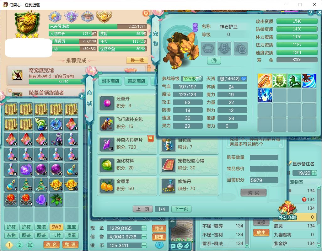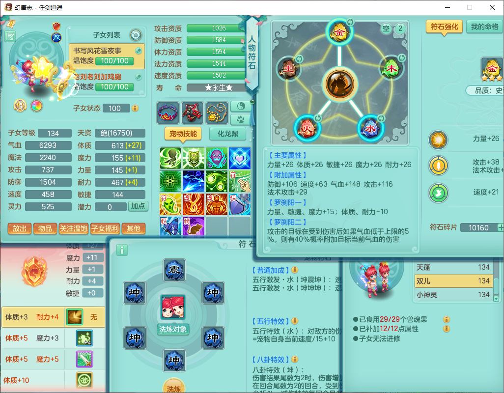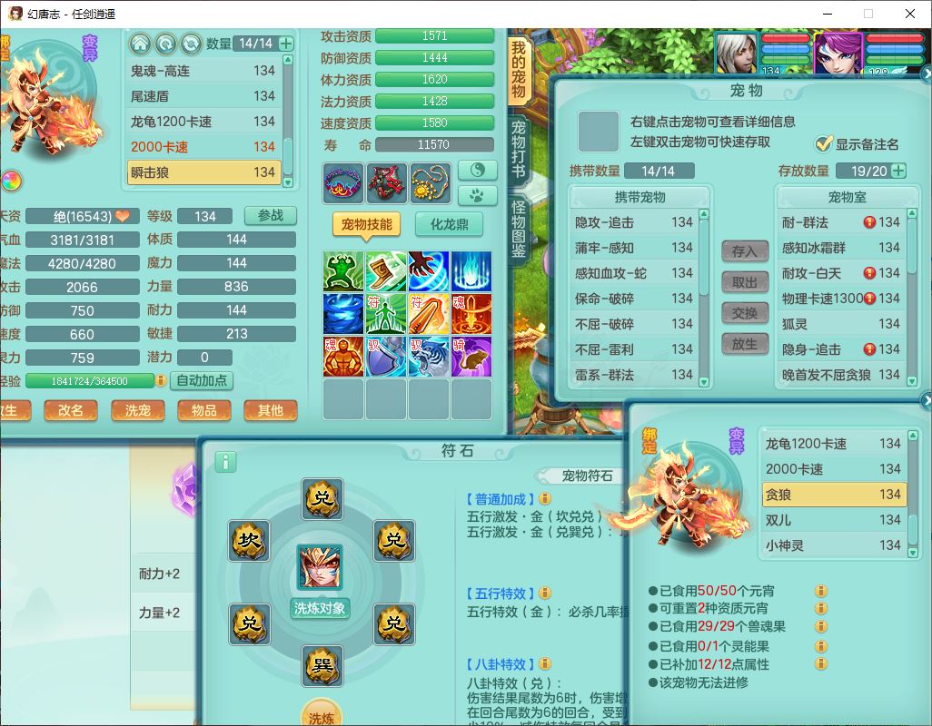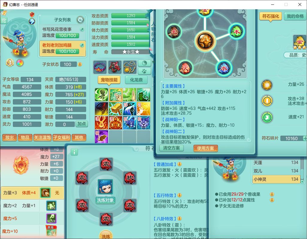 71490WH任剑逍遥129男万兽【潜龙号+火焰之力】精灵歌、舞,1龙(换、破境)1内丹青蛇(破境)3贪狼,15觉醒3宠皮(1幻灵果)10六字5五字12四字26只满果子,12红装备,Y必杀止戈武器,崩山衣服,神佑破血项链,愤怒Y腰带,迅捷Y鞋子,击退玉清武器,Y破魔帽子,鼎4.0+56+224,永久外观、精灵皮肤,100多w神武币,4坐骑(1双人飞行)