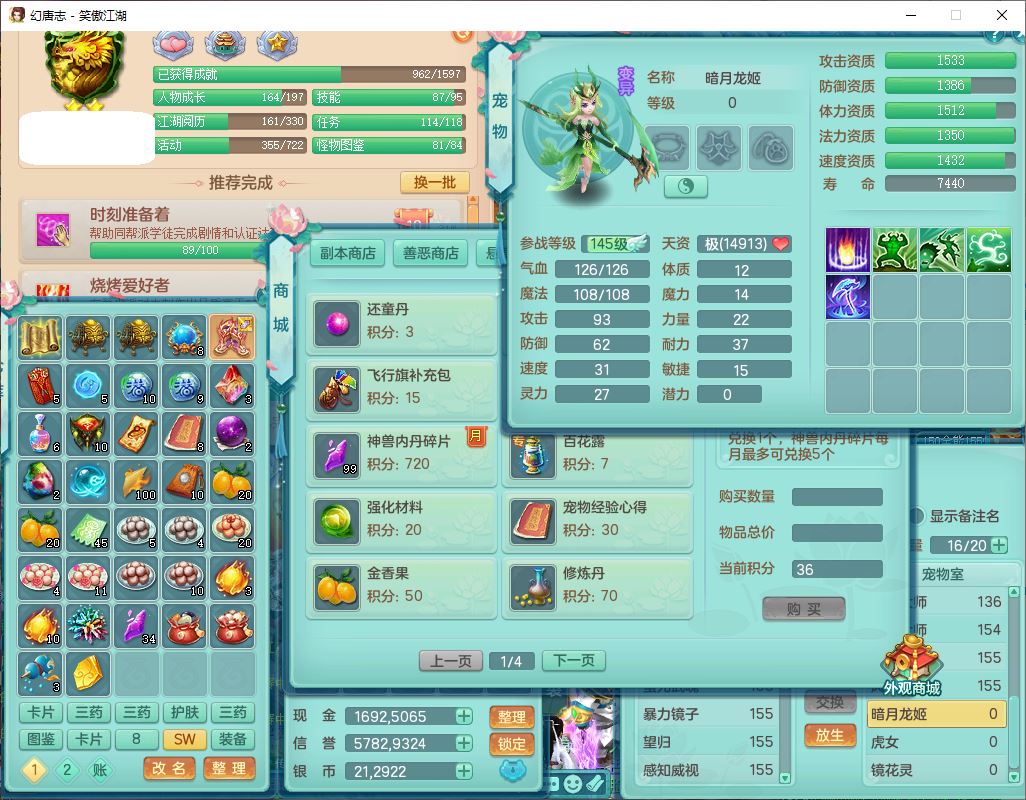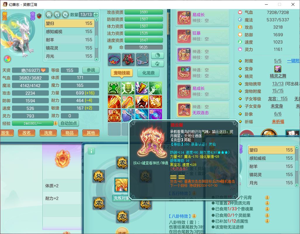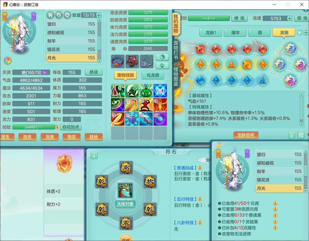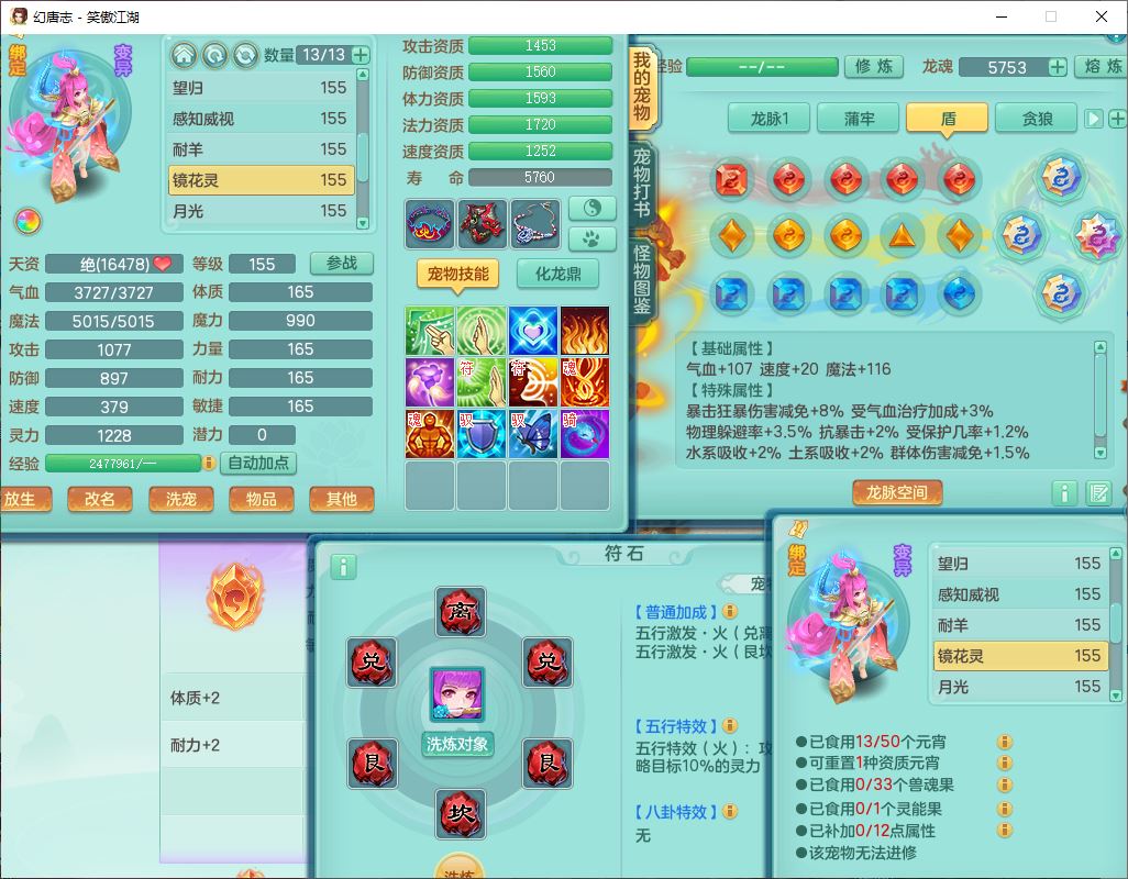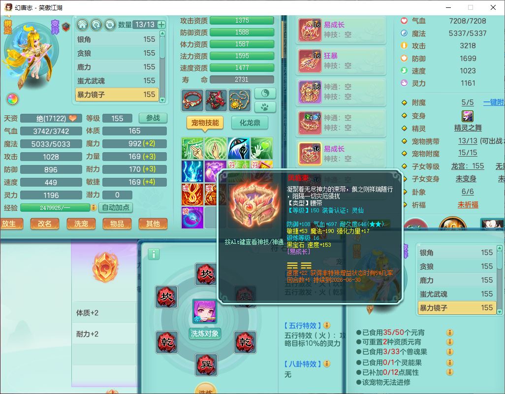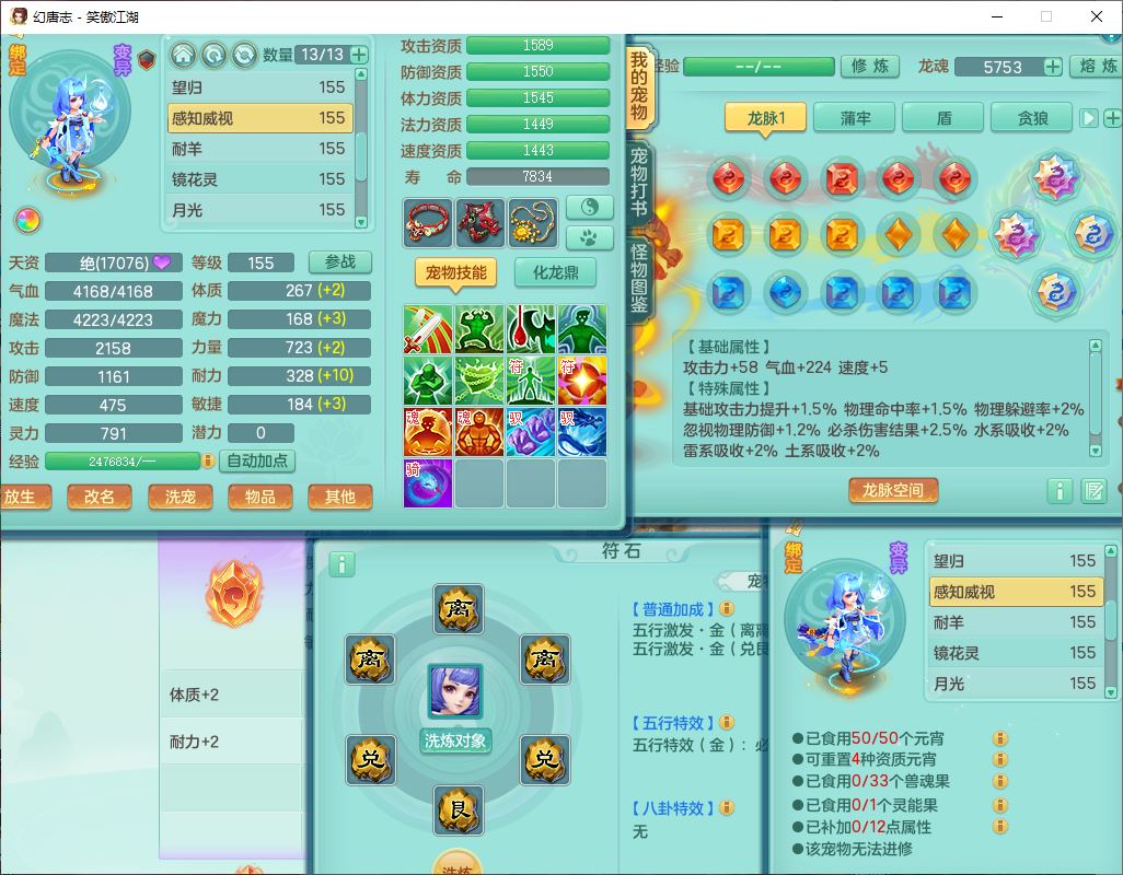 4384笑傲江湖159男万兽精灵歌,1青蛇(无内)1望归2镜花,宝宝种类齐全,装备齐全,狂暴武器,34个内丹碎片,1飞行坐骑,带成品159奶粉精灵舞,装备宝宝齐全