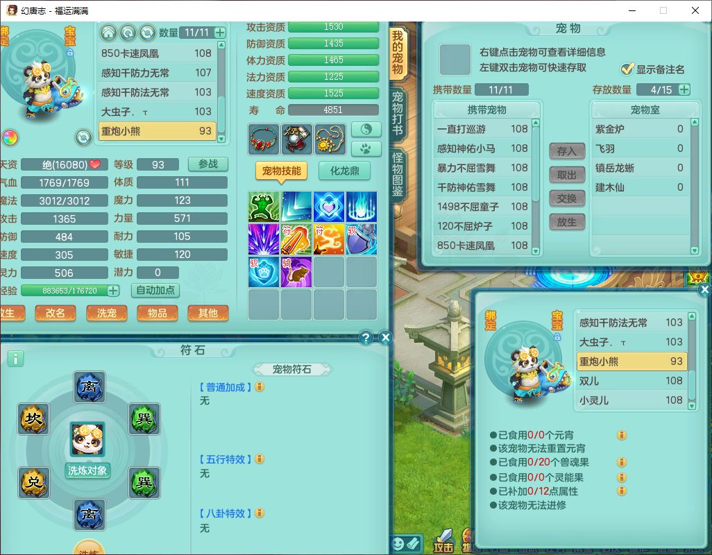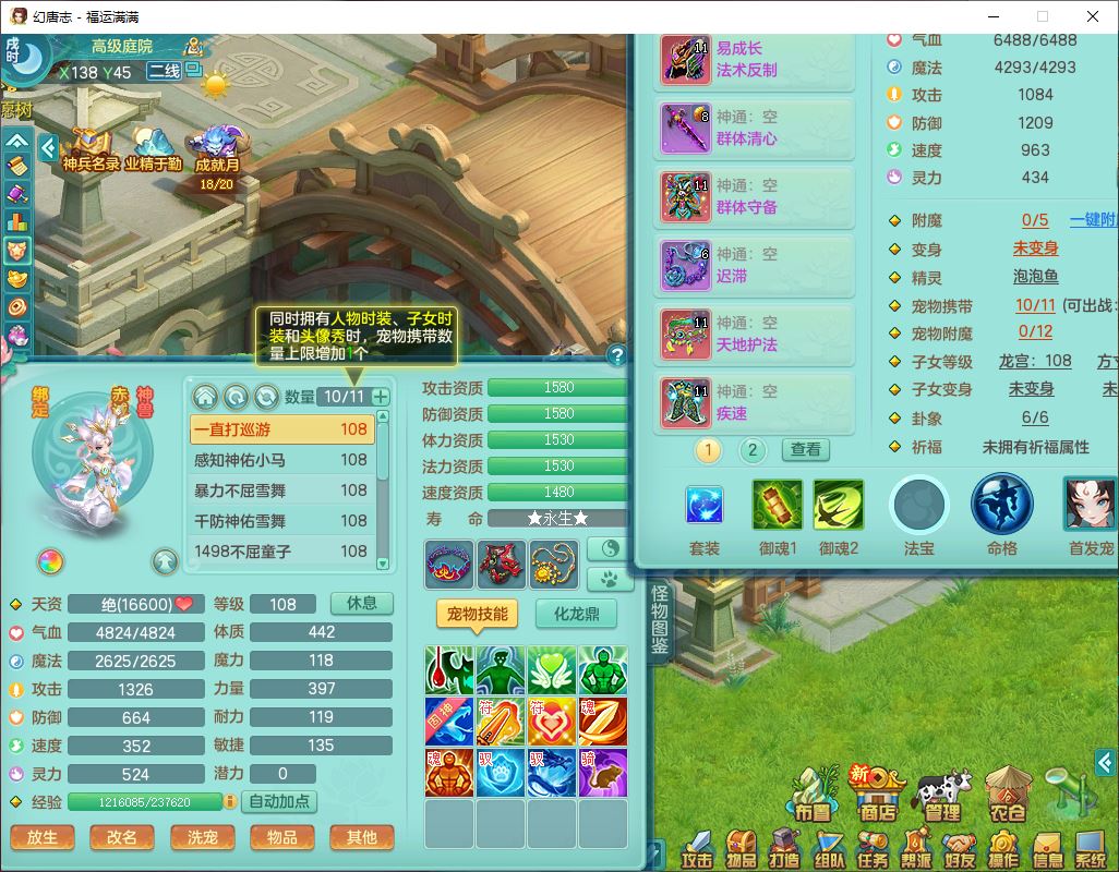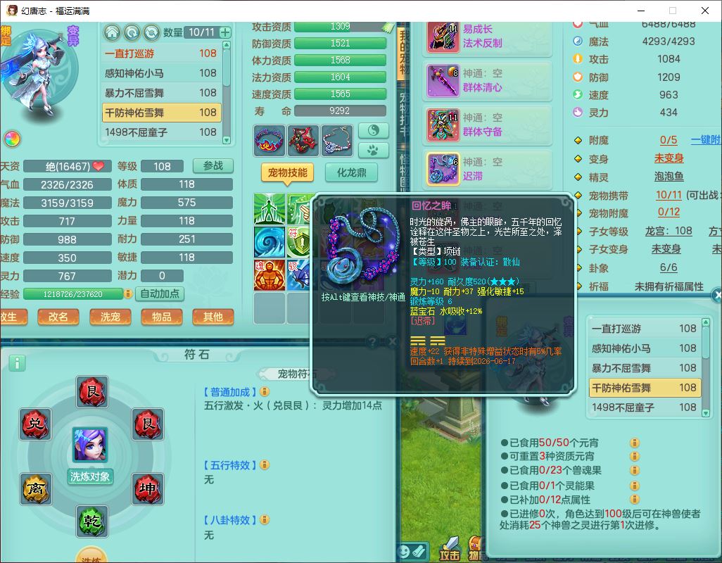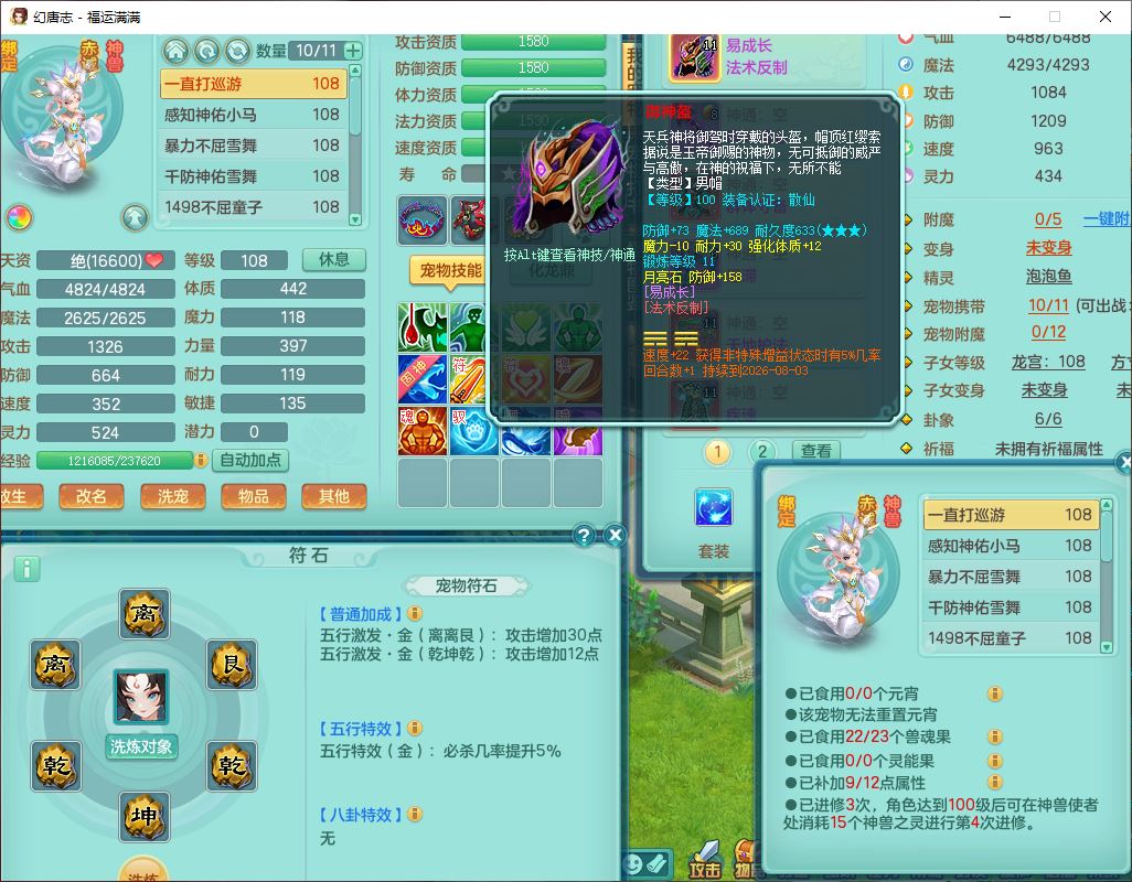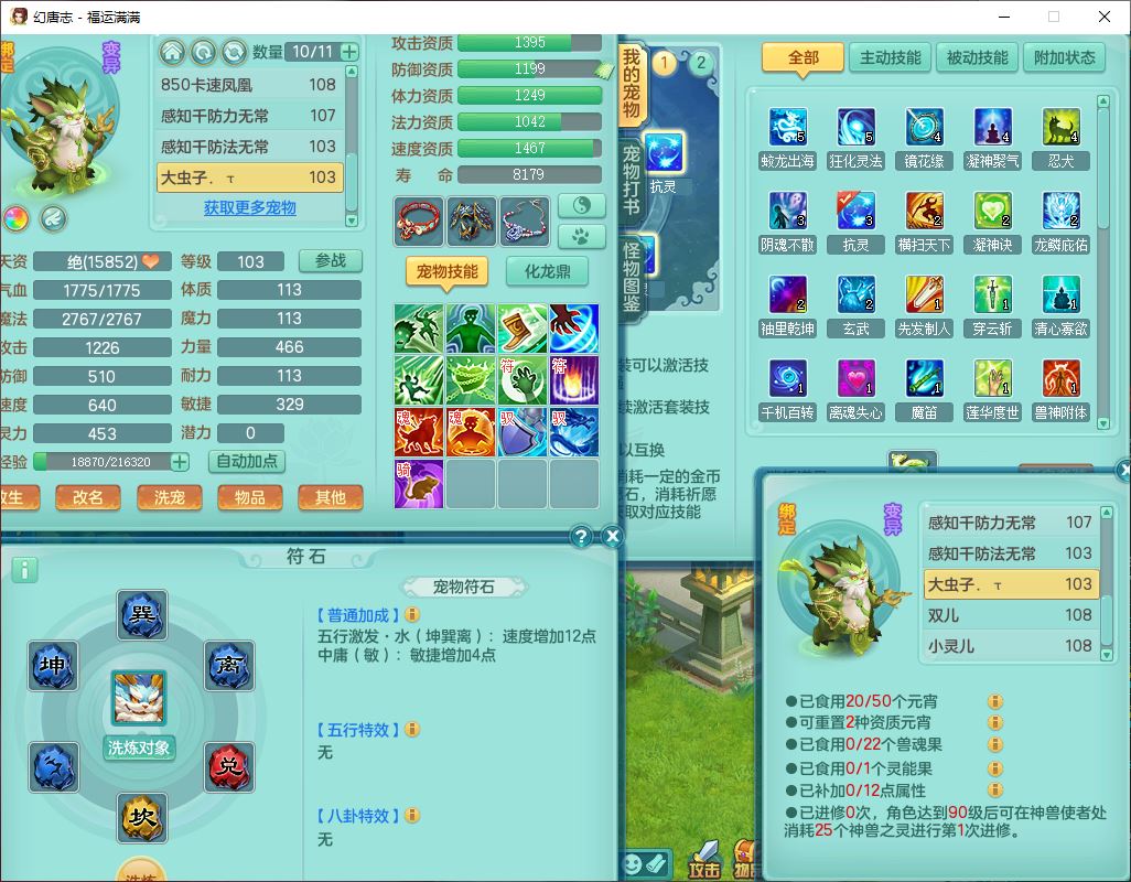 99803福运满满103男天魔【马上发财+火焰之力】10级精灵,2内(1青蛇1龙马)2翻江1童子1金炉,8只成品满高书宝宝,2孩子(龙宫+方寸),装备齐全,Y法术反制武器,119天月卡,满修炼,永久头饰、脸饰,24个内丹碎片,100多w神武币