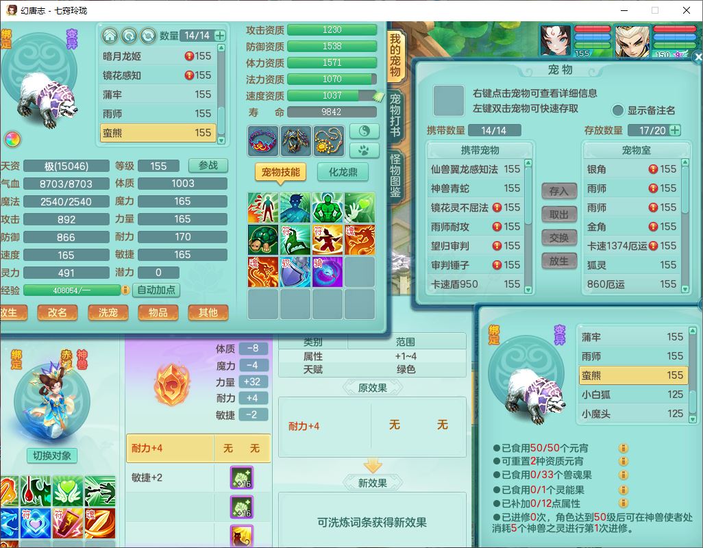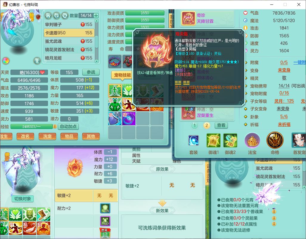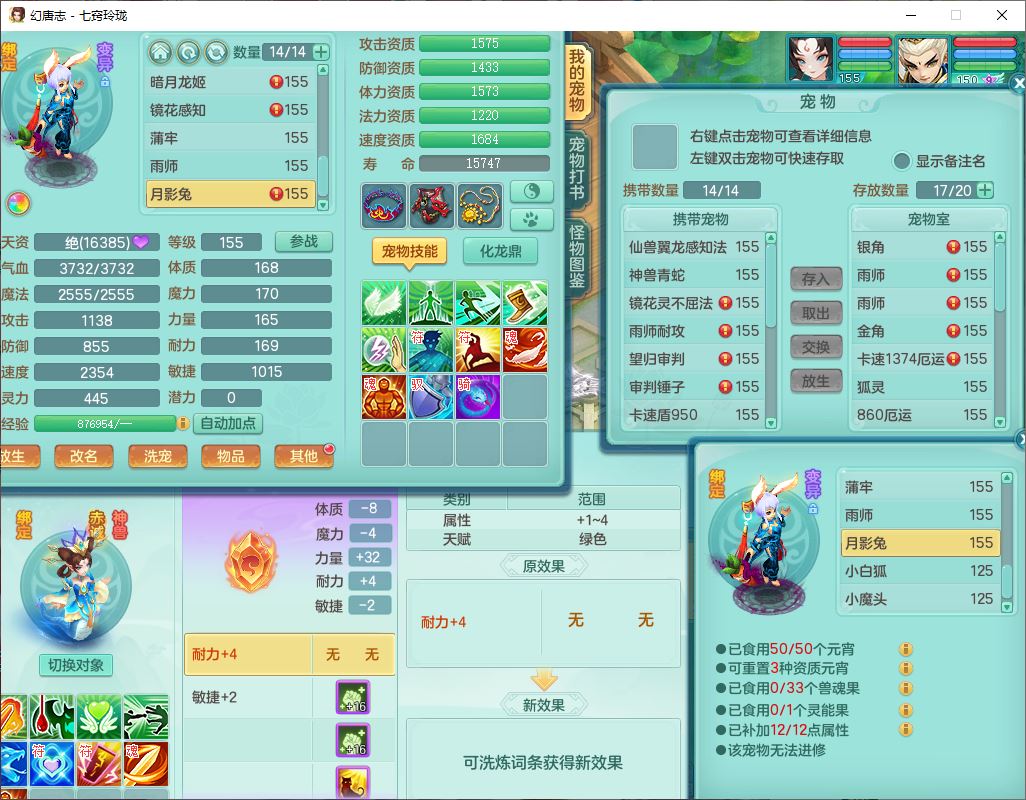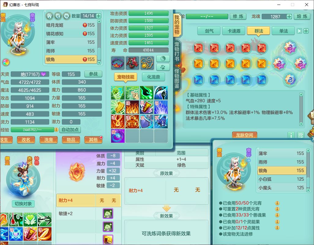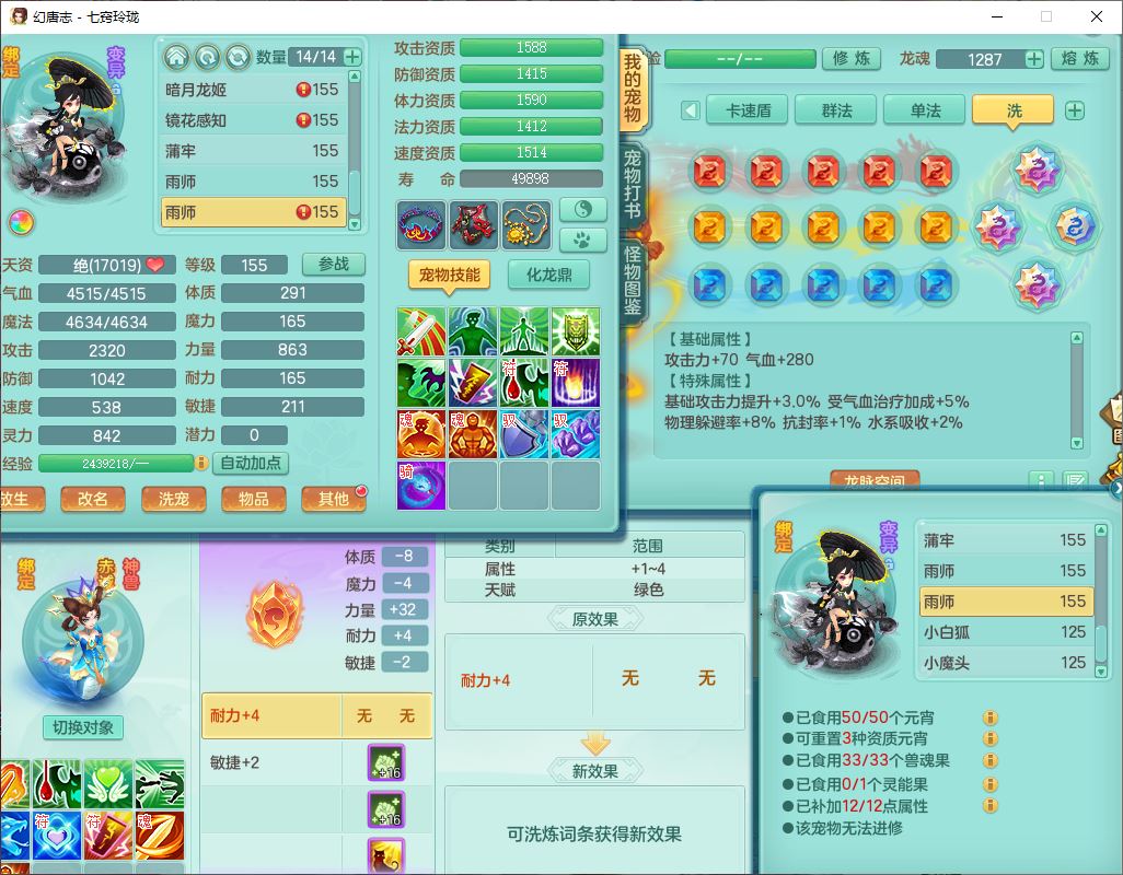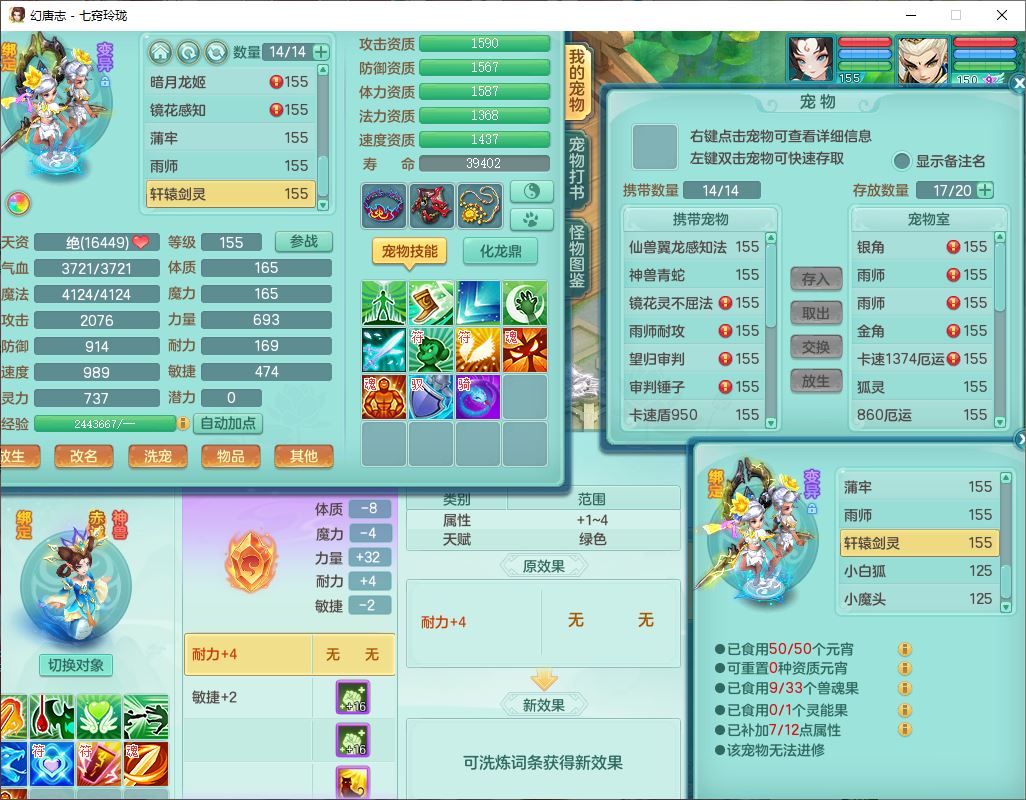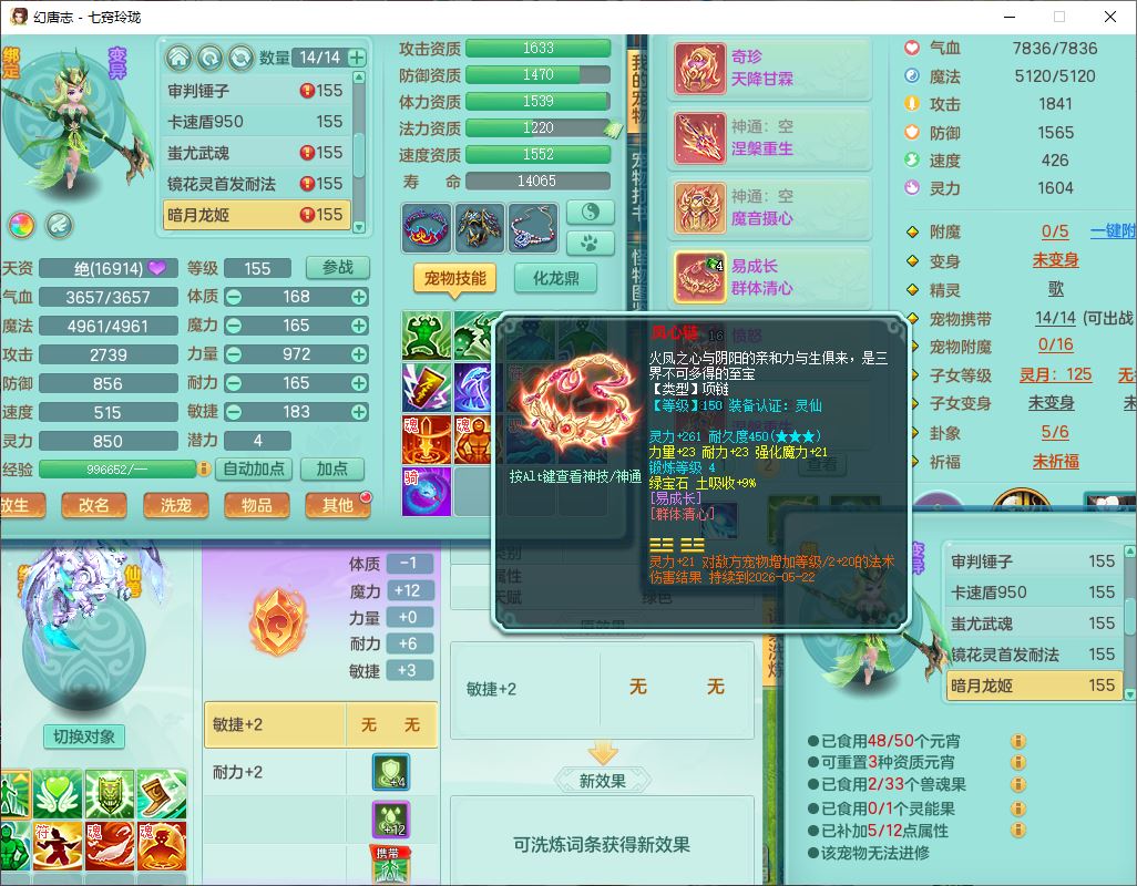 4383七窍玲珑159男天宫精灵舞,2龙(1换,无内)2内(1青蛇)23镜花灵1龙姬,2宠皮12只满果子,7红装备,1950灵力,法爆武器,268Y项链,Y双红腰带,一套辅助愤怒5特,鼎4.5+70+280,2套符石,永久外观,精灵皮肤,飞行双人坐骑