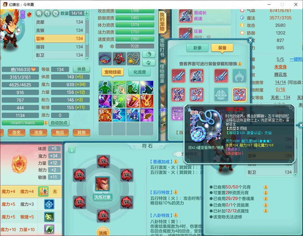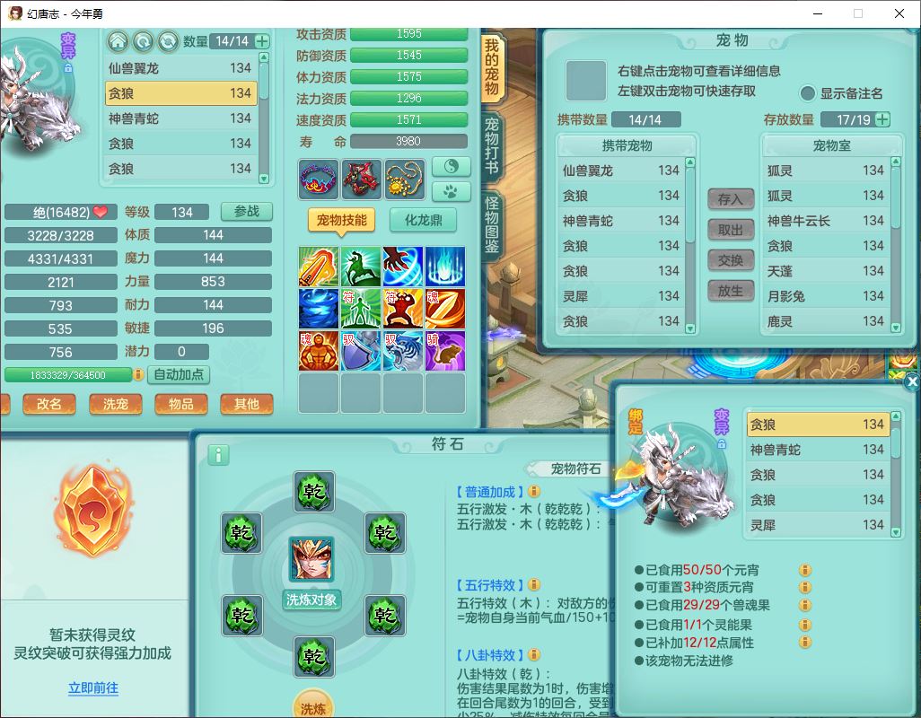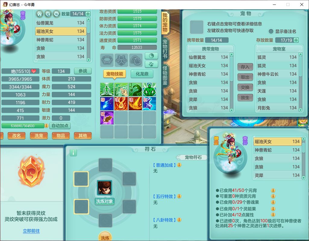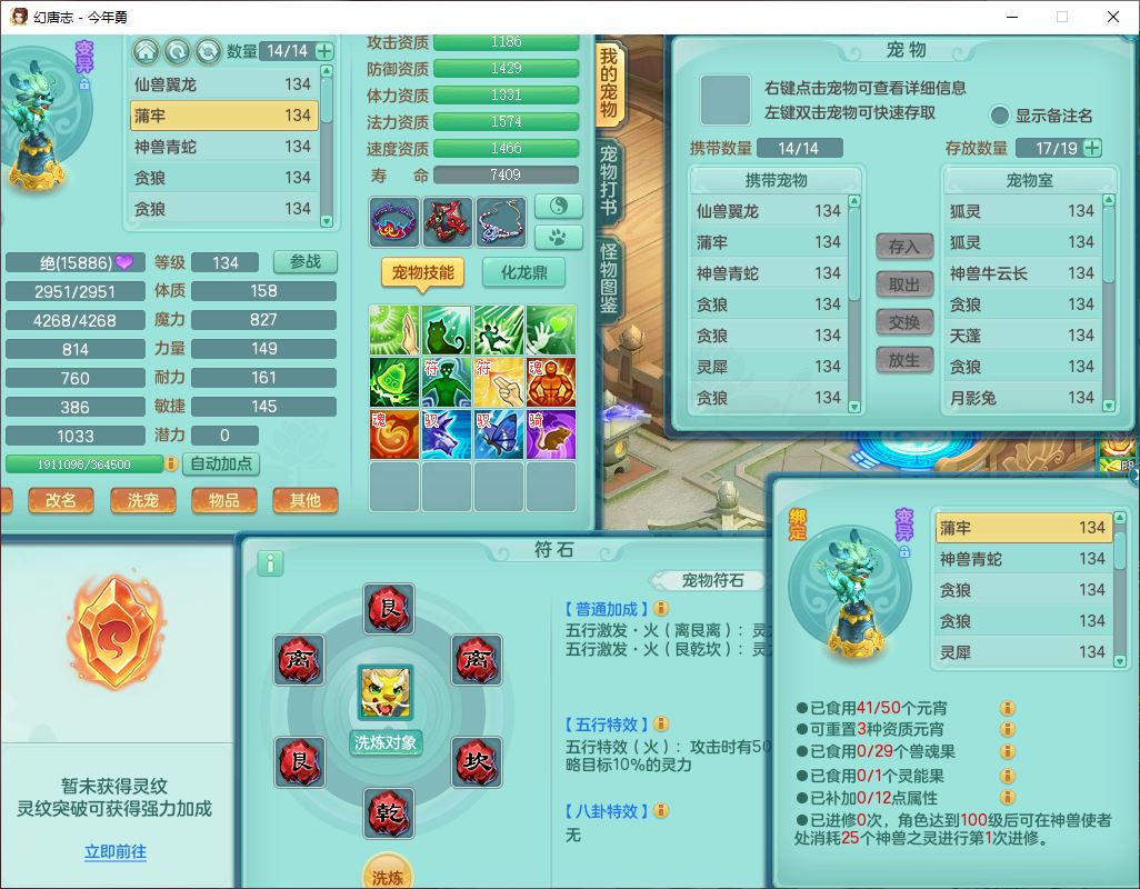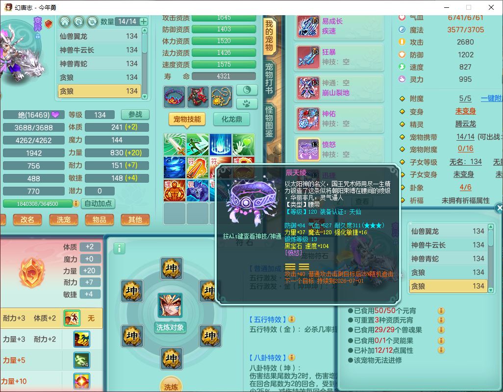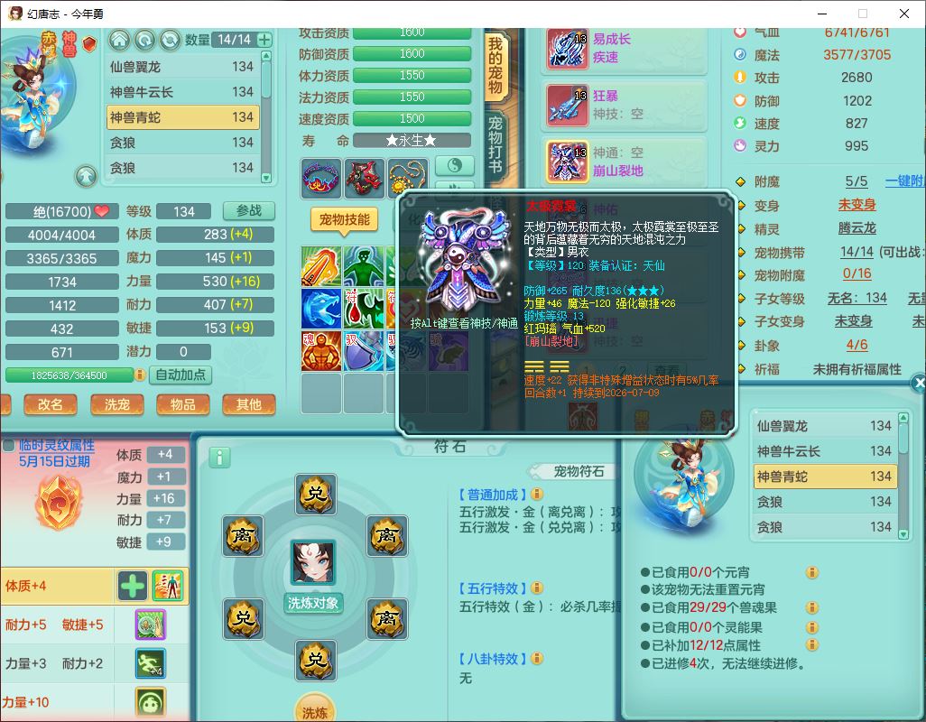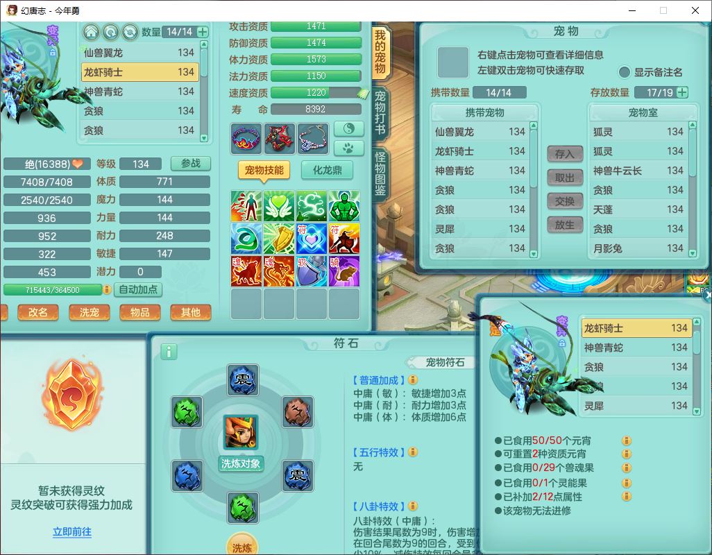 71489WH今年勇129男万兽【潜龙过半】精灵歌,1龙(换)2内(1青蛇),7觉醒9六字1五字7四字17只满果子,7红装备,Y疾速帽子,狂暴武器,崩山衣服,愤怒玉清腰带,Y笑里项链,迅捷慈航鞋子,鼎4.0+56+224,2套符石,庭院143,永久外观、精灵皮肤,1双人坐骑