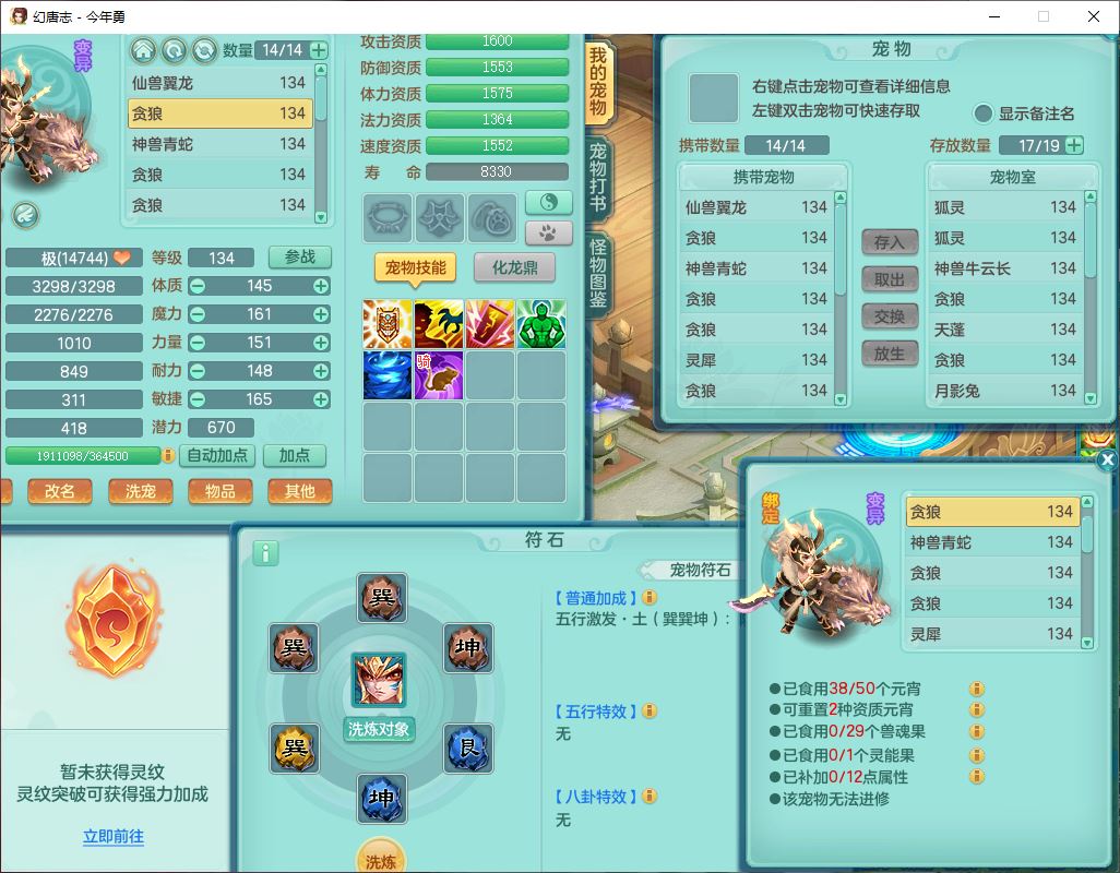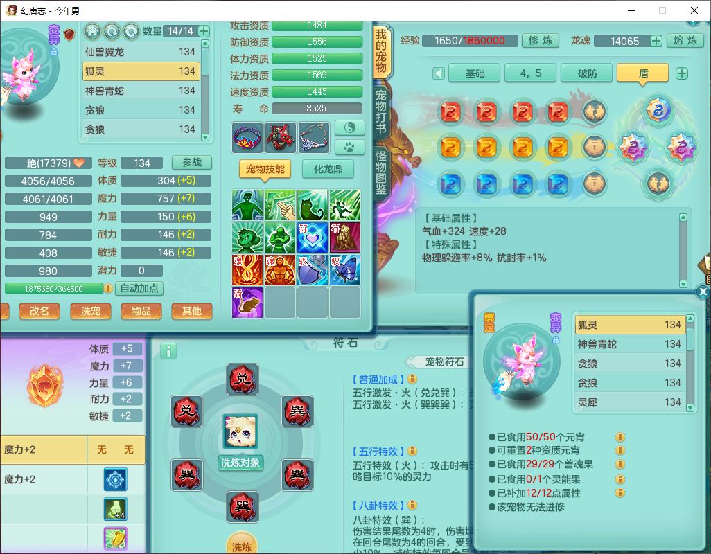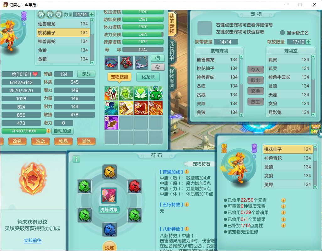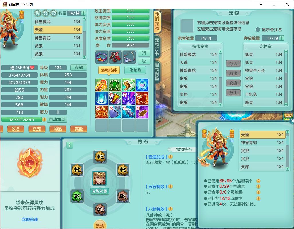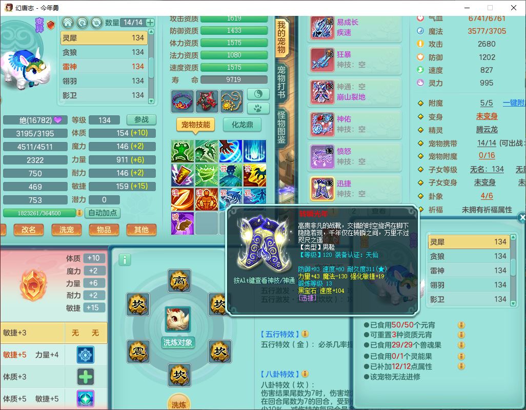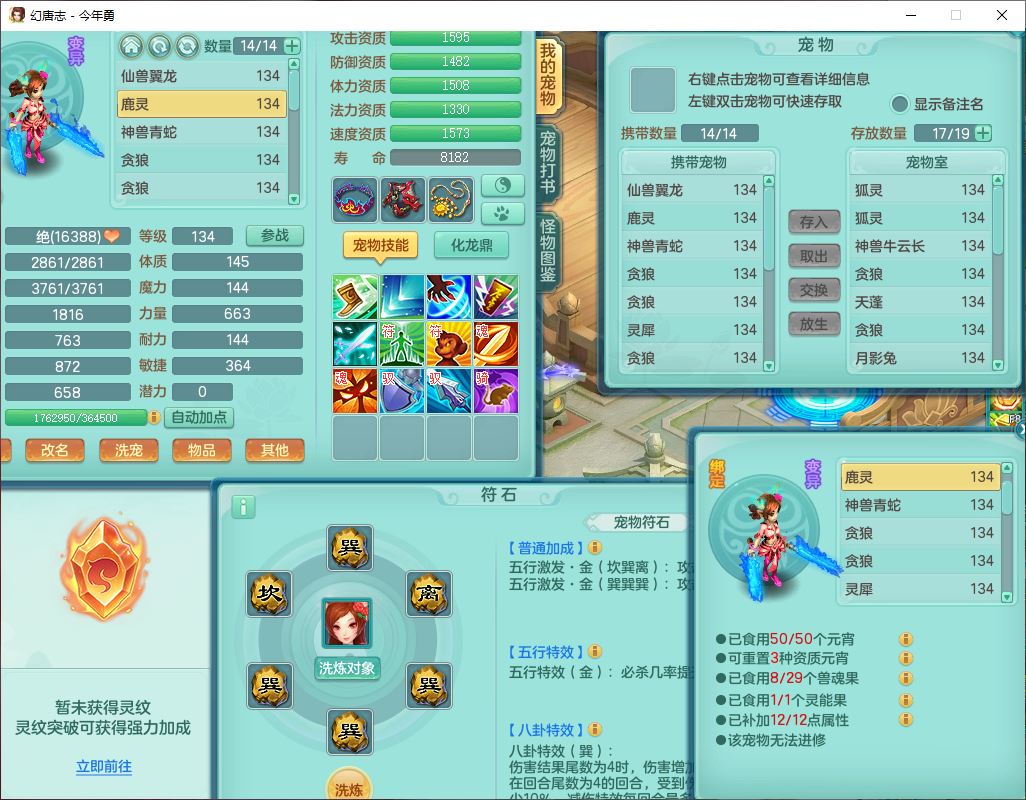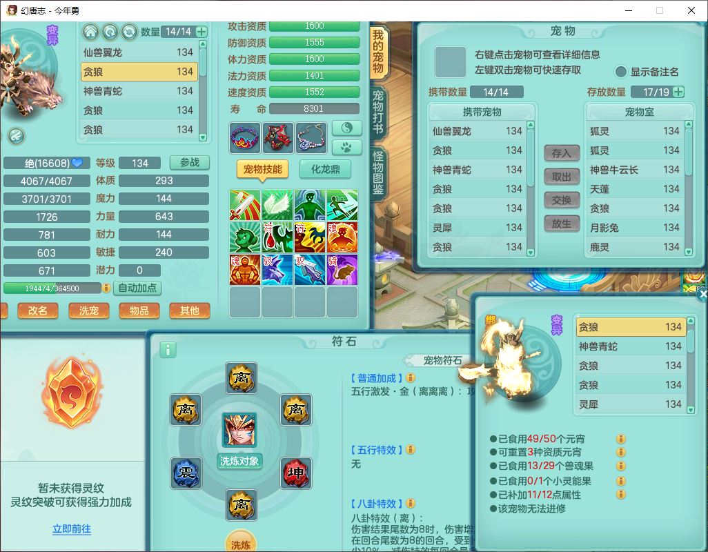 71489WH今年勇129男万兽【潜龙过半】精灵歌,1龙(换)2内(1青蛇),7觉醒9六字1五字7四字17只满果子,7红装备,Y疾速帽子,狂暴武器,崩山衣服,愤怒玉清腰带,Y笑里项链,迅捷慈航鞋子,鼎4.0+56+224,2套符石,庭院143,永久外观、精灵皮肤,1双人坐骑