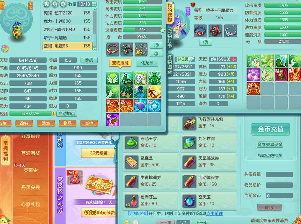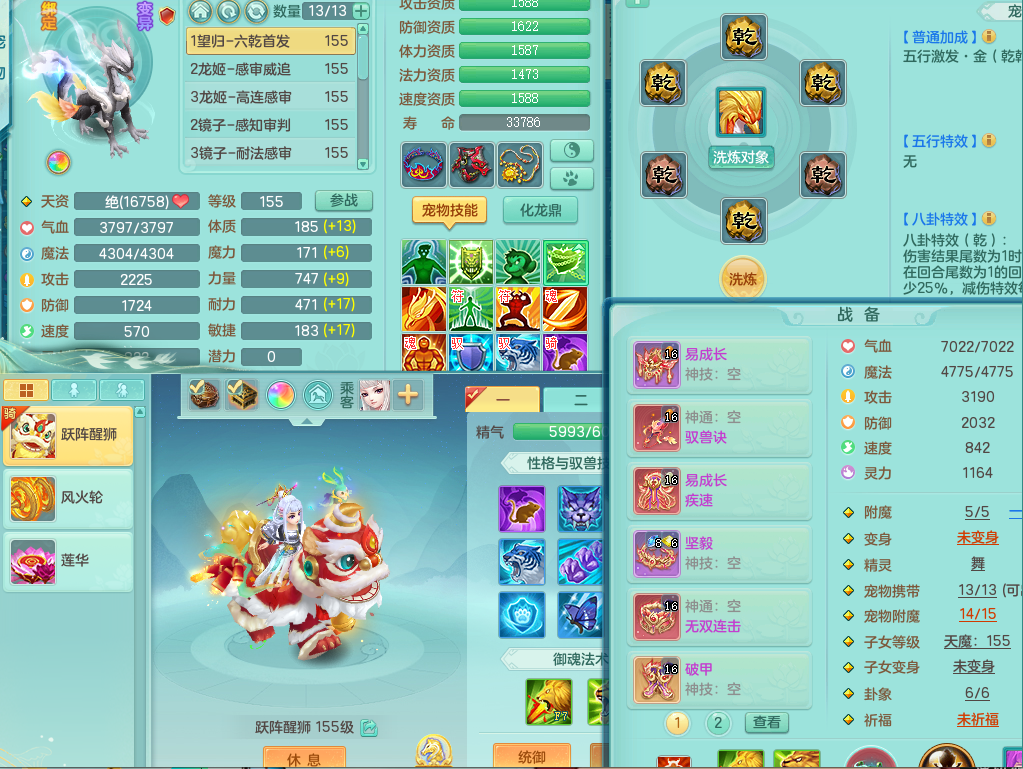 63145,2024区159万兽,1内丹神(存)1金角皮肤,1觉醒1只6字,多四五字,双人舞狮坐骑,基础5.0,法爆7.5,精灵舞,满修满共鸣,易成长头,923攻单加52武器,单加54破血腰带,破甲鞋子,永久头饰背饰,武器皮肤火焰之力,双重认证开启,可换绑