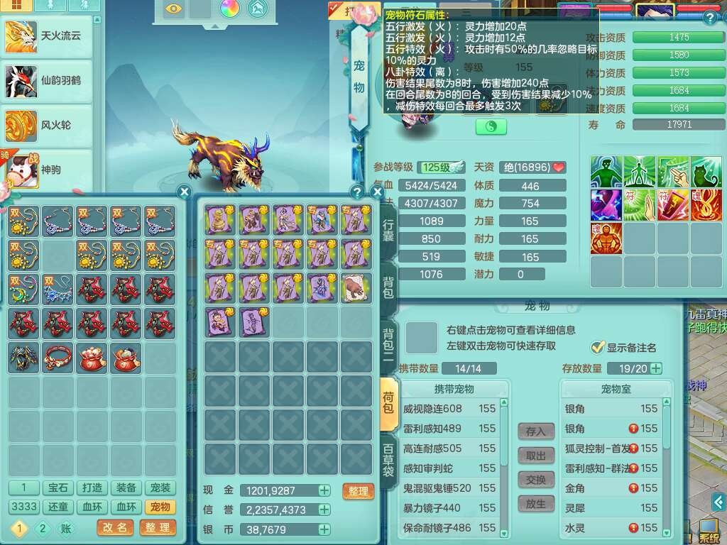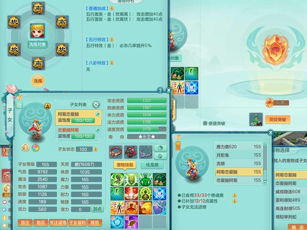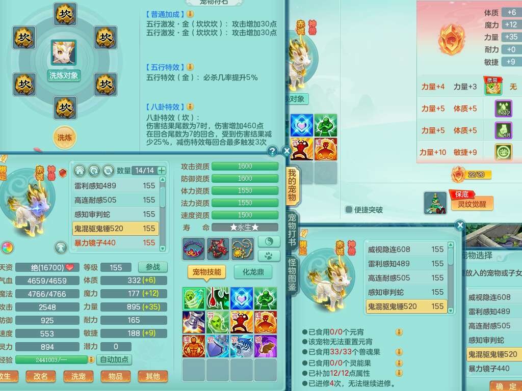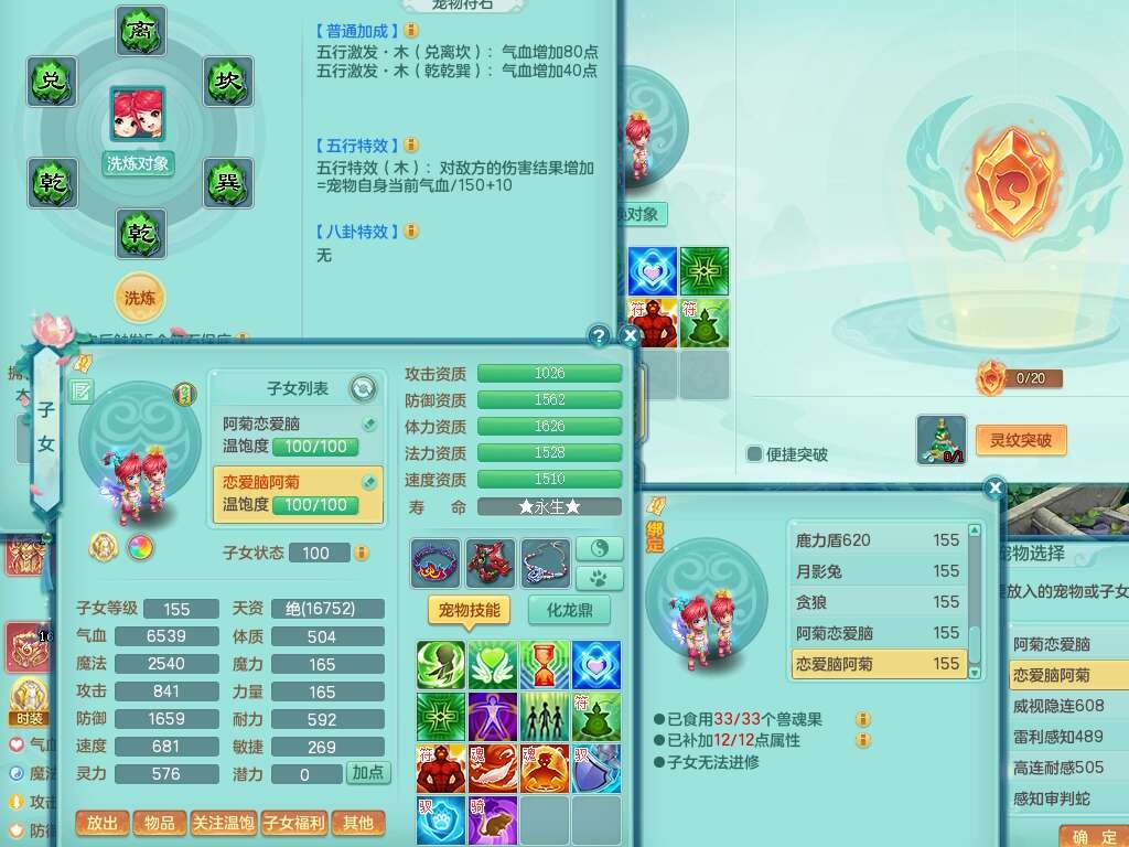 K22428七窍玲珑159男五庄,精灵舞,3龙2内胆神(1马),1神兽蛇+30个神兽内丹碎片,6觉醒(潜龙过半,宝宝6只满足,符石差2个主要,差3个附加属性,化龙鼎差3个厚土龙纹),3只六技能镜花灵,三红匠心封锁移魂大法武器,匠心疾速单加衣服,愤怒易成长单加54腰带,易成长笑里鞋子,六特,6.0基础鼎+70攻,6个纯六字,12只满果子,仓库还有44个果子,成就在榜,双人坐骑,神驹马到成功+火焰之力武器,有129天月卡。