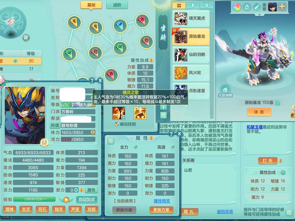 tx10474天下无双159男万兽【暴龙洪荒】精灵歌,4字靓号,满级共鸣,1内丹神2皮2特殊(祈雨/藕断兽决),4镜花2龙姬(还有3胚子)8只满果子14觉醒,9红,923必杀双红武器,Y慈航头,崩山项链,Y迟滞鞋,辅助愤怒5特,鼎5.0+70,120天月卡,庭院152房屋156,永久外观精灵皮肤,46仙兽灵42内丹碎片,4坐骑(2只双人)
