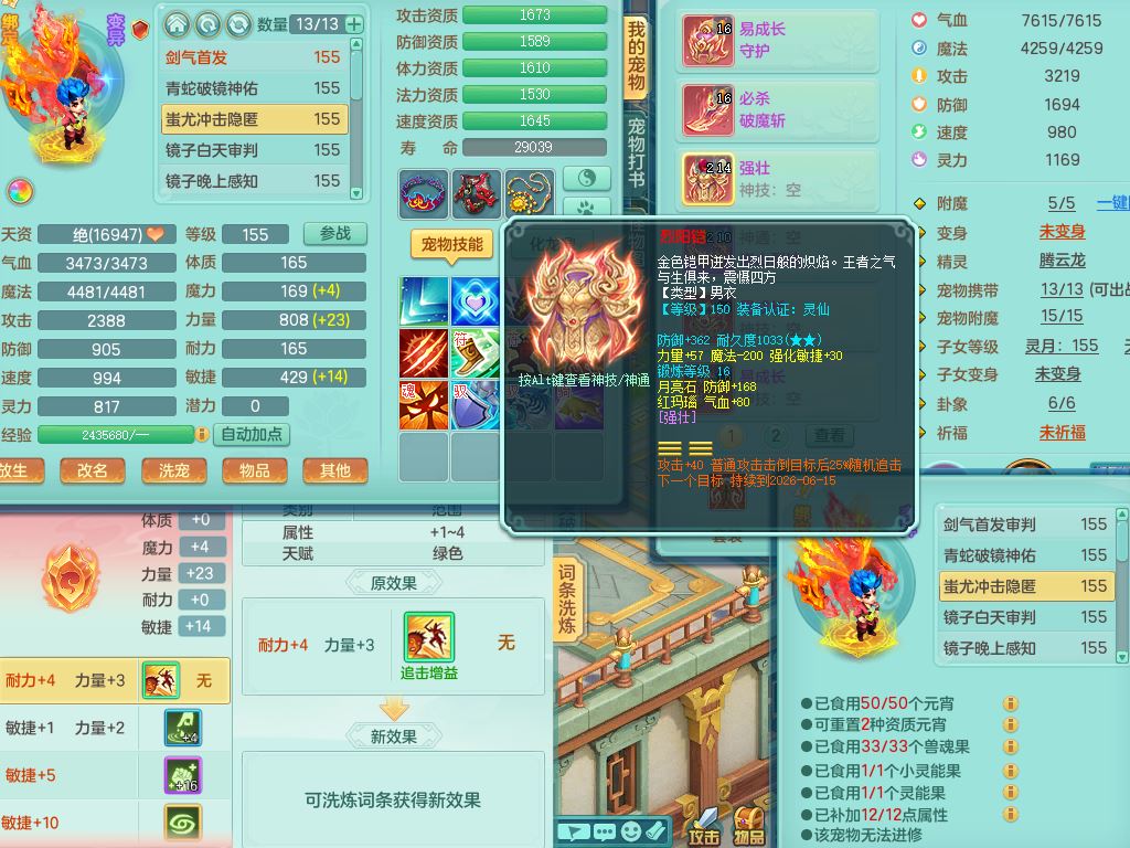 tx10477天下无双159男万兽精灵歌,满级共鸣,1内丹青蛇(破境)1皮,2镜花1龙姬,全身单加8红,912必杀双红武器,Y守护头,崩山项链,10只满果子5觉醒,鼎5.5,永久头饰精灵皮肤,22仙兽灵,36内丹碎片,3坐骑(2只双人)