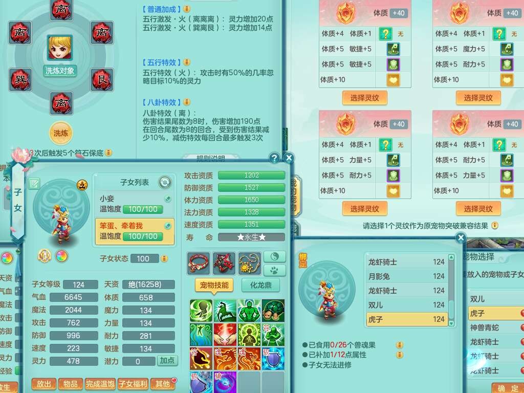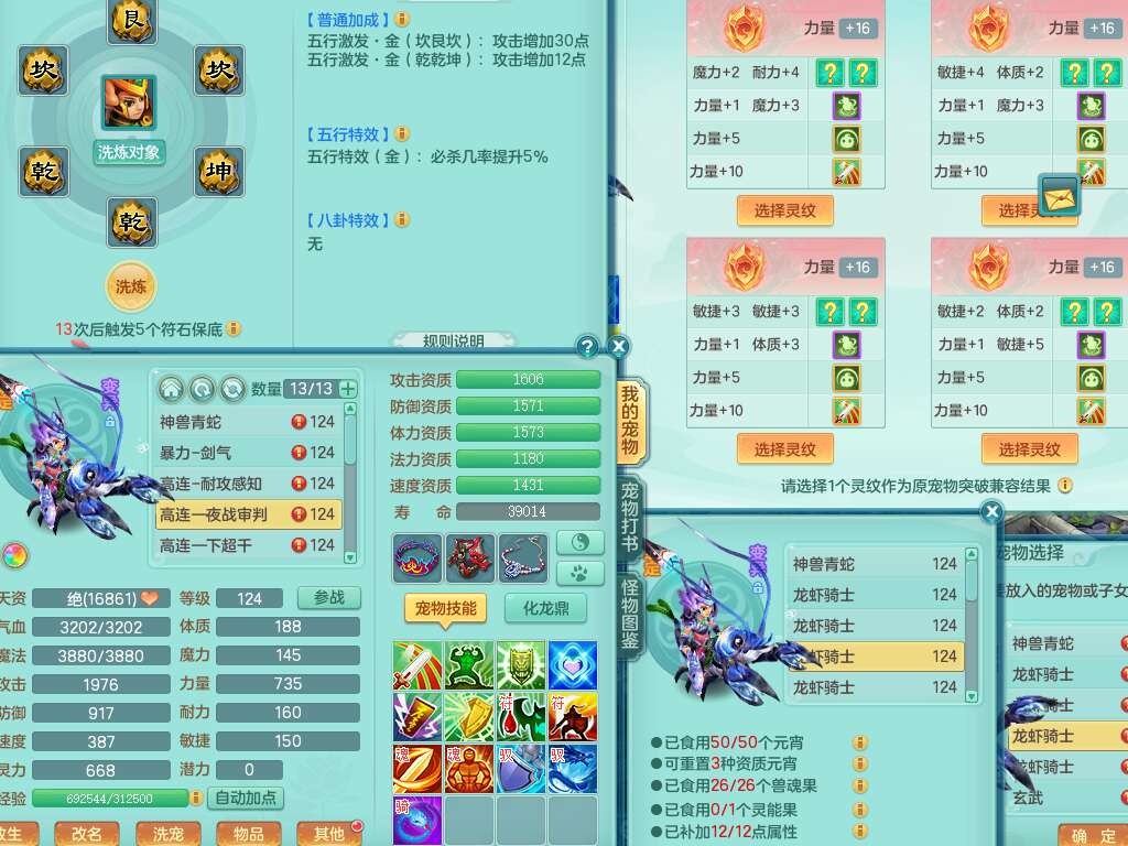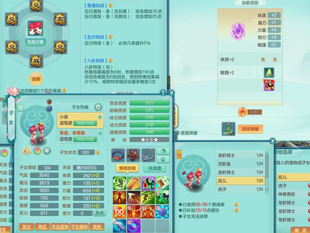 p22423阳春白雪119女方寸,精灵舞,1内丹蛇,11觉醒,(准潜龙,宝宝满足6只,化龙鼎差2个厚土龙纹),1宠皮,三红封印精通易成长玉清头,三红冥想幸运5罗汉单加链子,愤怒疾速腰带,易成长慈航单加42鞋子,4.0基础鼎,7个纯六字,11只满果子,仓库还有52个果子,宠排在榜,有22个仙兽蛋,52个神兽内丹碎片,157天月卡。➕119女龙宫,1内丹蛇,6觉醒,幸运6慈航单加头,五雷单加武器,易成长单加40衣服,190易成长单加链子,易成长四海单加41腰带,幸运9魔音摄心单加41鞋子,2个纯六字,1个五字,3只满果子,带1315金币,2216w神武币。